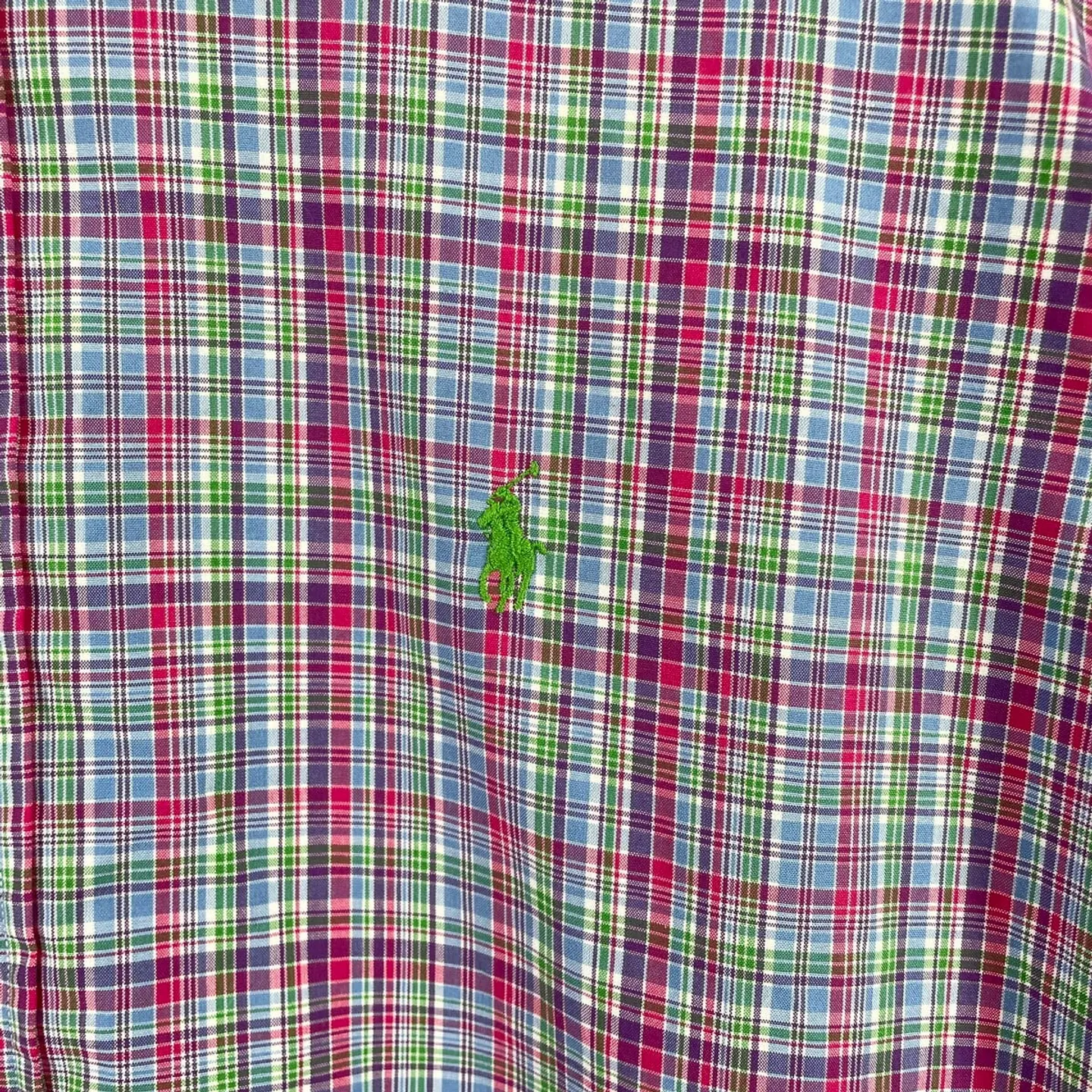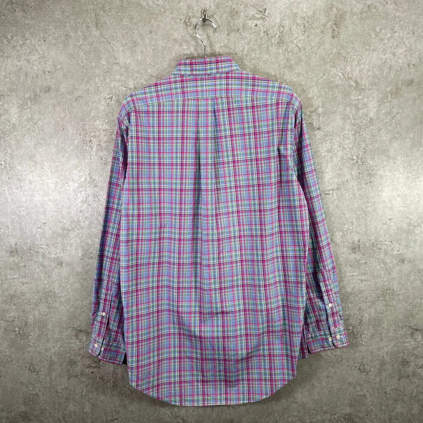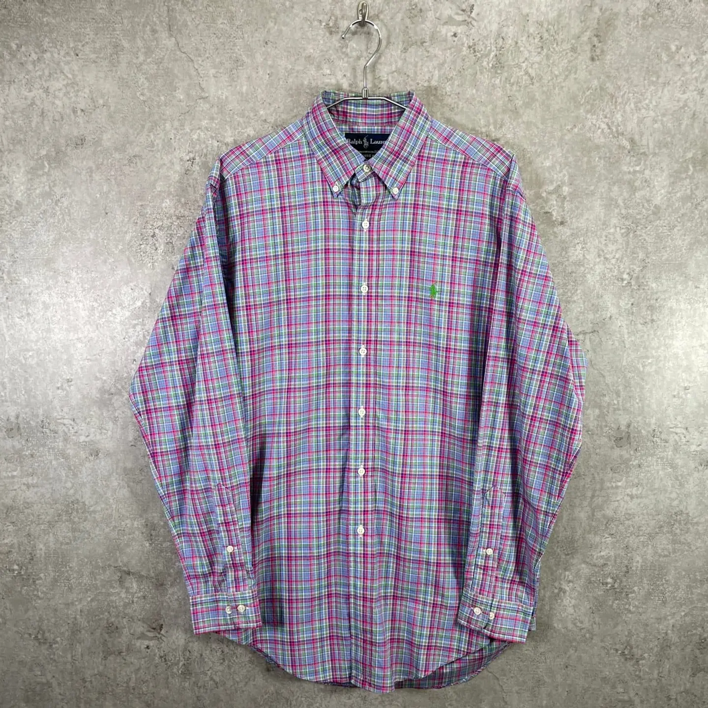 ■Ralph Lauren ラルフローレン CLASSIC FIT ワンポイントロゴ刺? チェックシャツ メンズL相当 古着 ヴィンテージ VINTAGE ピンク パープル グリーン【長袖シャツ】/マルチカラー 【ブランド】Ralph Lauren ラルフローレン 【サイズ】表記 15|M(実寸メンズL相当) ※計測値をご確認ください。 着丈…85 身幅…60 肩幅…48 袖丈…64.5 【素材】コットン100% 【生産国】インドネシア製 【状態】使用感はありますが、目立ったダメージや汚れはなく、 まだまだ愛用していただけます。 画像にてご確認ください。 【c260306102】 ※古着は洗濯、検品などのケアを行っております。(新品・デッドストックは洗濯していません。) ※モニターの発色により実物と異なる場合がございます。予めご了承ください。 ※ 海外直輸入USED品になります。