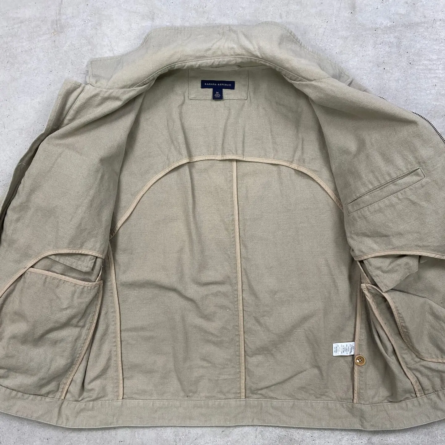 ■00年代 BANANA REPUBLIC バナナリパブリック リネン混 コットンジャケット メンズL相当 古着 00s VINTAGE ヴィンテージ バナリパ ライトベージュ【ブルゾン・ジャケット】/ベージュ 【ブランド】BANANA REPUBLIC バナナ リパブリック 【サイズ】表記 M(着用感メンズL相当) ※計測値をご確認ください。 着丈...64 身幅...58 肩幅…49 袖丈...65 【生産国】中国製 【素材】コットン62% リネン38% 【状態】 フロント右サイドポケット付近に薄汚れな多少の使用感はございますが、 その他目立った汚れやダメージ等は無くまだまだ長くご愛用していただけます。 画像にてご確認ください。 【c260306004】 ※古着は洗濯、検品などのケアを行っております。(新品・デッドストックは洗濯していません。) ※モニターの発色により実物と異なる場合がございます。予めご了承ください。 ※ 海外直輸入USED品になります。