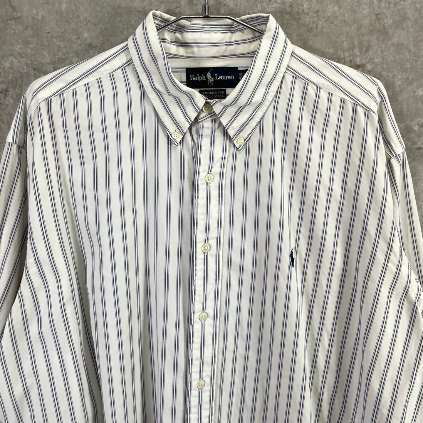 ■Ralph Lauren ラルフローレン YARMOUTH ワンポイントロゴ刺? オックスフォードシャツ メンズ2XL相当 古着 ヴィンテージ VINTAGE ボタンダウンシャツ ビッグサイズ 大きいサイズ 青色【長袖シャツ】/ブルー 【ブランド】Ralph Lauren ラルフローレン 【サイズ】表記 34-35(実寸メンズ2XL相当) ※計測値をご確認ください。 着丈…87 身幅…70 肩幅…54 袖丈…60 【素材】コットン100% 【生産国】フィリピン製 【状態】左袖に一部小さなシミ汚れがあります。 その他ダメージはございません。 画像にてご確認ください。 【c260305105】 ※古着は洗濯、検品などのケアを行っております。(新品・デッドストックは洗濯していません。) ※モニターの発色により実物と異なる場合がございます。予めご了承ください。 ※ 海外直輸入USED品になります。