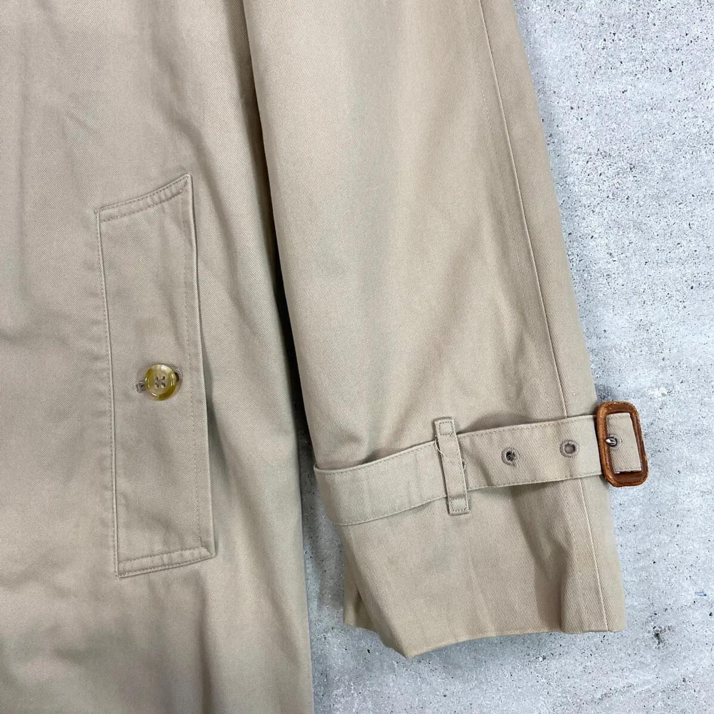 ■70~80年代 英国製 Burberrys バーバリー トレンチコート レディースL相当 古着 70s 80s VINTAGE ヴィンテージ バーバリーチェック ノバチェック ライトベージュ【コート】/ベージュ 【ブランド】Burberrys バーバリー 【サイズ】不明(実寸レディースL相当) ※計測値をご確認ください。 着丈...112 身幅…54 裄丈…71 袖丈(脇下計測)…43 【生産国】英国製 【素材】コットン49%、ポリエステル51% 【状態】ウエストベルトが欠品しております。 その他目立ったダメージや汚れはありませんので、 まだまだ愛用していただけます。 画像にてご確認ください。 【c260302103】 ※古着は洗濯、検品などのケアを行っております。(新品・デッドストックは洗濯していません。) ※モニターの発色により実物と異なる場合がございます。予めご了承ください。 ※ 海外直輸入USED品になります。