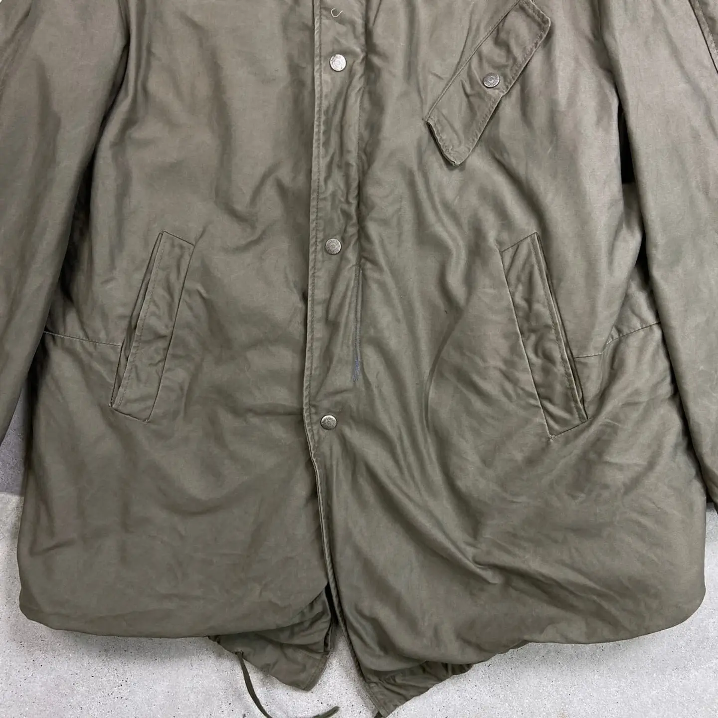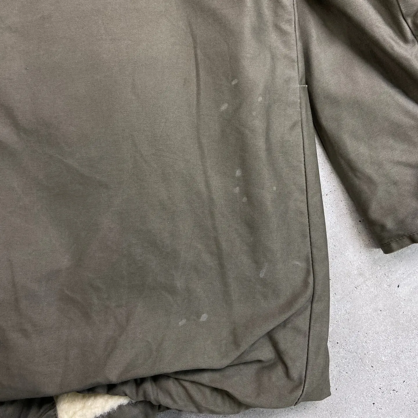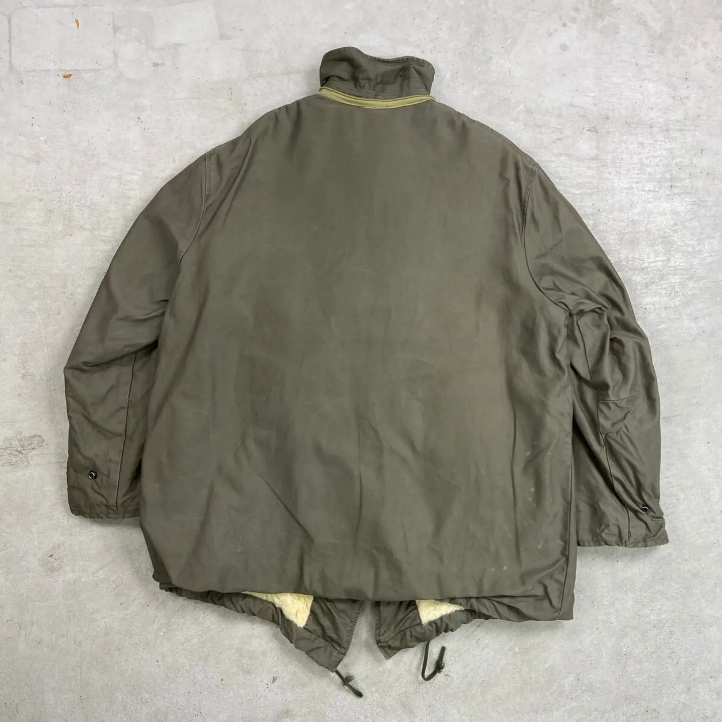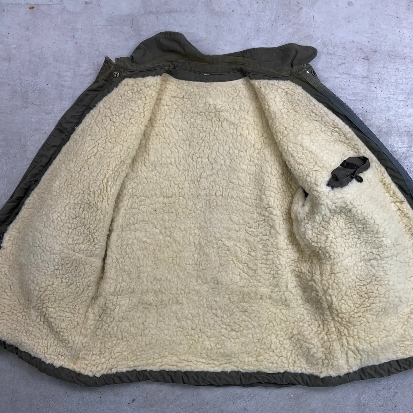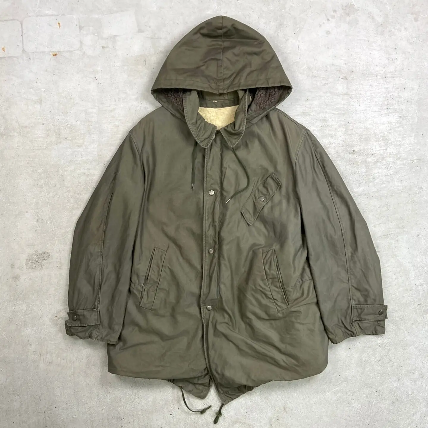 ■60年代~ ドイツ軍 GERMAN ARMY ボアライナー フィールドパーカー メンズXL相当 古着 60s VINTAGE ヴィンテージ OPTIジッパー フード着脱式 裾ドローコード ユーロミリタリー モールスキンパーカー オリーブグリーン【ミリタリージャケット】/カーキグリーン ◎おそらくドイツ軍のフィールドパーカーかと思われます。 【サイズ】不明(実寸メンズXL相当) ※計測値をご確認ください。 着丈…80.5 身幅…64.5 裄丈…79.5 袖丈(脇下計測)…45 【生産国】不明 【素材】不明 【状態】全体的に使用感による色あせや擦れが若干ございます。 フロントジップ付近にリペア跡があります。 バックサイド裾付近に薄汚れがあります。 画像にてご確認ください。 【c260302001】 ※古着は洗濯、検品などのケアを行っております。(新品・デッドストックは洗濯していません。) ※モニターの発色により実物と異なる場合がございます。予めご了承ください。 ※ 海外直輸入USED品になります。