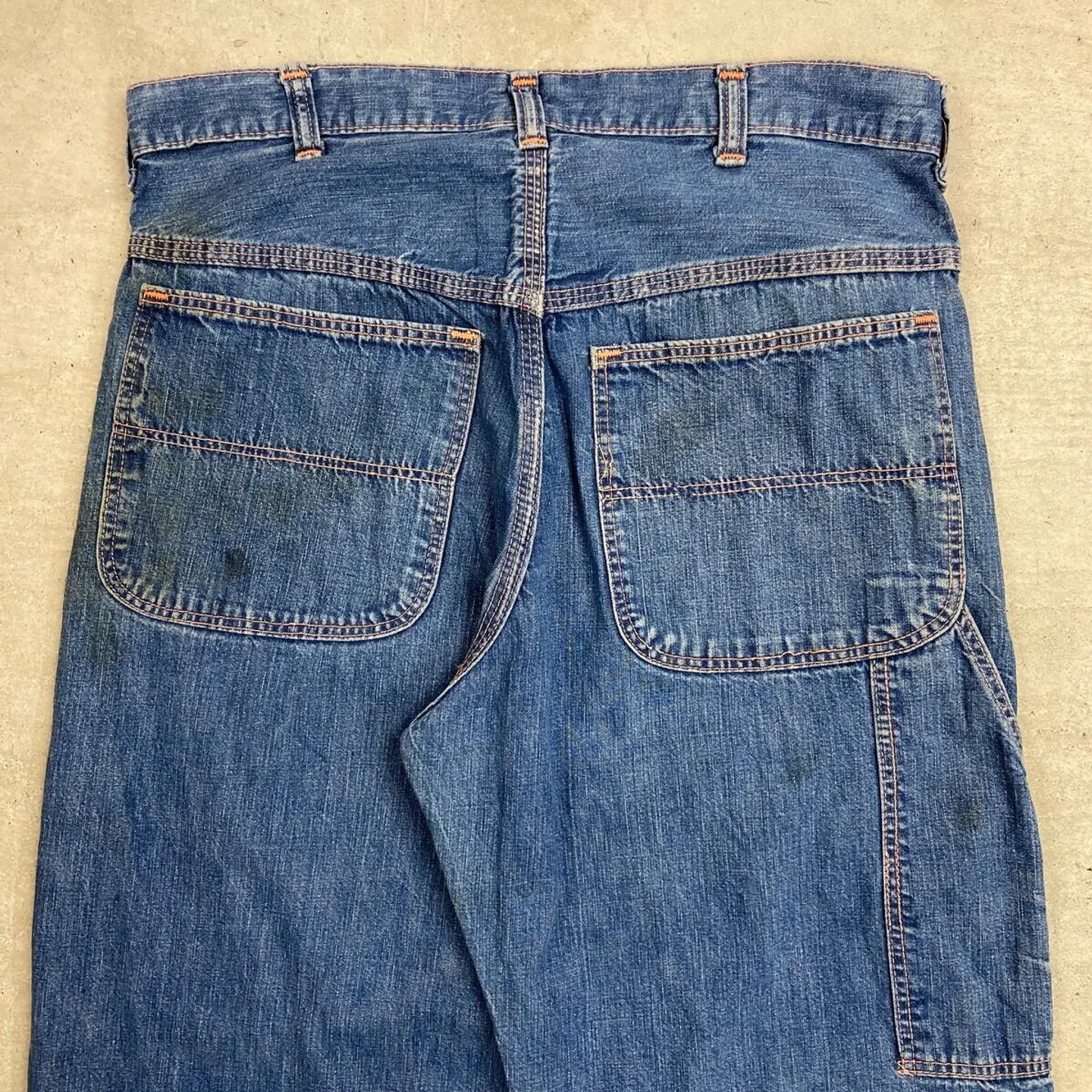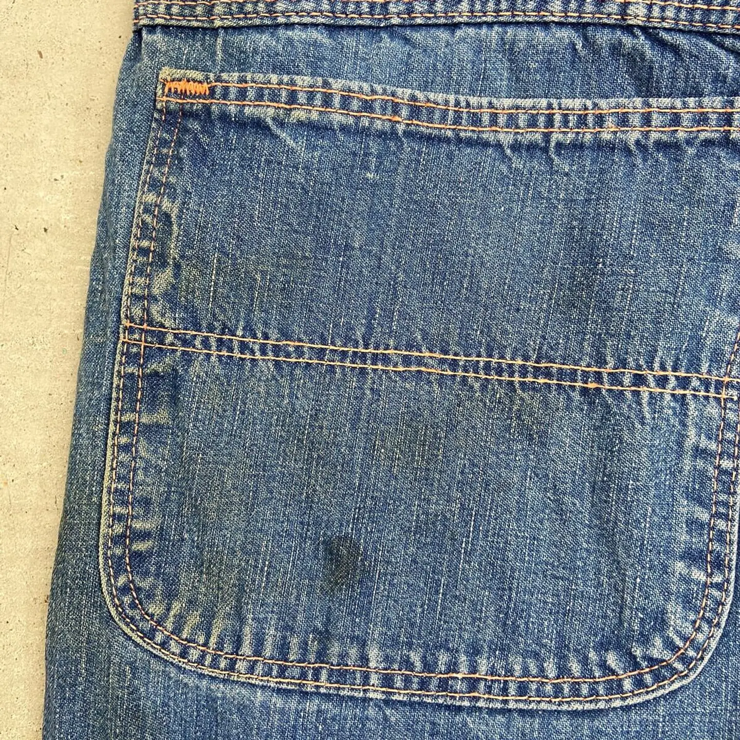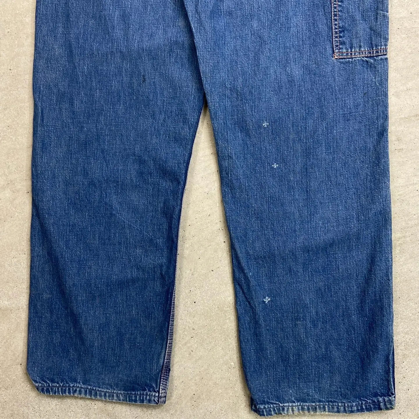 ■60年代 ストアブランド デニムペインターパンツ メンズW31相当 古着 60s ヴィンテージ VINTAGE アメカジ カムロックSCOVILLジッパー むき出しリベット 青色【デニムパンツ】/ブルー ◎こちらはストア系ブランドのデニムペインターパンツになります。 当時の百貨店で販売されていたこともありこだわりを感じるディティールに、 デニムペインター特有のライトオンスの薄手の生地感となってなります。 【ブランド】不明 【サイズ】表記不明(実寸約W31 L28) ウエスト(平置き計測?2)…80 ワタリ幅...32 股上…31 股下…70.5 裾幅…21 【生産国】USA製 【素材】コットン100% 【状態】全体的に使用感による多少の色あせがございます。 フロントもも付近、バックサイド下部にダメージがあります。 また、フロント上部やバックポケットに薄汚れがあります。 画像にてご確認ください。 【c260228131】 ※古着は洗濯、検品などのケアを行っております。(新品・デッドストックは洗濯していません。)