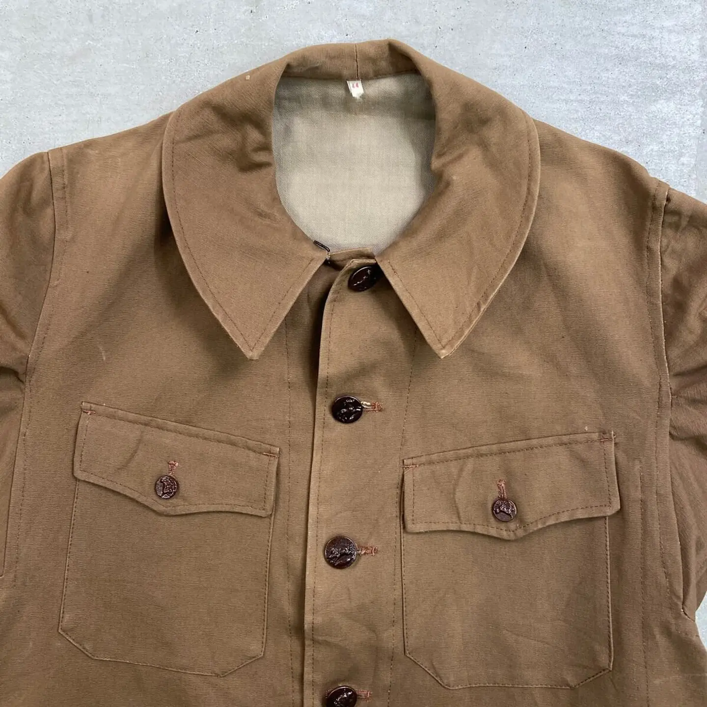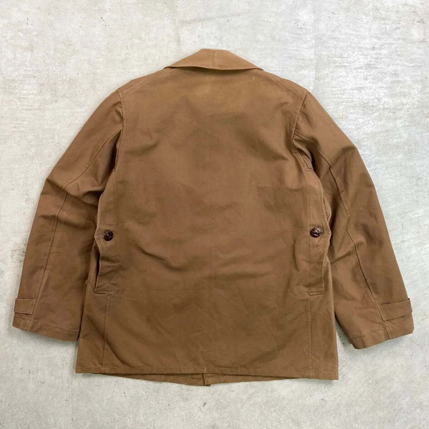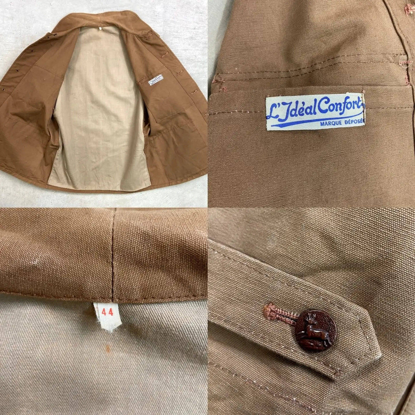 ■DEAD STOCK NOS 50年代 L'Ideal Confort 動物ボタン フレンチワーク ハンティングジャケット メンズM~L相当 古着 50s VINTAGE ヴィンテージ デッドストック ユーロワーク コーヒーブラウン 茶色【ユーロワークジャケット】/ブラウン ◎こちらは PH PARIS社製の希少な動物ボタンが使用されております。 【ブランド】L'Ideal Confort 【サイズ】表記 44 (着用感メンズM~L相当) ※計測値をご確認ください。 着丈…73 身幅…56.5 肩幅…45 袖丈…60 【生産国】不明 【素材】コットン 【状態】デッドストック(新品未使用品)です。 画像にてご確認ください。 【c260221137】 ※古着は洗濯、検品などのケアを行っております。(新品・デッドストックは洗濯していません。) ※モニターの発色により実物と異なる場合がございます。予めご了承ください。 ※ 海外直輸入USED品になります。
