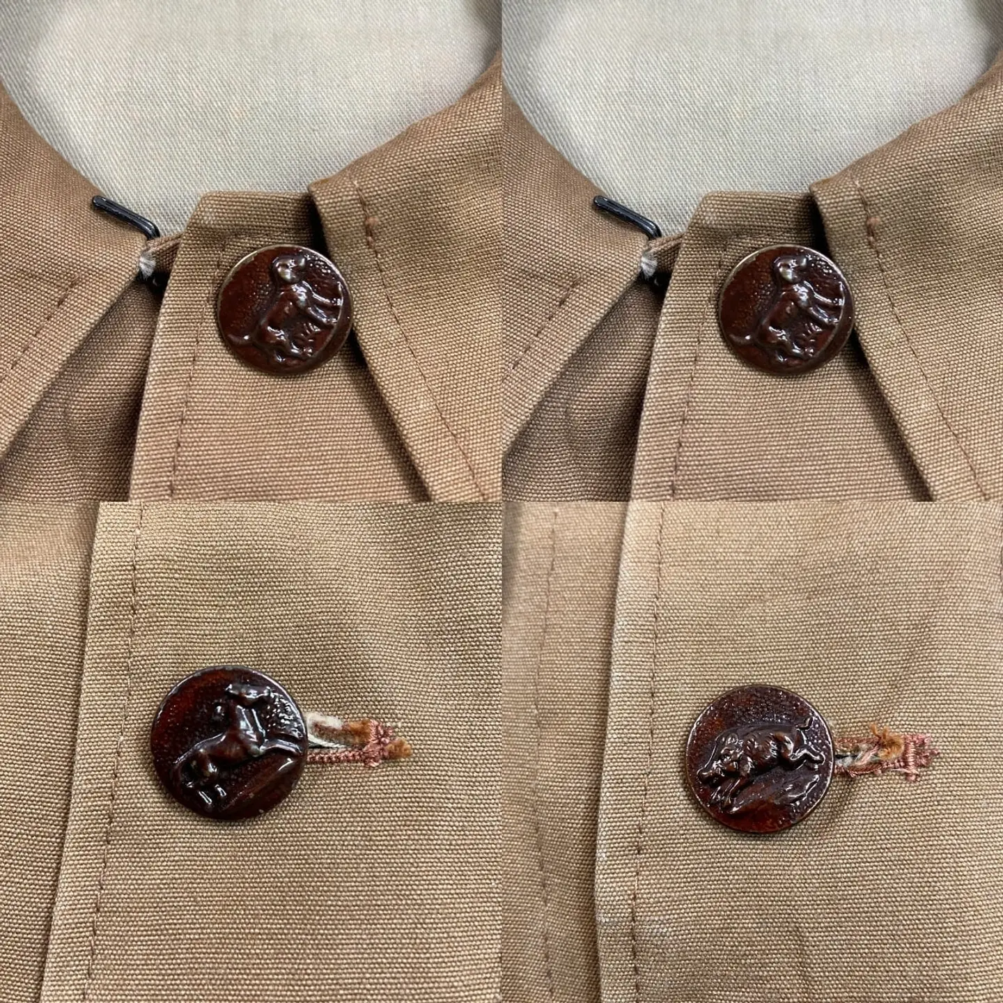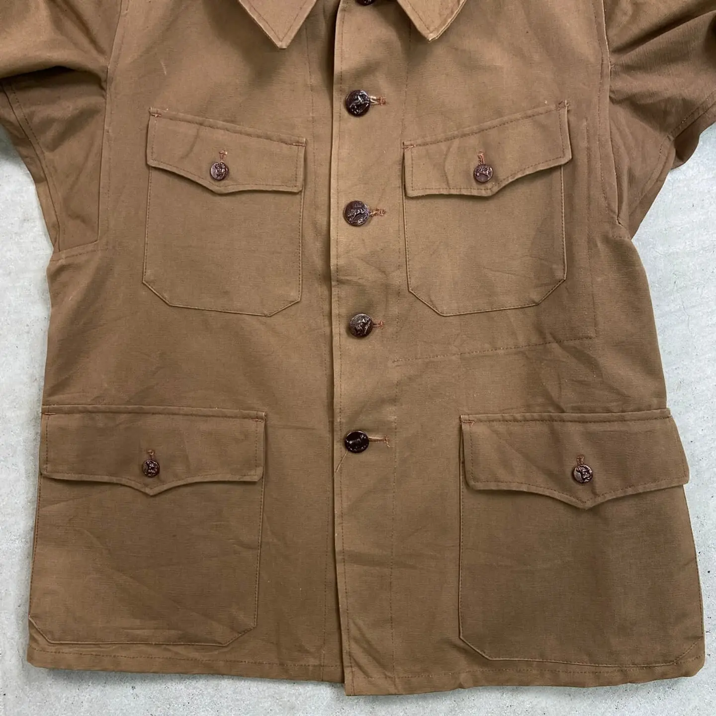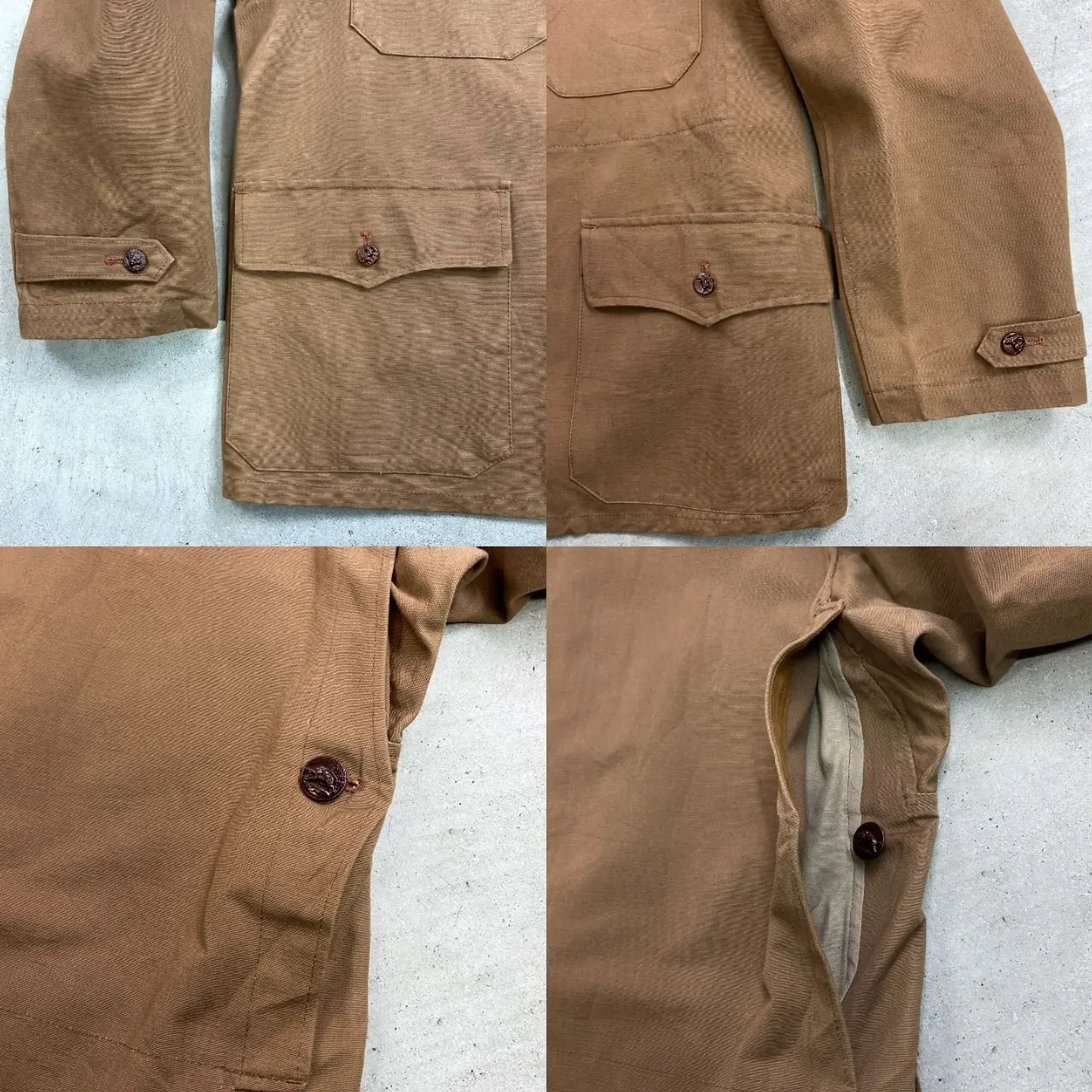■DEAD STOCK NOS 50年代 L'Ideal Confort 動物ボタン フレンチワーク ハンティングジャケット メンズM~L相当 古着 50s VINTAGE ヴィンテージ デッドストック ユーロワーク コーヒーブラウン 茶色【ユーロワークジャケット】/ブラウン ◎こちらは PH PARIS社製の希少な動物ボタンが使用されております。 【ブランド】L'Ideal Confort 【サイズ】表記 44 (着用感メンズM~L相当) ※計測値をご確認ください。 着丈…73 身幅…56.5 肩幅…45 袖丈…60 【生産国】不明 【素材】コットン 【状態】デッドストック(新品未使用品)です。 画像にてご確認ください。 【c260221137】 ※古着は洗濯、検品などのケアを行っております。(新品・デッドストックは洗濯していません。) ※モニターの発色により実物と異なる場合がございます。予めご了承ください。 ※ 海外直輸入USED品になります。
