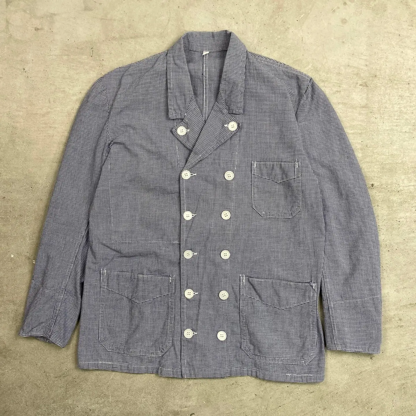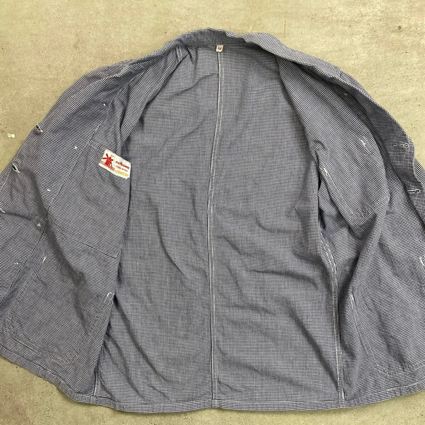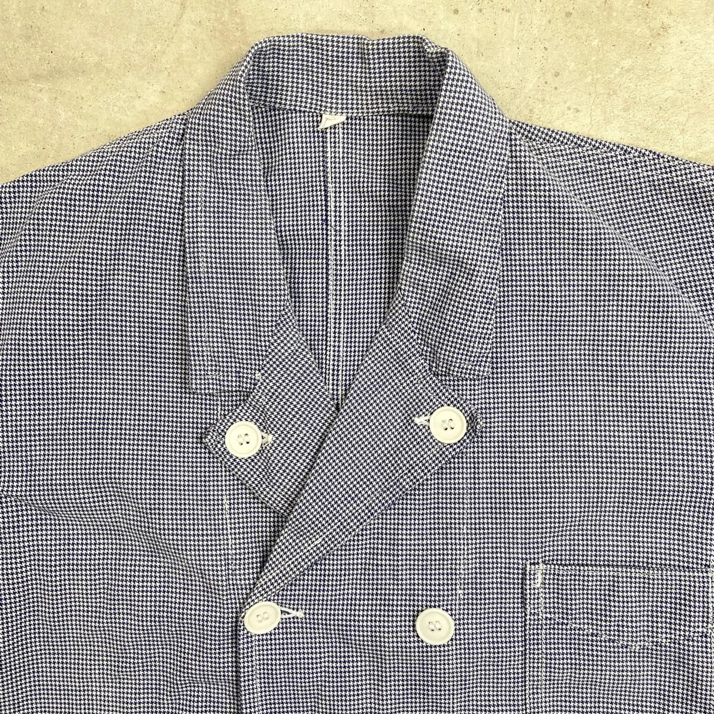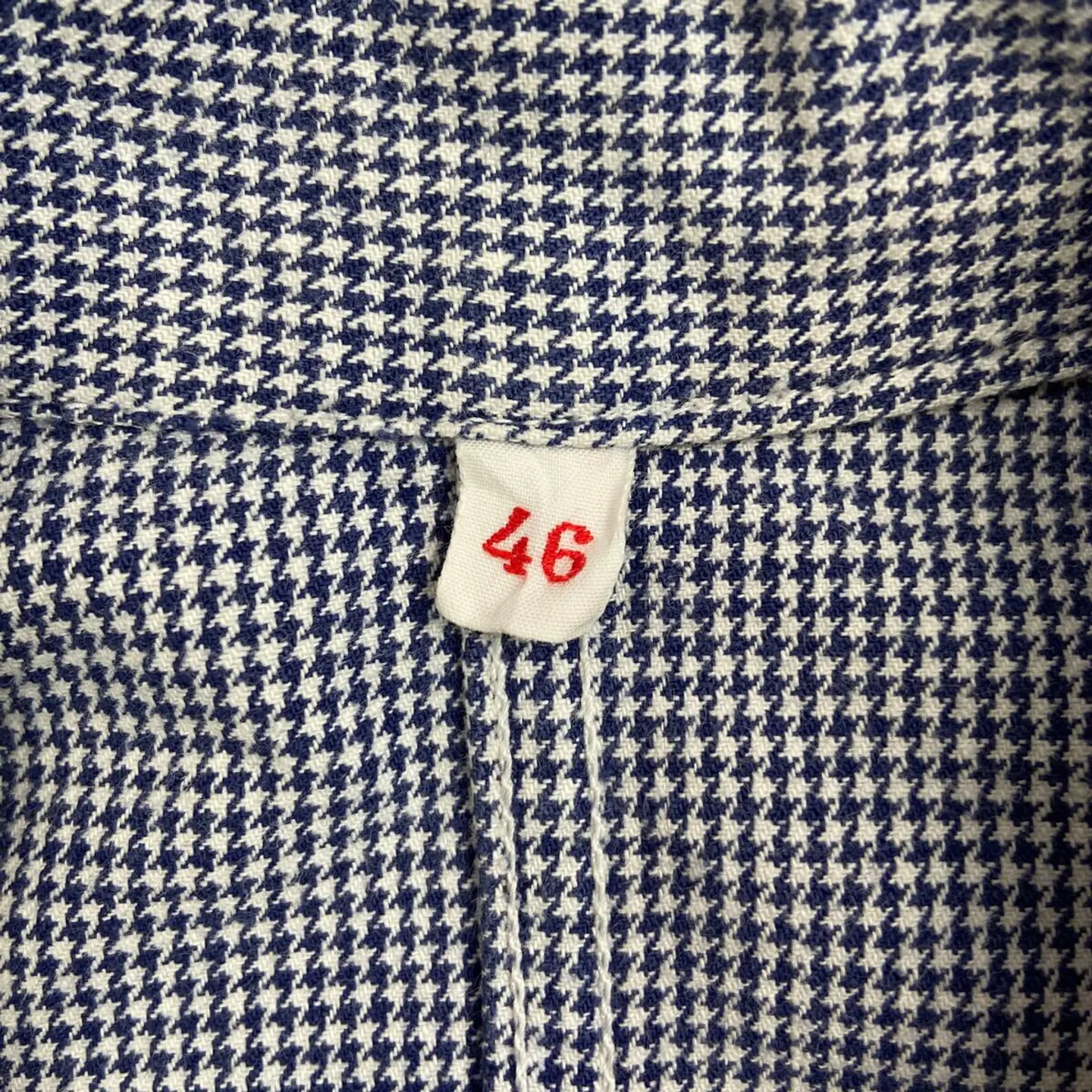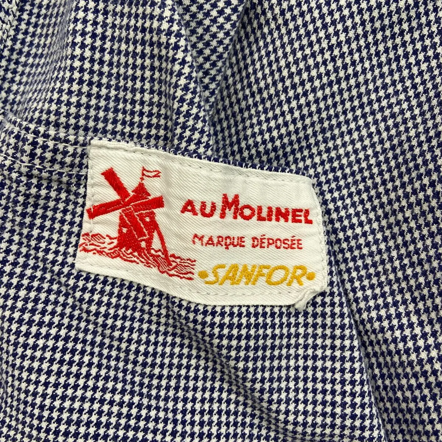 ■50年代 AU MOLINEL フレンチワーク コックジャケット V字ポケット付き メンズM~L相当 古着 60s VINTAGE ヴィンテージ 千鳥格子柄 Vポケ ユーロミリタリー ユーロワーク ブルー×ホワイト【ワークジャケット】/マルチカラー 【ブランド】AU MOLINEL 【サイズ】表記 46 (着用感メンズM~L相当) ※計測値をご確認ください。 着丈…70 身幅…56.5 肩幅…47 袖丈…58 【生産国】不明 【素材】不明(おそらくコットン) 【状態】フロント左胸ポケット付近に若干のほつれがございます。 画像にてご確認ください。 【c260221129】 ※古着は洗濯、検品などのケアを行っております。(新品・デッドストックは洗濯していません。) ※モニターの発色により実物と異なる場合がございます。予めご了承ください。 ※ 海外直輸入USED品になります。