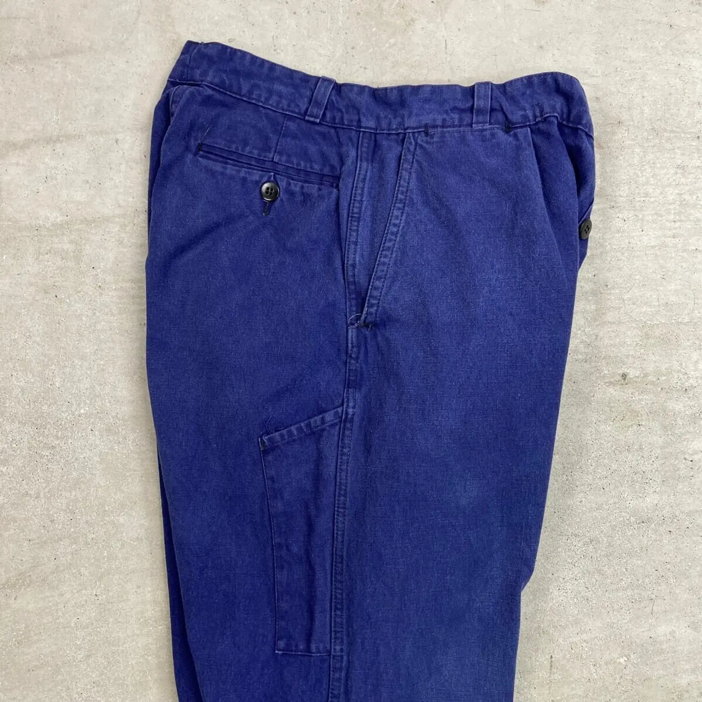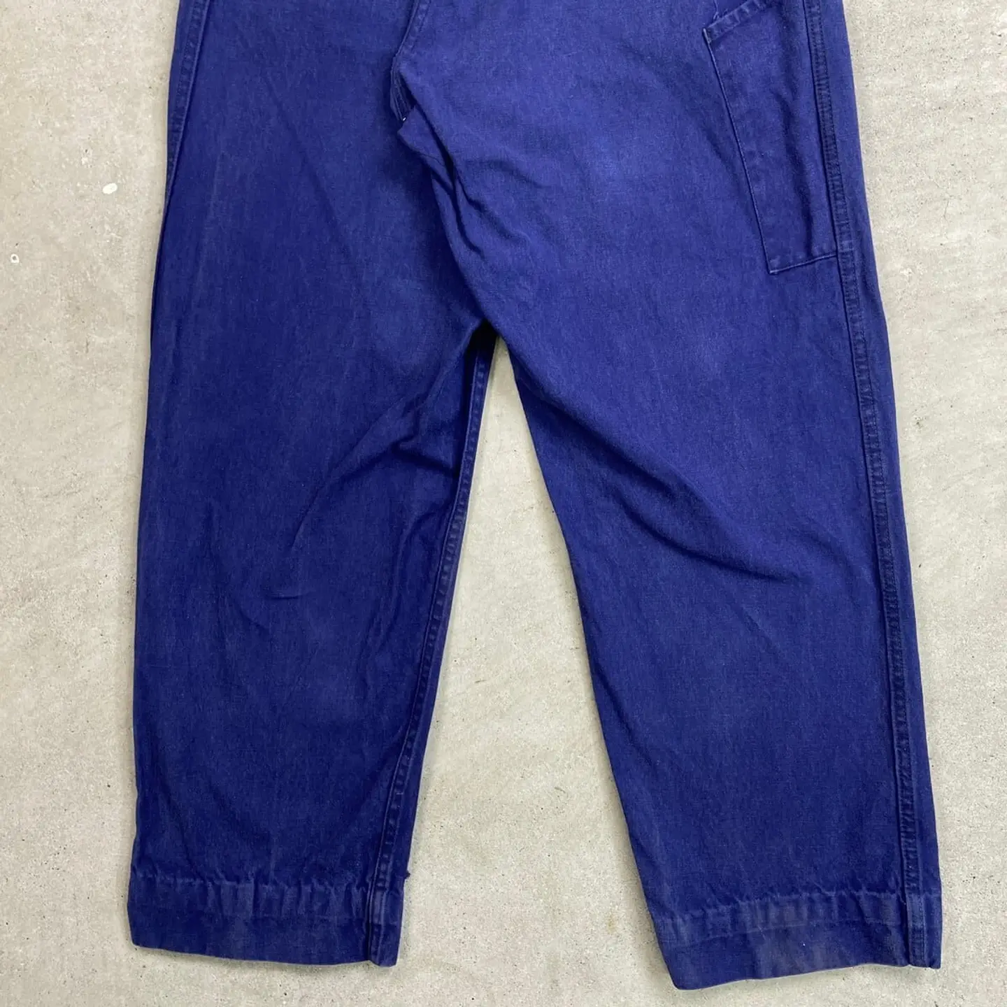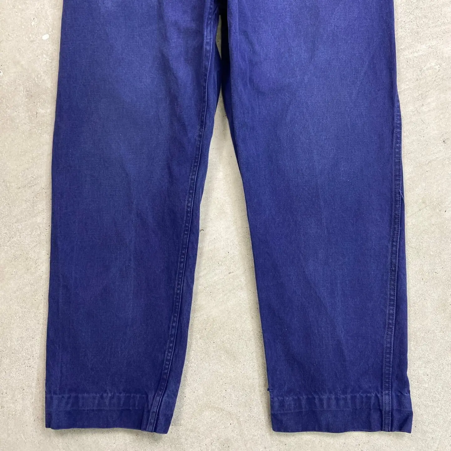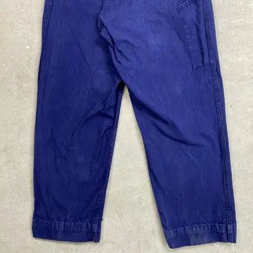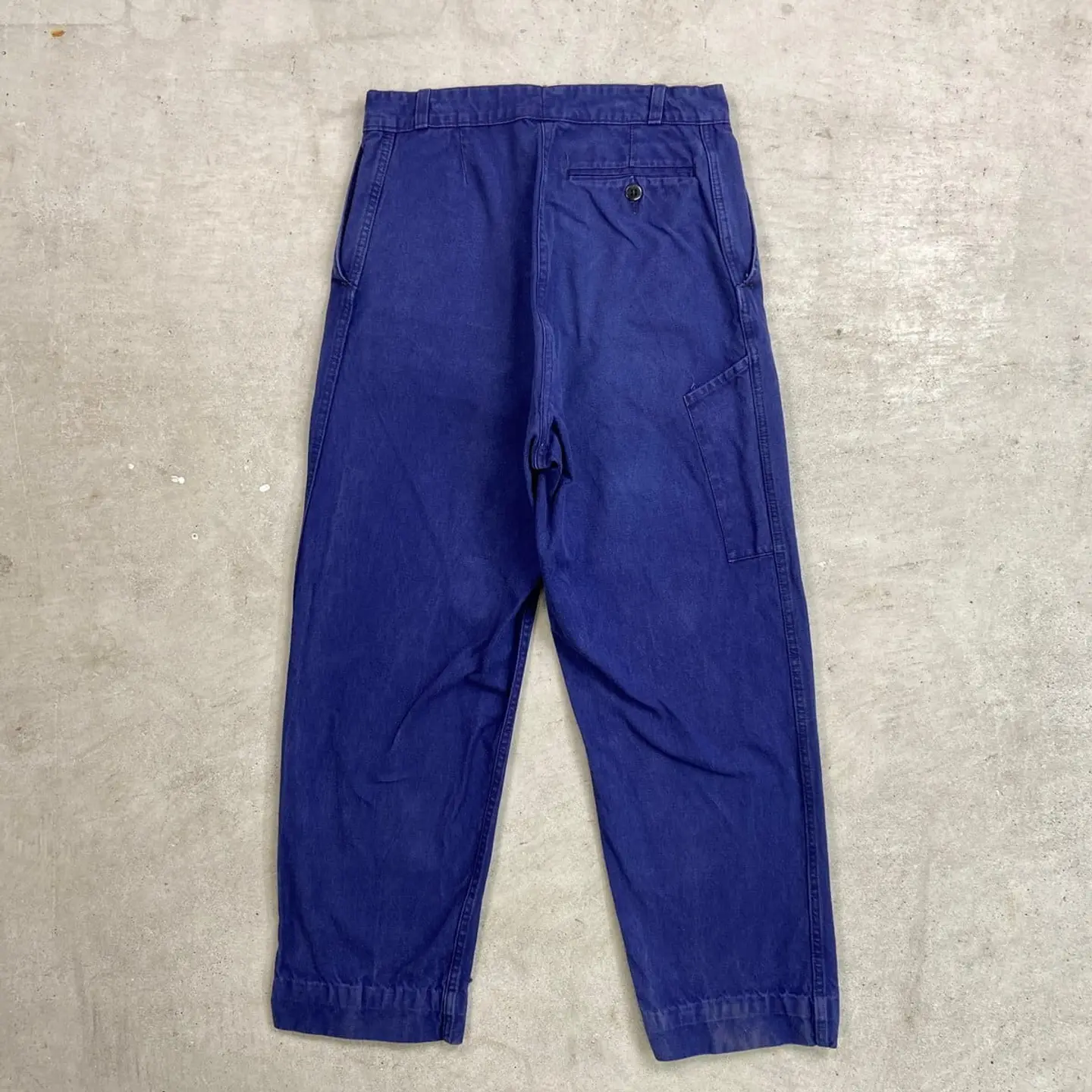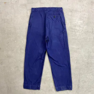 ■50年代~ PONBAC フレンチワークパンツ コットンツイル メンズW30相当 古着 50s VINTAGE ヴィンテージ ユーロワーク インクブルー 紺色【ワークパンツ】/ネイビー 【ブランド】PONBAC 【サイズ】表記 不明(実寸メンズW30 L30相当) ※計測値をご確認ください。 ウエスト(平置き×2)…78 ワタリ幅…35 股上….36 股下…71 裾幅…22 【生産国】不明 【素材】不明 おそらくコットンかと思われます。 【状態】 全体的に使用感による色あせはありますが、 目立ったダメージや汚れはなく、 まだまだ愛用していただけます。 画像にてご確認ください。 【c260221127】 ※古着は洗濯、検品などのケアを行っております。(新品・デッドストックは洗濯していません。) ※モニターの発色により実物と異なる場合がございます。予めご了承ください。 ※ 海外直輸入USED品になります。