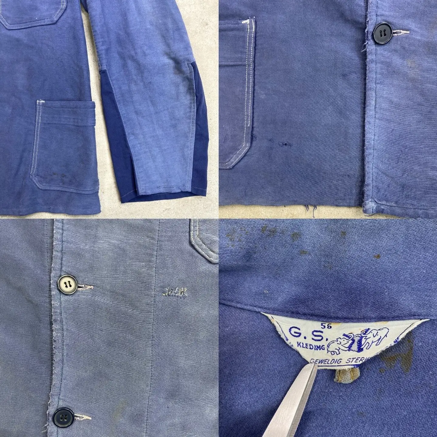 ■60年代 G.S. KLEDING ブルーモールスキン フレンチワークジャケット メンズM~L相当 古着 60s VINTAGE ヴィンテージ ユーロワーク フェードブルー【ワークジャケット】/ブルー 【ブランド】G.S. KLEDING 【サイズ】56(実寸メンズM~L相当) ※計測値をご確認ください。 着丈…72 身幅…54 肩幅…50.5 袖丈…64.5 【生産国】不明 【素材】不明(おそらくコットン) 【状態】全体的にフェードや薄汚れがございます。 所々にダメージやリペア跡があり、長年愛用されていたのが 伝わるワークらしい1着です。 画像にてご確認ください。 【c260221123】 ※古着は洗濯、検品などのケアを行っております。(新品・デッドストックは洗濯していません。) ※モニターの発色により実物と異なる場合がございます。予めご了承ください。 ※ 海外直輸入USED品になります。