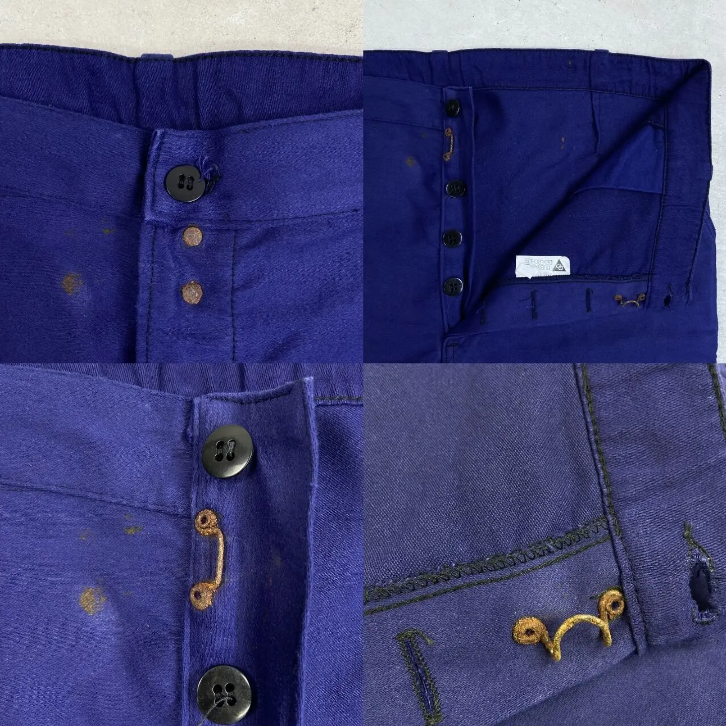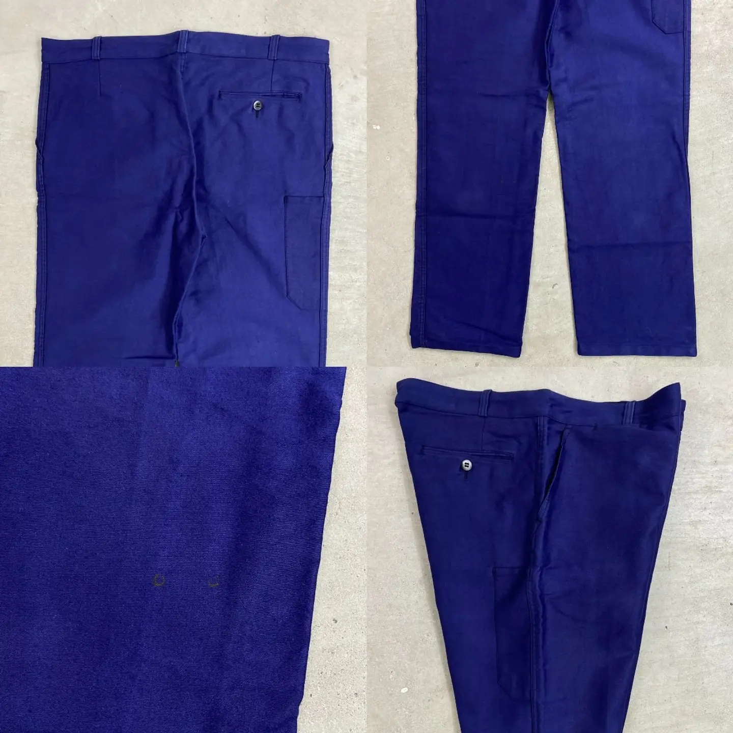 ■60年代 DUBURE&DEVERCHERE ブルーモールスキン フレンチワークパンツ メンズW43相当 古着 60s VINTAGE ヴィンテージ ユーロワーク インクブルー ビッグサイズ 大きいサイズ 紺色【ワークパンツ】/ネイビー 【ブランド】DUBURE&DEVERCHERE 【サイズ】表記 52 (実寸W43 L31相当) ※計測値をご確認ください。 ウエスト(平置き×2)…110 ワタリ幅…34.5 股上…32 股下…80.5 裾幅…22.5 【生産国】不明 【素材】コットン 【状態】フロントボタンやフック、その付近に錆び汚れがございます。 バックサイドにも若干の汚れがあります。 画像にてご確認ください。 【c260221119】 ※古着は洗濯、検品などのケアを行っております。(新品・デッドストックは洗濯していません。) ※モニターの発色により実物と異なる場合がございます。予めご了承ください。 ※ 海外直輸入USED品になります。