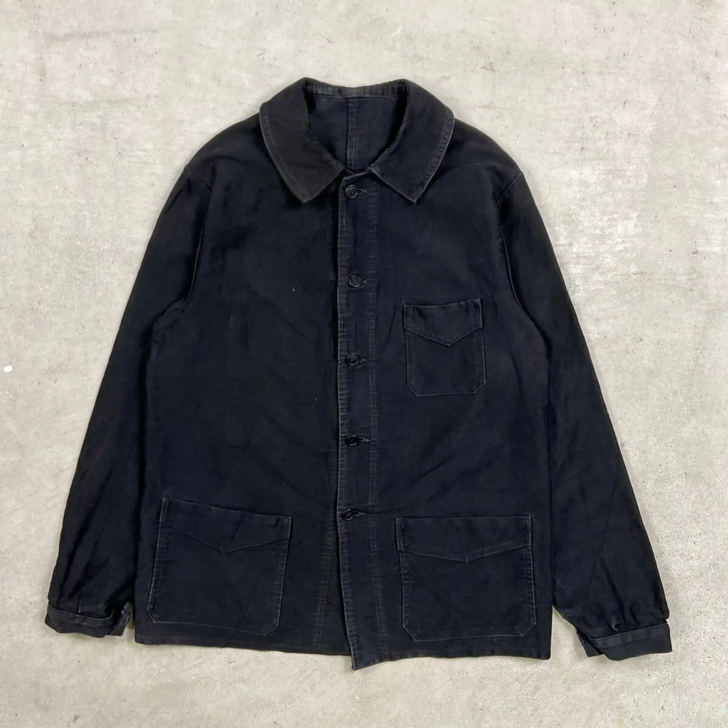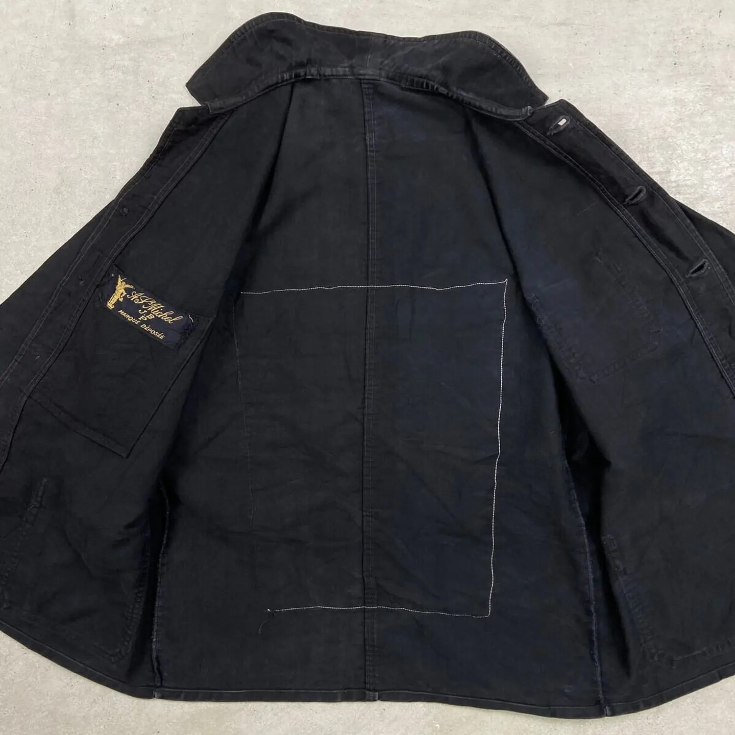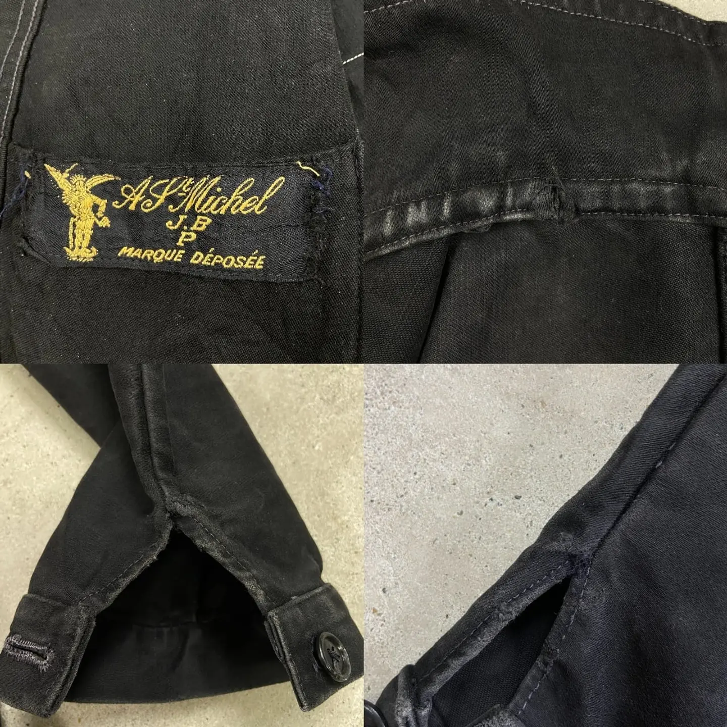 ■40年代 A St.Michel ブラックモールスキン フレンチワークジャケット V字ポケット メンズL相当 古着 40s VINTAGE ヴィンテージ ハンドペイント 黒タグ 刺繍タグ ユーロワーク 黒色【ワークジャケット】/ブラック 【ブランド】A St.Michel 【サイズ】不明(実寸メンズL相当) ※計測値をご確認ください。 着丈…70 身幅…55 肩幅…46 袖丈…64.5 【生産国】不明 【素材】不明(おそらくコットン) 【状態】全体的に使用感による色あせがございます。 フロント上部に一部汚れがあります。 袖に若干のダメージがあります。 画像にてご確認ください。 【c260221116】 ※古着は洗濯、検品などのケアを行っております。(新品・デッドストックは洗濯していません。) ※モニターの発色により実物と異なる場合がございます。予めご了承ください。 ※ 海外直輸入USED品になります。