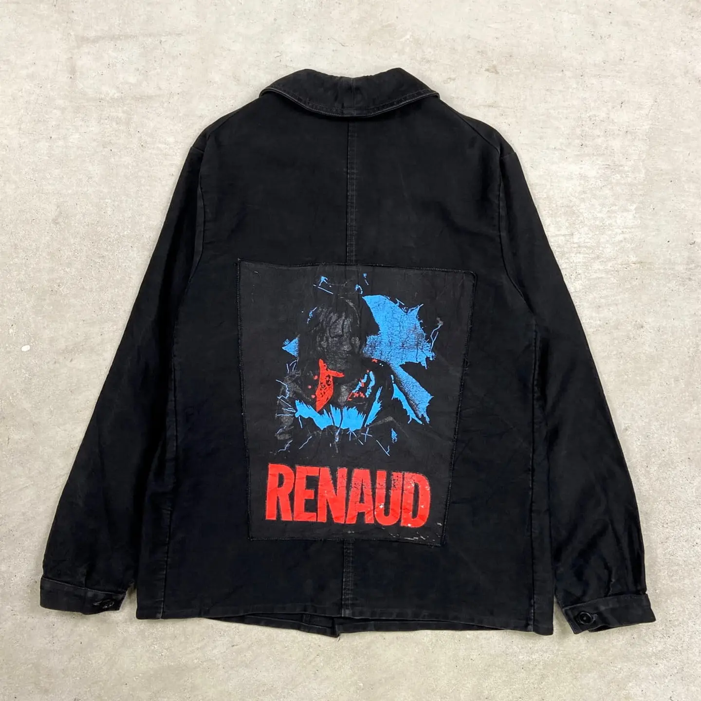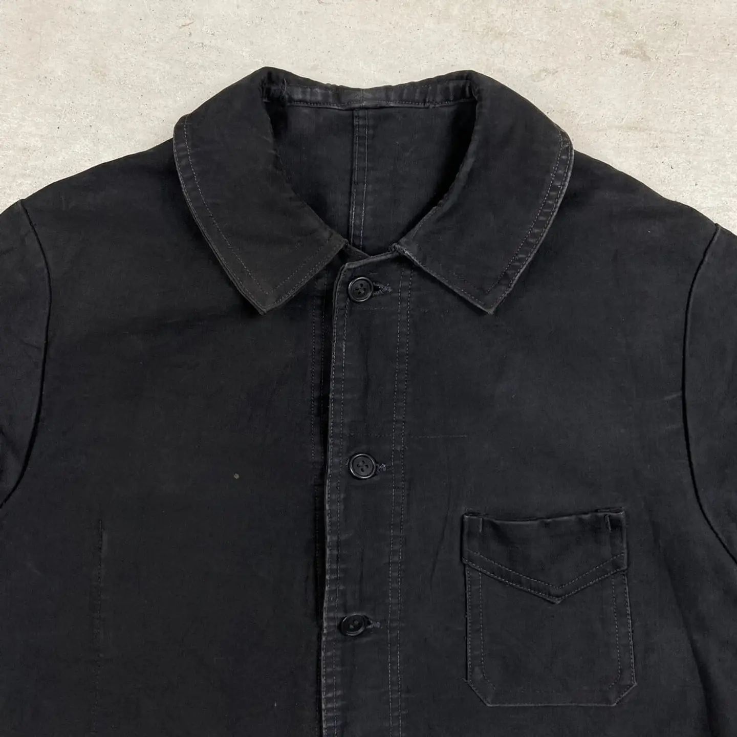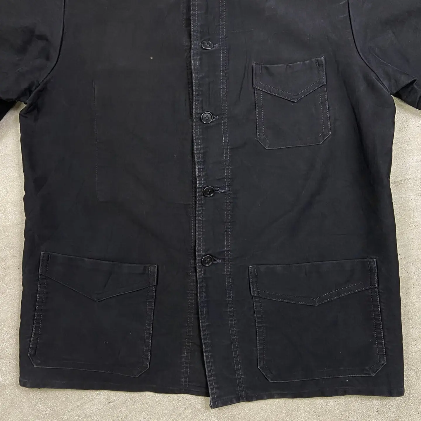 ■40年代 A St.Michel ブラックモールスキン フレンチワークジャケット V字ポケット メンズL相当 古着 40s VINTAGE ヴィンテージ ハンドペイント 黒タグ 刺繍タグ ユーロワーク 黒色【ワークジャケット】/ブラック 【ブランド】A St.Michel 【サイズ】不明(実寸メンズL相当) ※計測値をご確認ください。 着丈…70 身幅…55 肩幅…46 袖丈…64.5 【生産国】不明 【素材】不明(おそらくコットン) 【状態】全体的に使用感による色あせがございます。 フロント上部に一部汚れがあります。 袖に若干のダメージがあります。 画像にてご確認ください。 【c260221116】 ※古着は洗濯、検品などのケアを行っております。(新品・デッドストックは洗濯していません。) ※モニターの発色により実物と異なる場合がございます。予めご了承ください。 ※ 海外直輸入USED品になります。