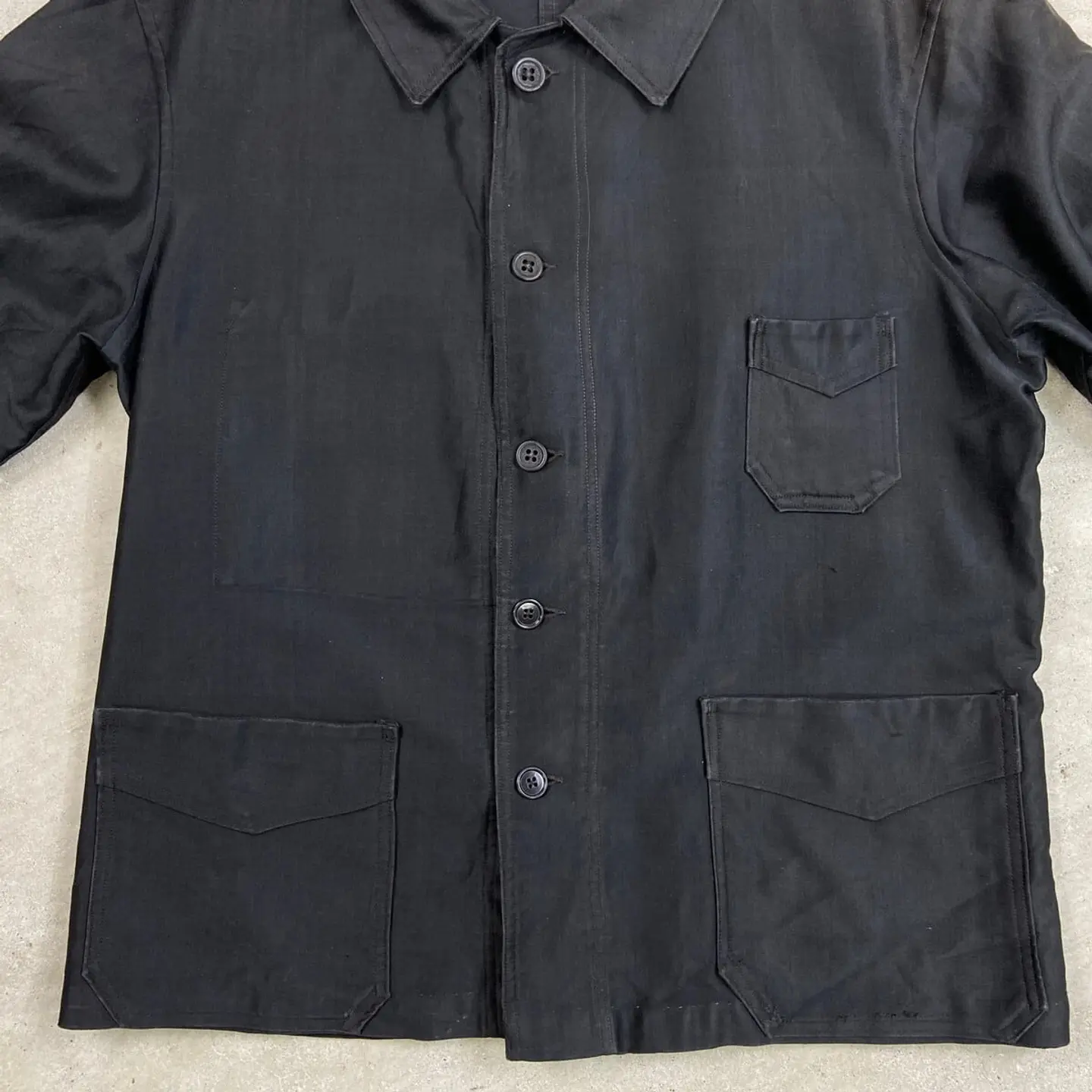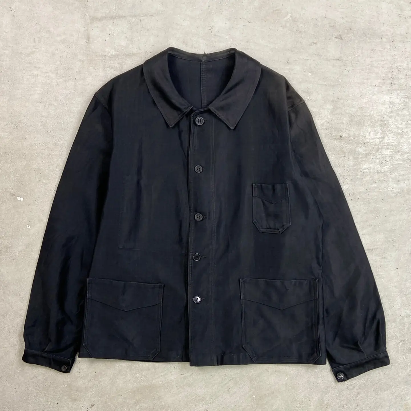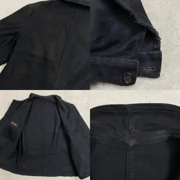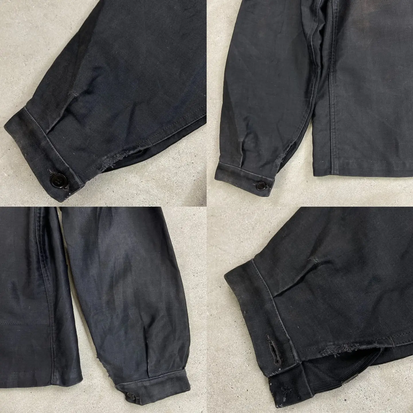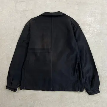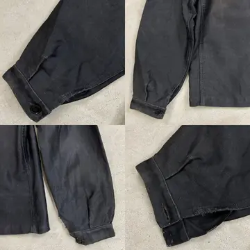 ■40年代 CHATEAU-RENAULT ブラックモールスキン フレンチワークジャケット V字ポケット メンズL相当 古着 40s VINTAGE ヴィンテージ 刺繍タグ ユーロワーク 黒色【ワークジャケット】/ブラック 【ブランド】CHATEAU-RENAULT 【サイズ】不明(実寸メンズL相当) ※計測値をご確認ください。 着丈…68 身幅…55.5 肩幅…50 袖丈…63 【生産国】不明 【素材】不明(おそらくコットン) 【状態】フロント下2つは代替ボタンが使用されております。 主に、袖やバックサイドにワークジャケットらしい汚れが ございます。 ポケット付近や袖に若干のダメージがあります。 画像にてご確認ください。 【c260221115】 ※古着は洗濯、検品などのケアを行っております。(新品・デッドストックは洗濯していません。) ※モニターの発色により実物と異なる場合がございます。予めご了承ください。 ※ 海外直輸入USED品になります。