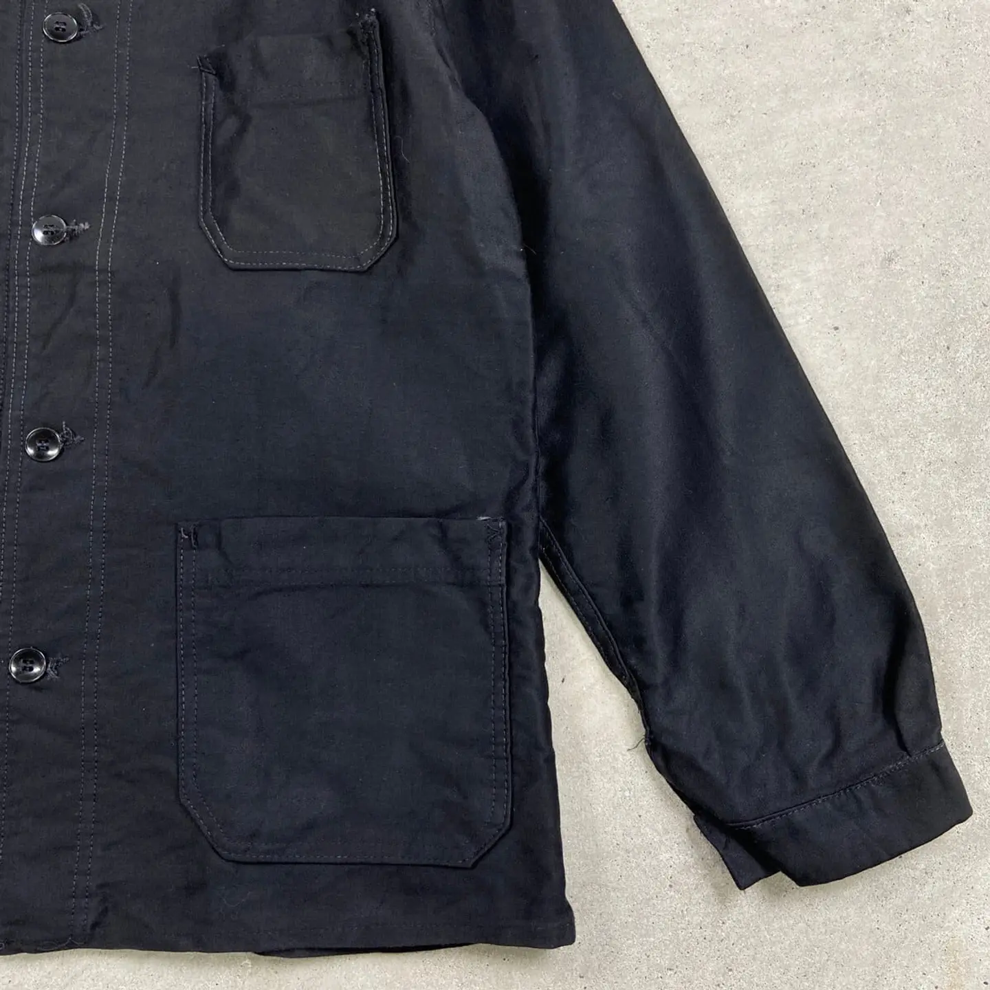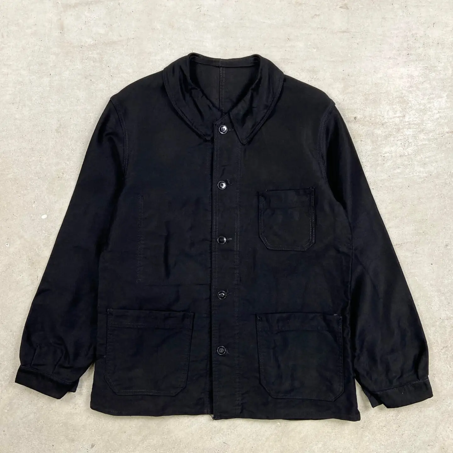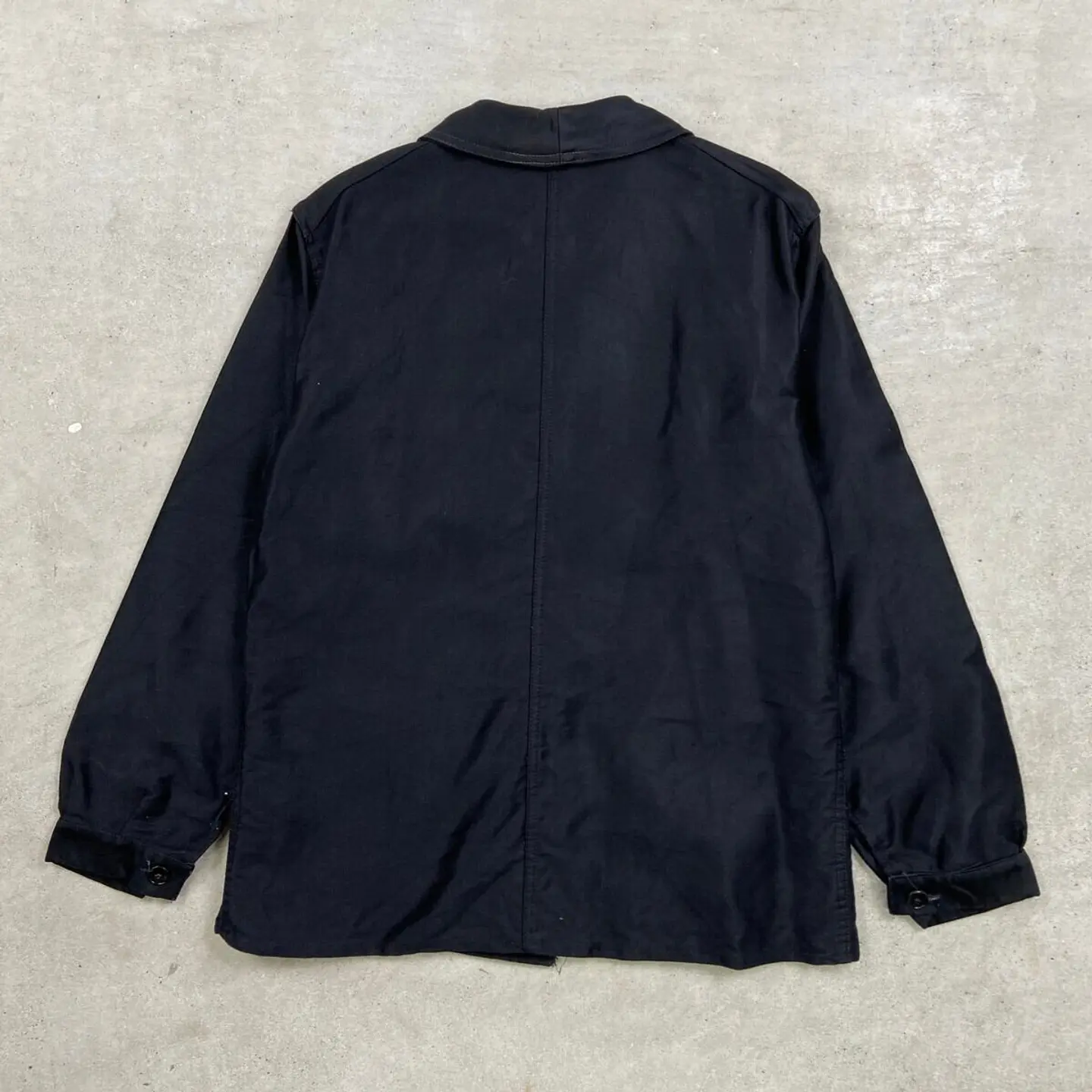 ■50年代 ブラックモールスキン フレンチワークジャケット メンズM相当 古着 50s VINTAGE ヴィンテージ ユーロワーク 黒色【ワークジャケット】/ブラック 【サイズ】不明(実寸メンズM相当) ※計測値をご確認ください。 着丈…70 身幅…56 肩幅…45 袖丈…61.5 【生産国】不明 【素材】不明(おそらくコットン) 【状態】多少の使用感による色あせがございますが、 比較的綺麗な状態で、ダメージや汚れはありません。 画像にてご確認ください。 【c260221113】 ※古着は洗濯、検品などのケアを行っております。(新品・デッドストックは洗濯していません。) ※モニターの発色により実物と異なる場合がございます。予めご了承ください。 ※ 海外直輸入USED品になります。