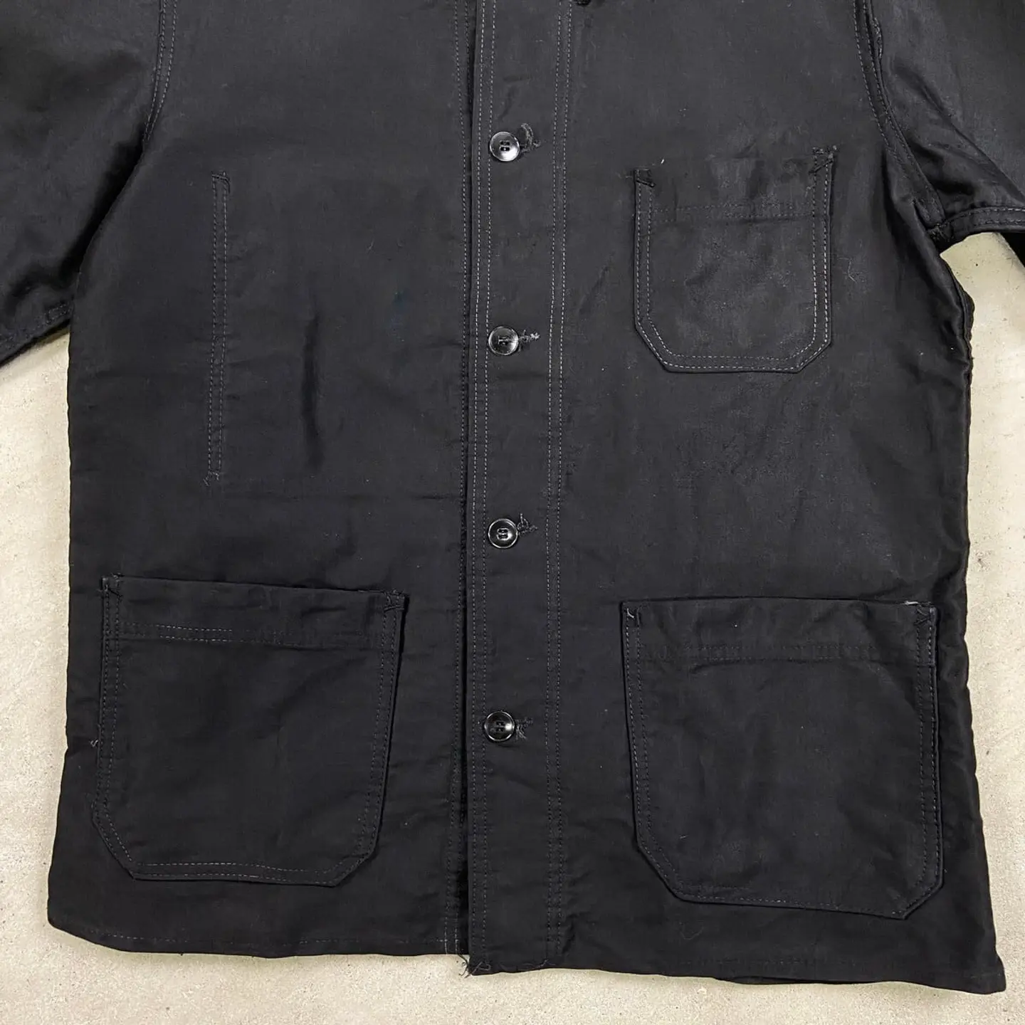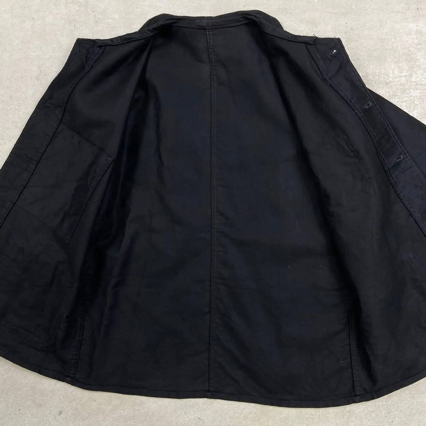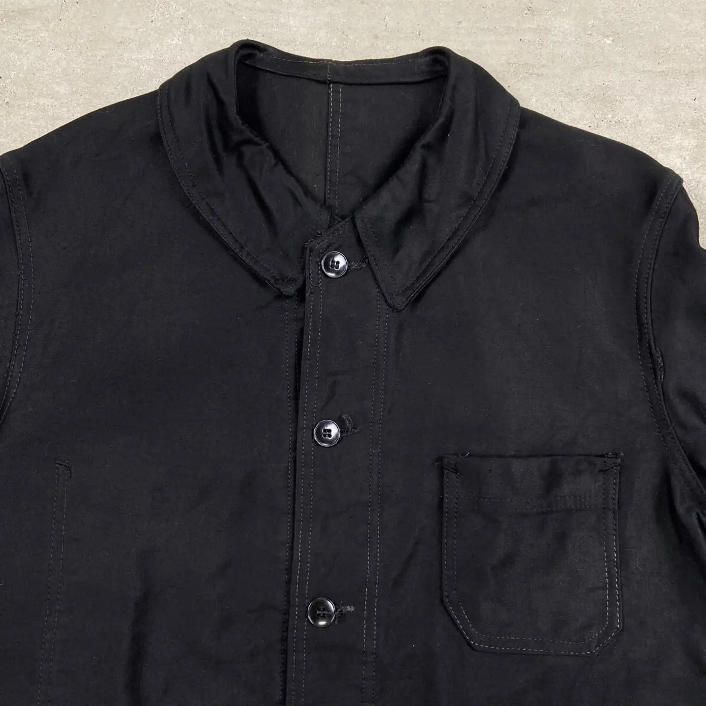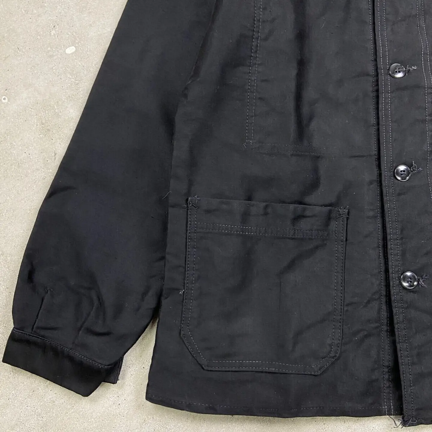 ■50年代 ブラックモールスキン フレンチワークジャケット メンズM相当 古着 50s VINTAGE ヴィンテージ ユーロワーク 黒色【ワークジャケット】/ブラック 【サイズ】不明(実寸メンズM相当) ※計測値をご確認ください。 着丈…70 身幅…56 肩幅…45 袖丈…61.5 【生産国】不明 【素材】不明(おそらくコットン) 【状態】多少の使用感による色あせがございますが、 比較的綺麗な状態で、ダメージや汚れはありません。 画像にてご確認ください。 【c260221113】 ※古着は洗濯、検品などのケアを行っております。(新品・デッドストックは洗濯していません。) ※モニターの発色により実物と異なる場合がございます。予めご了承ください。 ※ 海外直輸入USED品になります。