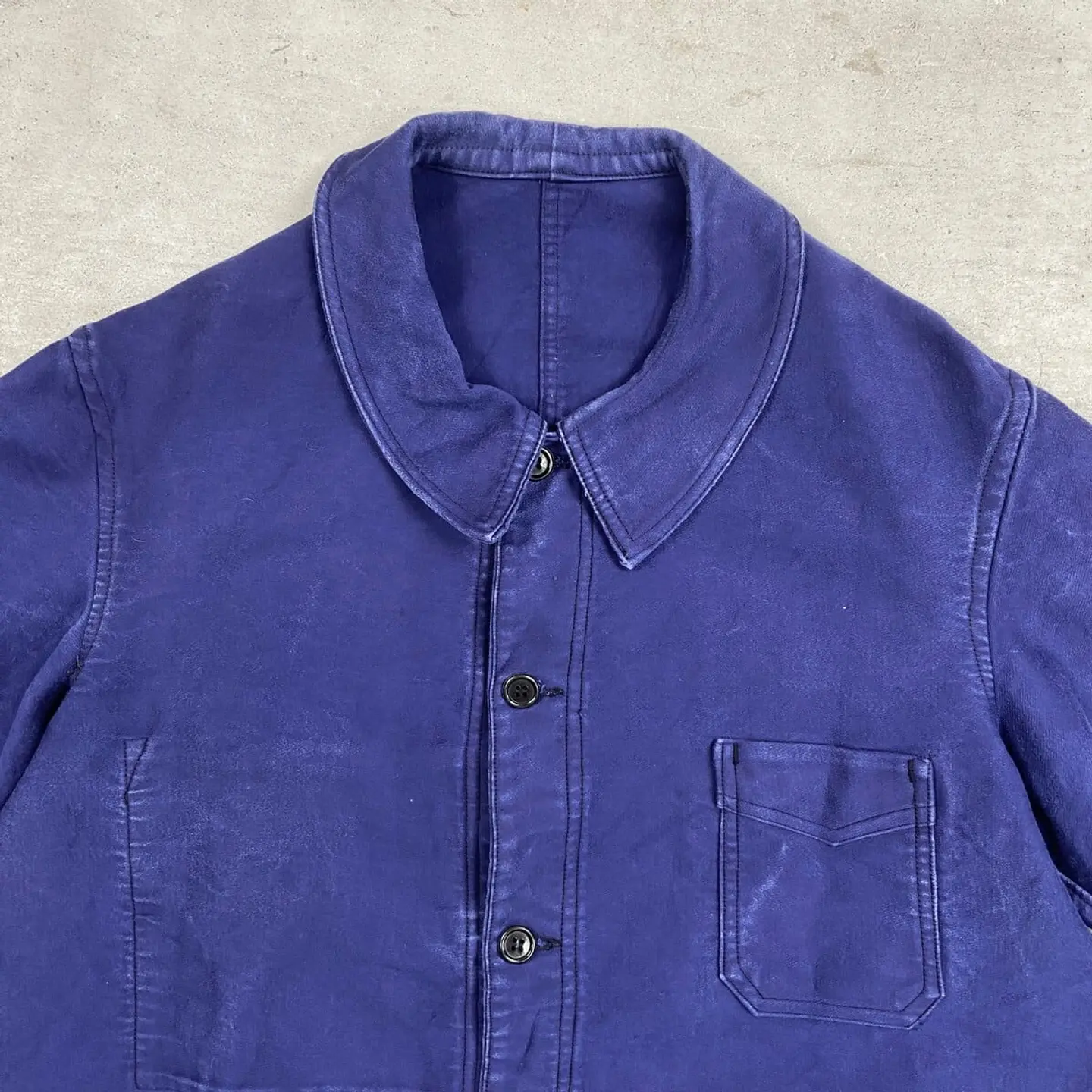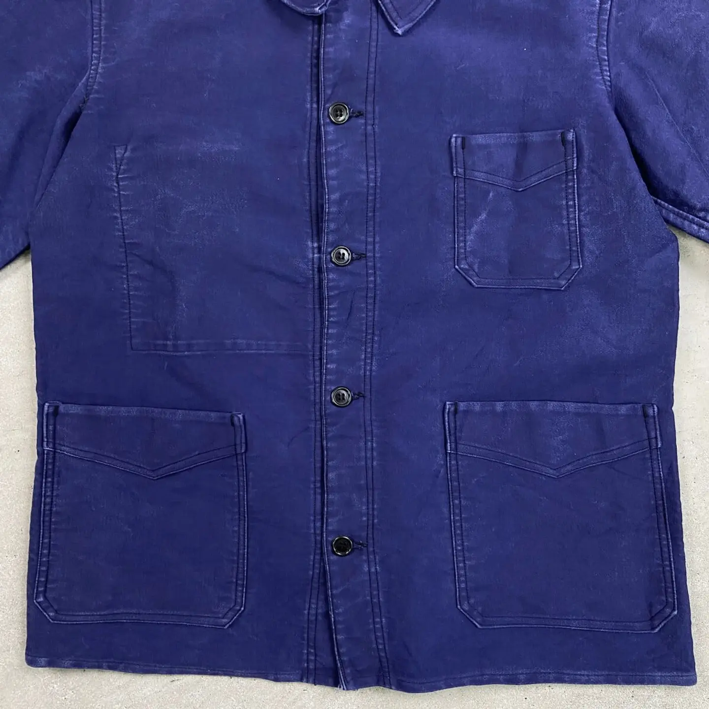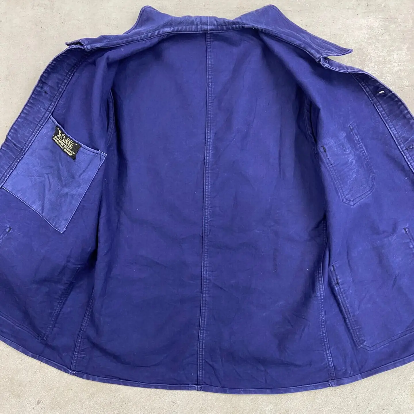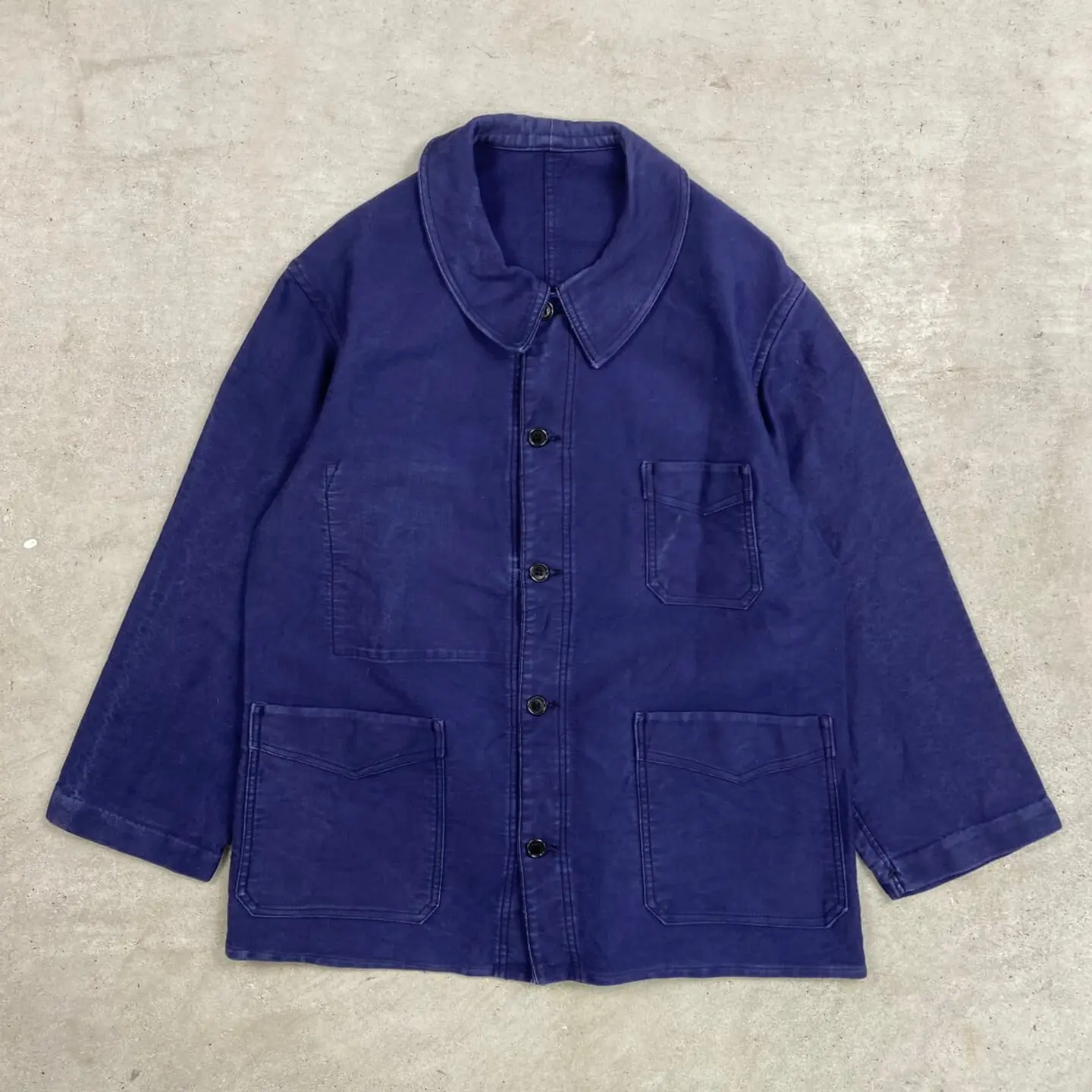 ■40~50年代 Le Cable ブルーモールスキン フレンチワークジャケット V字ポケット付き メンズM相当 古着 40s 50s VINTAGE ヴィンテージ 刺繍タグ ユーロワーク 【ユーロワークジャケット】/ネイビー 希少なV字ポケット付きです。 【ブランド】Le Cable 【サイズ】表記 42(実寸メンズM相当) ※計測値をご確認ください。 着丈…70.5 身幅…55 肩幅…45 袖丈…53 【生産国】不明 【素材】不明(おそらくコットン) 【状態】全体的に使用感による色あせがございます。 その他目立ったダメージや汚れはありません。 画像にてご確認ください。 【c260221107】 ※古着は洗濯、検品などのケアを行っております。(新品・デッドストックは洗濯していません。) ※モニターの発色により実物と異なる場合がございます。予めご了承ください。 ※ 海外直輸入USED品になります。