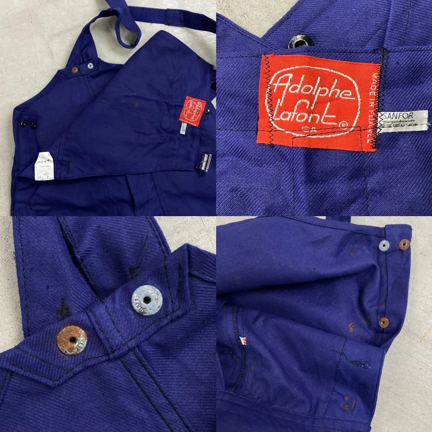 ■DEAD STOCK NOS 60年代 フランス製 フレンチワーク オーバーオール メンズW34相当 古着 60s VINTAGE ヴィンテージ デッドストック コットンツイル 八の字ポケット ECLAIRジッパー ユーロワーク インクブルー 紺色【オーバーオール】/ネイビー 【サイズ】表記 44 (実寸メンズW34 L33相当) ※計測値をご確認ください。 総丈(肩から裾まで)…167(写真の状態の長さです。調節も可能になっています。) ウエスト(平置き計測×2)…87 ワタリ幅…33 股下…85 裾幅…23 【生産国】フランス製 【素材】コットン100% 【状態】デッドストック(新品未使用品)です。 ボタンの錆び、裏地やバックサイドポケット付近に汚れがあります。 画像にてご確認ください。 【c260221102】 ※古着は洗濯、検品などのケアを行っております。(新品・デッドストックは洗濯していません。) ※モニターの発色により実物と異なる場合がございます。予めご了承ください。 ※ 海外直輸入USED品になります。