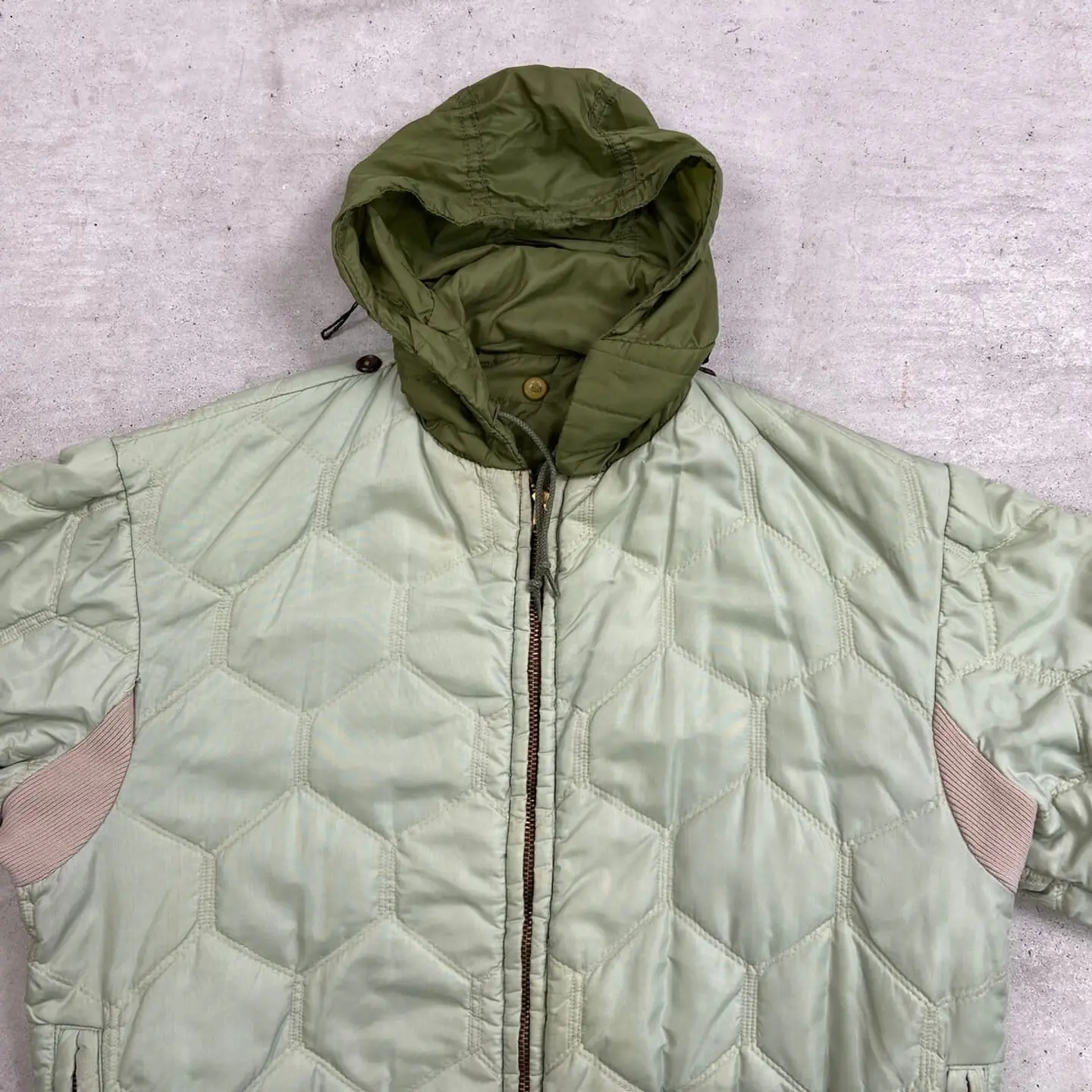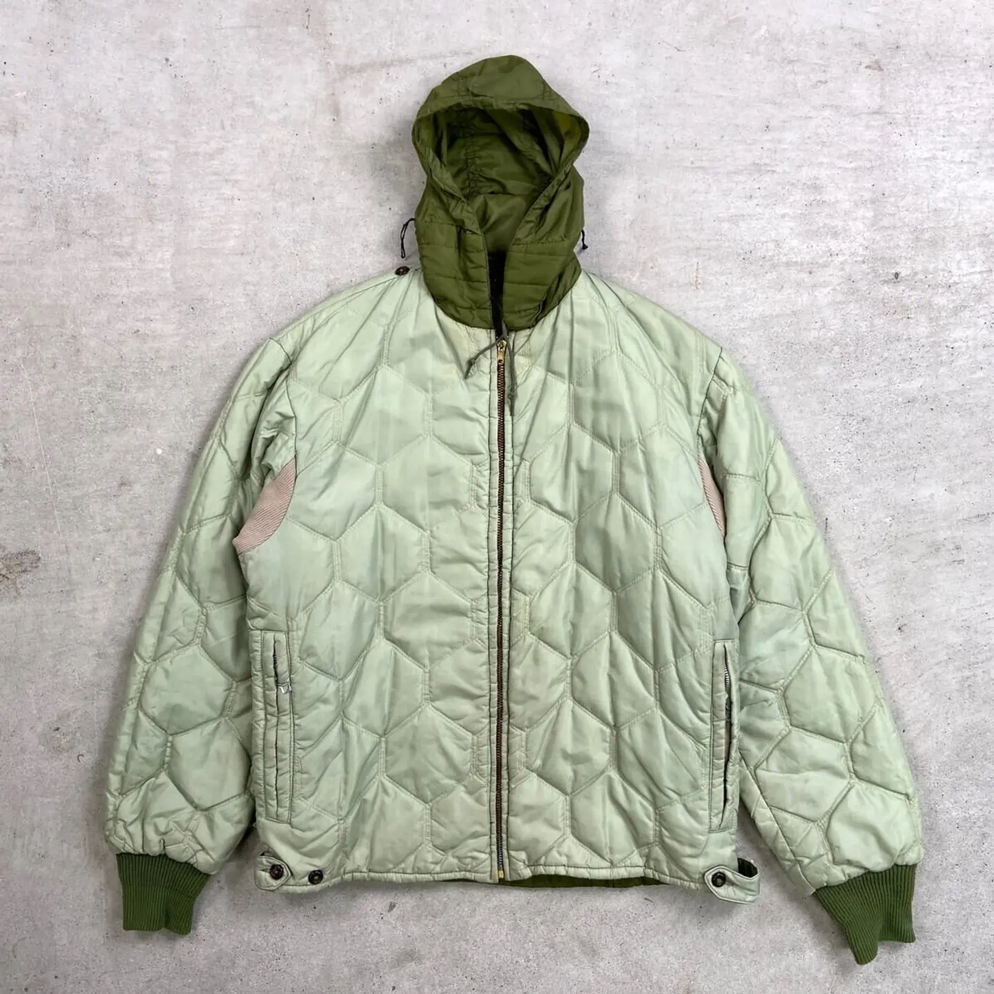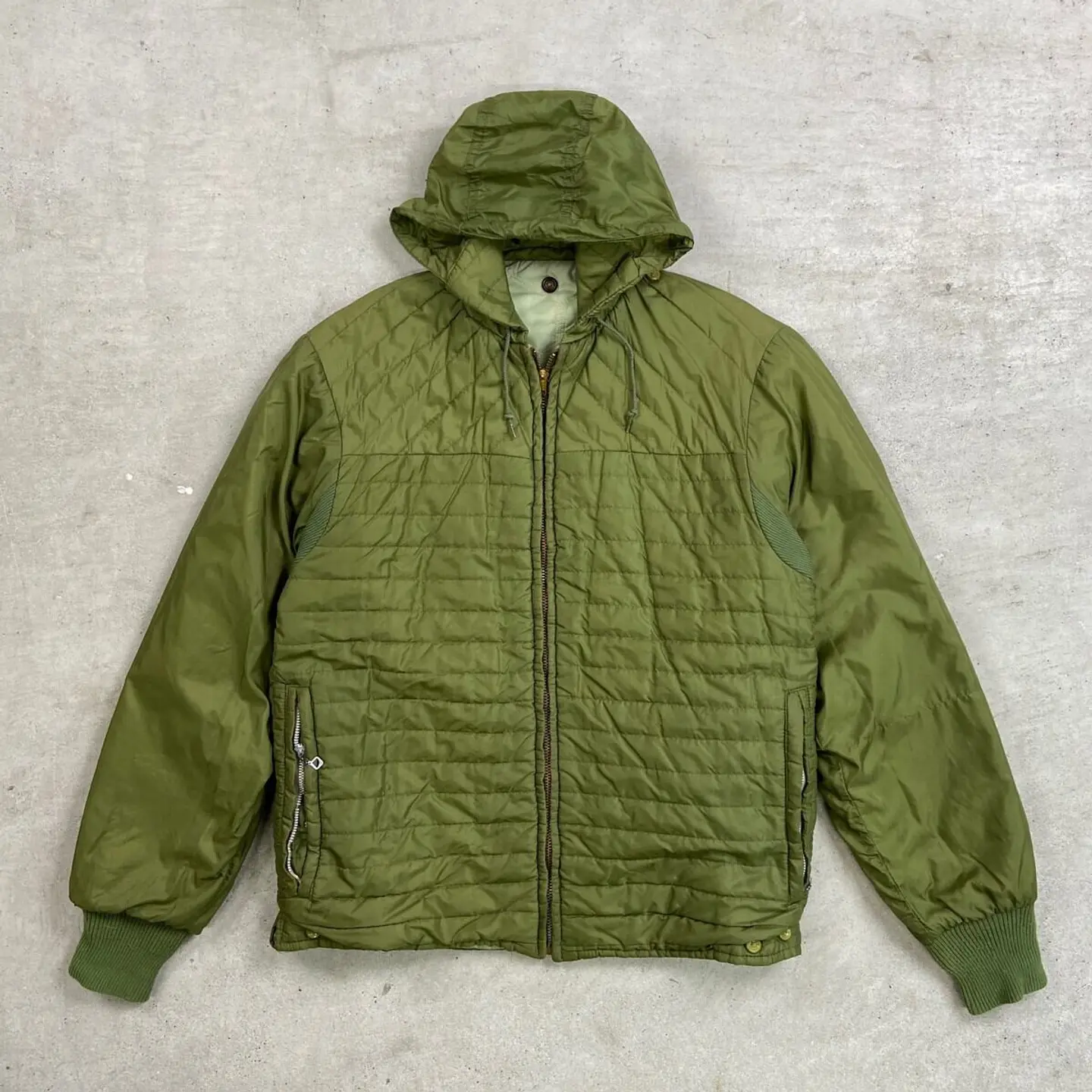 ■60~70年代 白タグ BUTWIN リバーシブル キルティングジャケットパーカー メンズM相当 レディースL相当 古着 60s 70s ヴィンテージ VINTAGE TALONジップ 切り替えデザイン オリーブグリーン【ナイロンジャケット】/グリーン 【ブランド】BUTWIN 【サイズ】不明(実寸メンズM相当) ※計測値をご確認ください。 着丈…66.5 身幅…58 肩幅…48 袖丈…66 【生産国】不明 【素材】不明(おそらくナイロン) 【状態】全体的に若干の薄汚れがございます。 オリーブグリーンカラー面の右ポケットジップが破損しております。 また、糸のほつれが多少ございます。 画像にてご確認ください。 【c260219103】 ※古着は洗濯、検品などのケアを行っております。(新品・デッドストックは洗濯していません。) ※モニターの発色により実物と異なる場合がございます。予めご了承ください。 ※ 海外直輸入USED品になります。