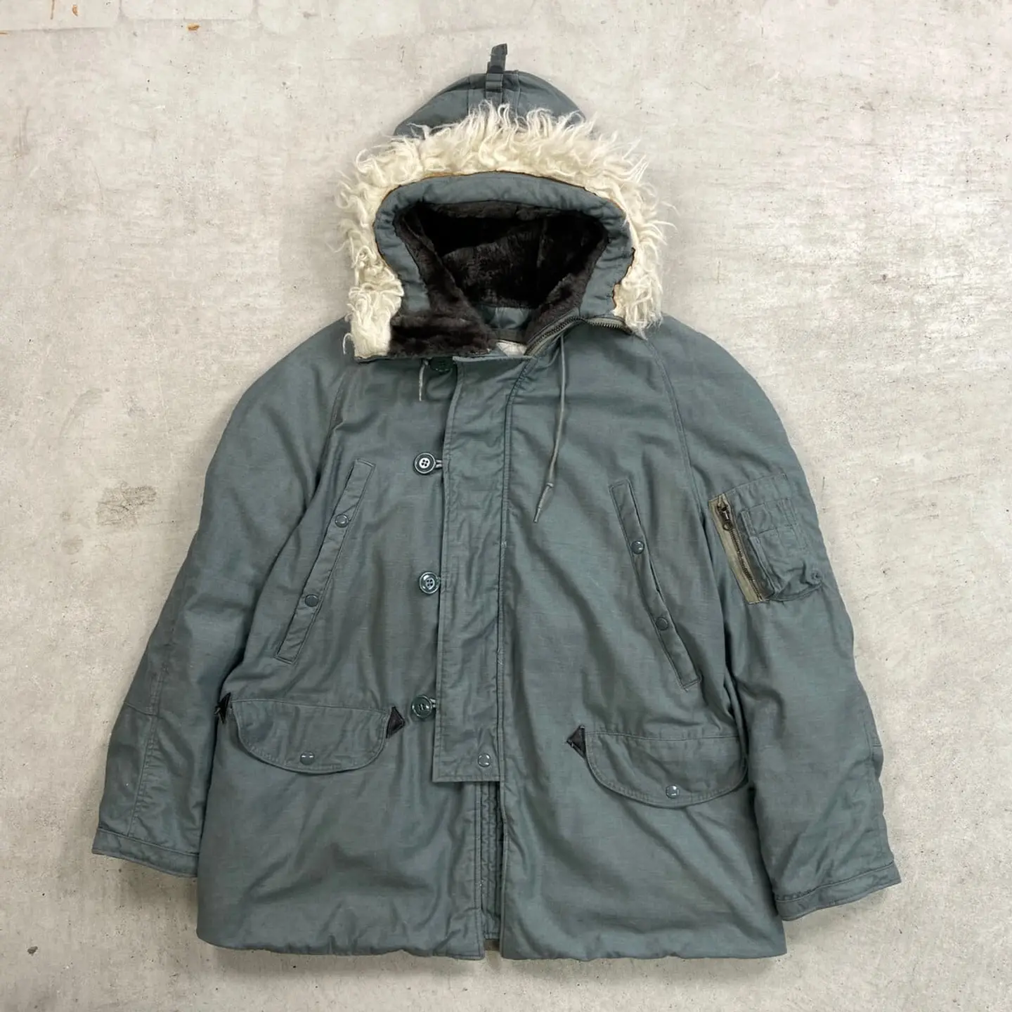 ■70年代 USAF U.S.AIR FORCE 米軍実品 N-3B ミリタリー フライトジャケット メンズXL相当 古着 70s VINTAGE ヴィンテージ SCOVILLジッパー セージグリーン【ミリタリージャケット】/カーキグリーン 【サイズ】表記不明(実寸メンズXL相当) 計測値をご確認ください。 着丈…83 身幅…67 裄丈…80.5 袖下(脇下計測)…52 【素材】不明(おそらくナイロンかと思われます) 【状態】 全体的に使用感はありますが、目立ったダメージや汚れはなく、 まだまだ愛用していただけます。 画像にてご確認ください。 【c260214121】 ※古着は洗濯、検品などのケアを行っております。(新品・デッドストックは洗濯していません。) ※モニターの発色により実物と異なる場合がございます。予めご了承ください。 ※ 海外直輸入USED品になります。