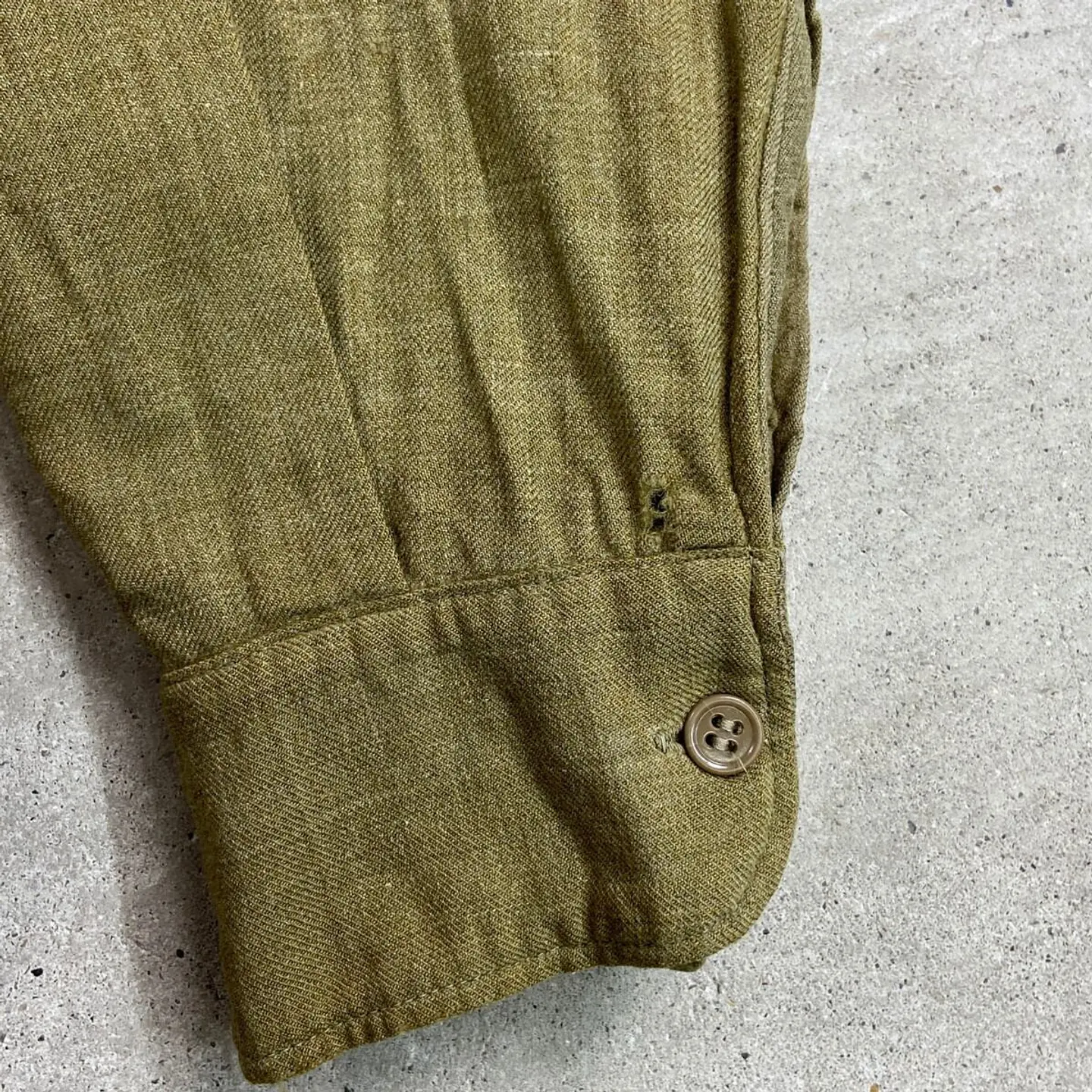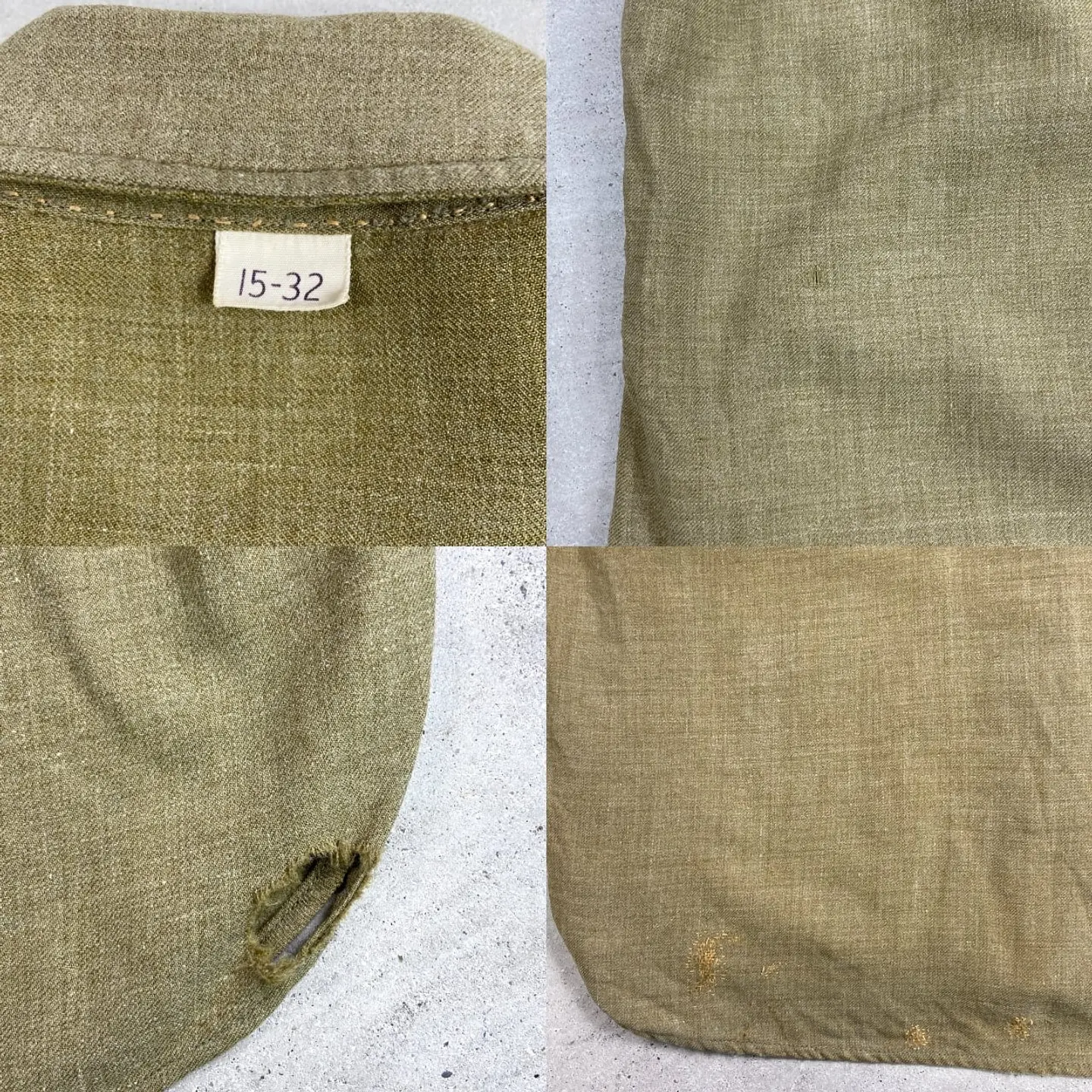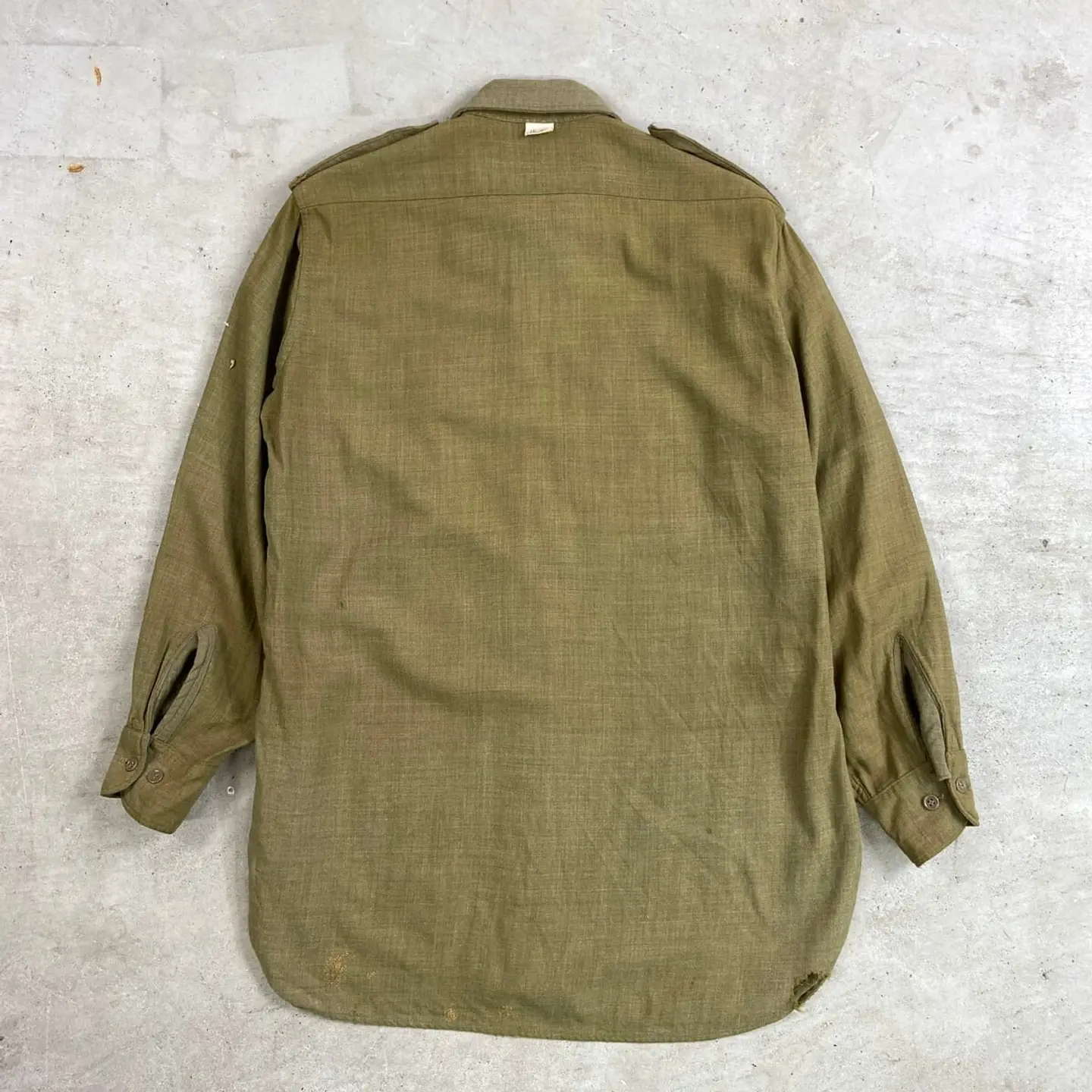 ■40年代 U.S.ARMY 将校用 マスタードシャツ メンズM相当 古着 40s アメカジ ヴィンテージ VINTAGE マチ付き エポレット付き ミリタリーシャツ カーキ【長袖シャツ】/グリーン 【サイズ】表記 15-32(実寸メンズM相当) ※計測値をご確認ください。 着丈…80 身幅…55 肩幅…45 袖丈…57 【状態】全体的に色あせがございます。 フロントに糸が浮き出ております。 裾・脇・バックサイドに一部ダメージがあります。 ポケットや裾にリペア跡があります。 画像にてご確認ください。 【c260214107】 ※古着は洗濯、検品などのケアを行っております。(新品・デッドストックは洗濯していません。) ※モニターの発色により実物と異なる場合がございます。予めご了承ください。 ※ 海外直輸入USED品になります。
