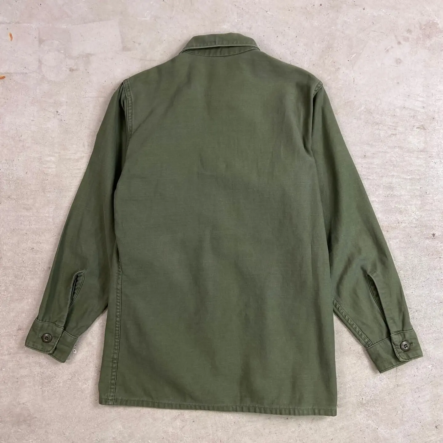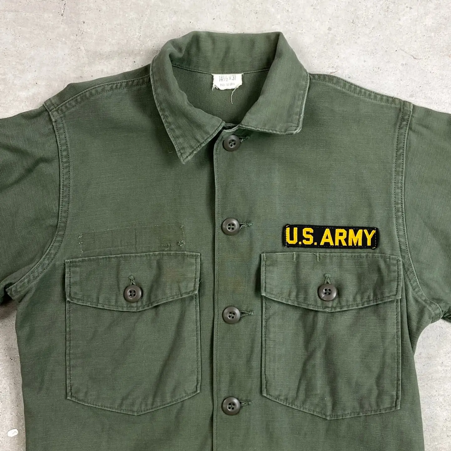 ■60年代 U.S.ARMY 米軍実品 OG-107 ユーティリティシャツ メンズS相当 古着 60s アメカジ ヴィンテージ VINTAGE コットンサテンシャツ ワッペン ミリタリーシャツ カーキグリーン【長袖シャツ】/カーキグリーン 【サイズ】表記 14 1/2 ×31(実寸メンズS相当) ※計測値をご確認ください。 着丈…69.5 身幅…52 肩幅…40.5 袖丈…57.5 【状態】全体的に色あせはありますが、目立ったダメージや汚れはありません。 画像にてご確認ください。 【c260214106】 ※古着は洗濯、検品などのケアを行っております。(新品・デッドストックは洗濯していません。) ※モニターの発色により実物と異なる場合がございます。予めご了承ください。 ※ 海外直輸入USED品になります。