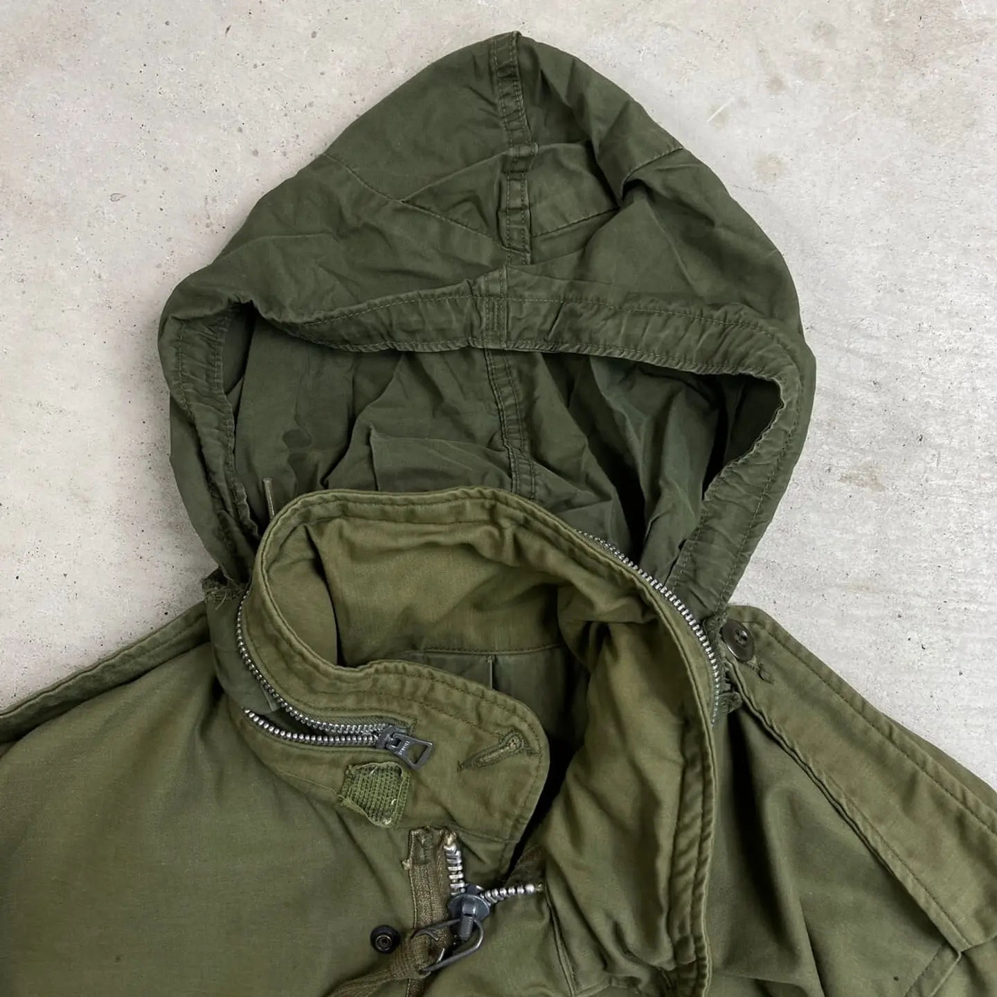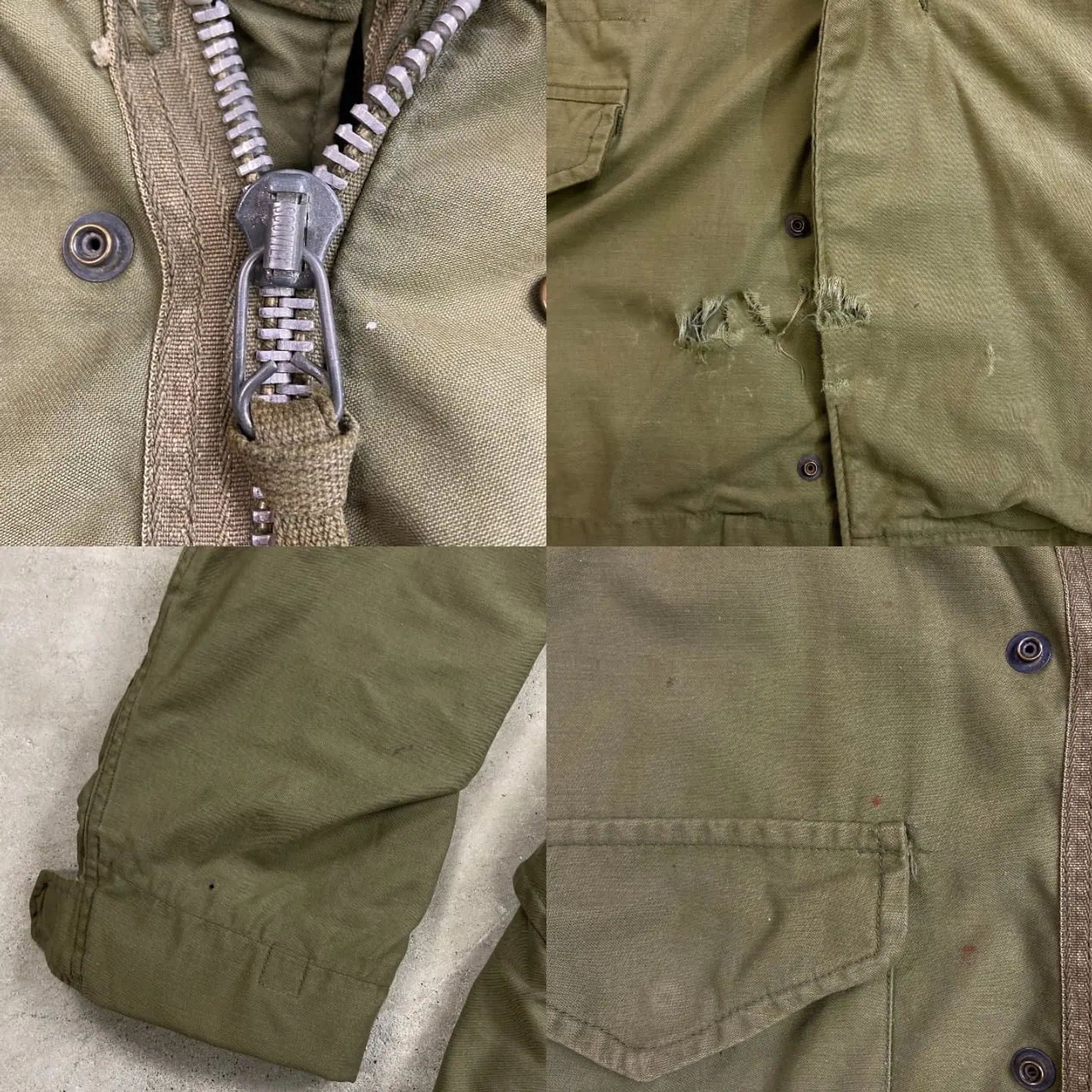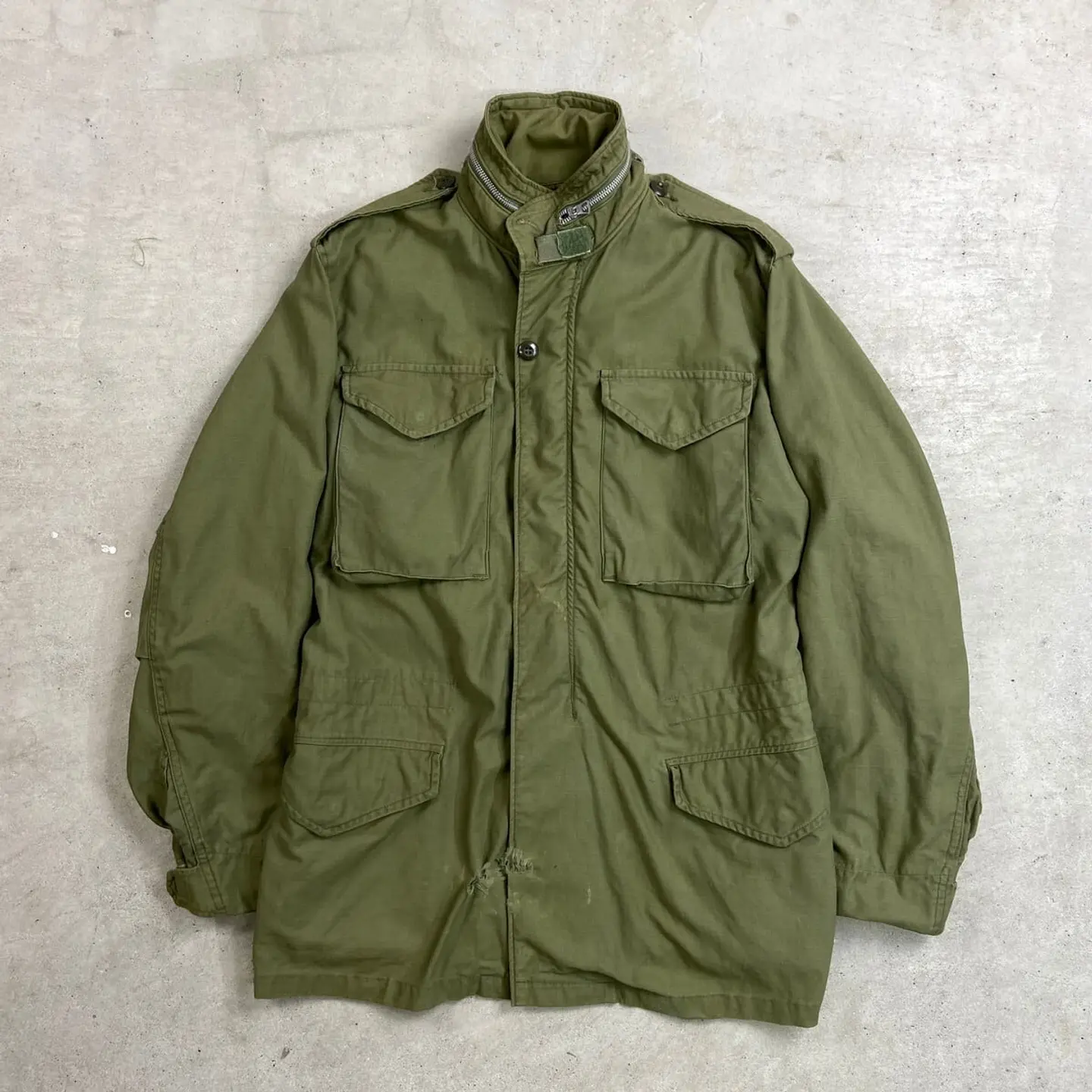 ■60~70年代 U.S.ARMY 米軍実品 M-65 2nd フィールドジャケット メンズM相当 古着 60s 70s ヴィンテージ VINTAGE アルミジップ SCOVILLジッパー フード収納型 オリーブグリーン【ミリタリージャケット】/カーキグリーン 【サイズ】表記不明(実寸メンズM相当) ※計測値をご確認ください。 着丈…81 身幅…51.5 肩幅…52 袖丈…全長70(三角フラップ部分7cmも含む) 【生産国】不明 【素材】ナイロン,コットン 【状態】全体的に使用感による汚れがあります。 フロント下部・バックサイド右袖にダメージがあります。 画像にてご確認ください。 【c260214102】 ※古着は洗濯、検品などのケアを行っております。(新品・デッドストックは洗濯していません。) ※モニターの発色により実物と異なる場合がございます。予めご了承ください。 ※ 海外直輸入USED品になります。