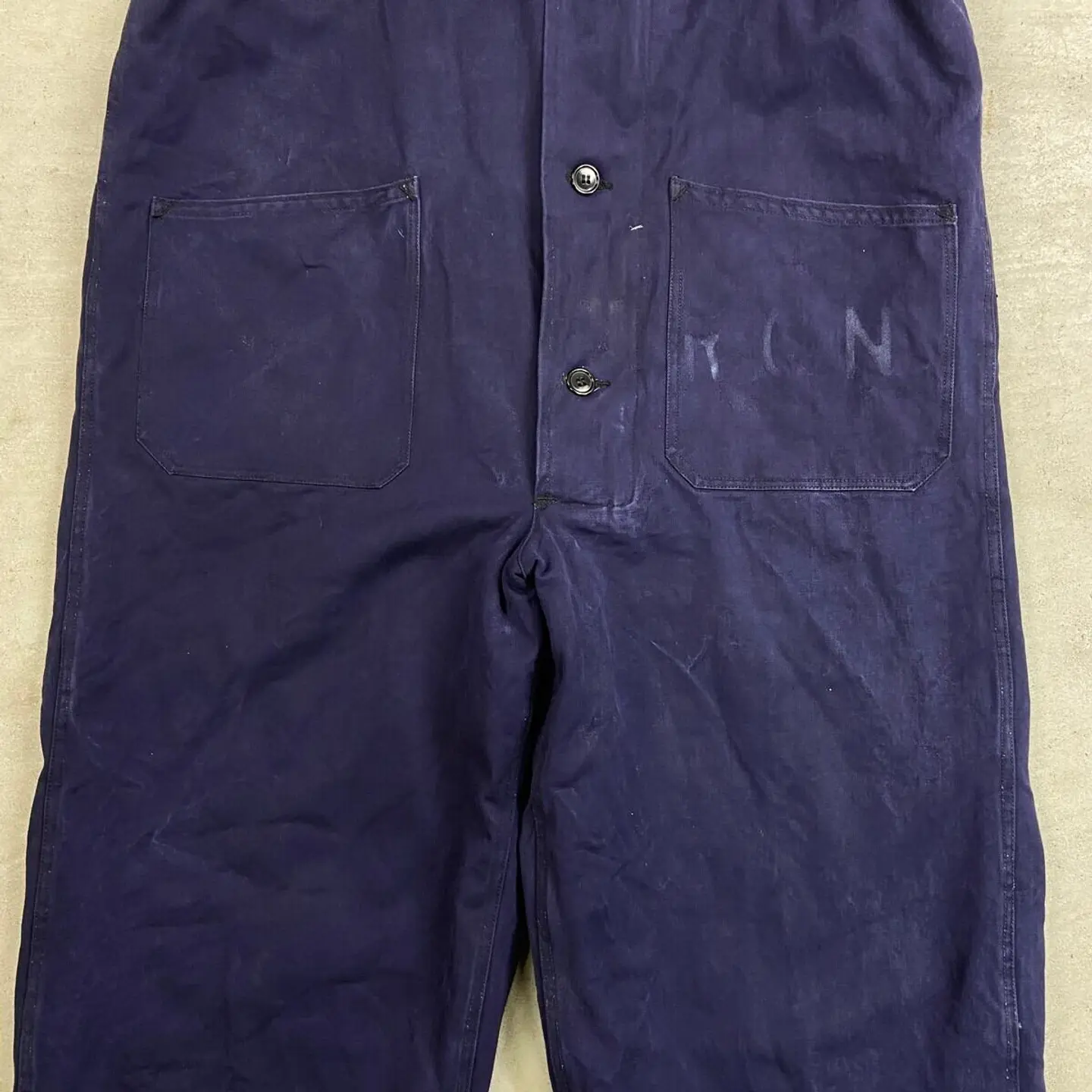 ■50年代 ROYAL CANADIAN NAVY カナダ軍 デッキパンツ メンズW40相当 古着 1951 50s VINTAGE ヴィンテージ ステンシル入り RCN 海軍 LIGHTNINGジッパー オーバーオール 紺色【ミリタリーパンツ】/ネイビー ◎こちらは希少なロイヤルカナディアンネイビーのデッキパンツになります。 ステンシルも残っており、グッドコンディションです。 市場にあまり出回らないレアアイテムになります。 【サイズ】表記 M(実寸W40相当) ※計測値をご確認ください。 ウエスト(平置き×2)…102 ワタリ幅…36 股上...57 股下…70 裾幅…24 【生産国】不明 【素材】不明 【状態】 あまり使用感もなく綺麗な状態ですので、まだまだ長くご愛用していただけます。 画像にてご確認ください。 【c260214028】 ※古着は洗濯、検品などのケアを行っております。(新品・デッドストックは洗濯していません。) ※モニターの発色により実物と異なる場合がございます。予めご了承ください。 ※ 海外直輸入USED品になります。