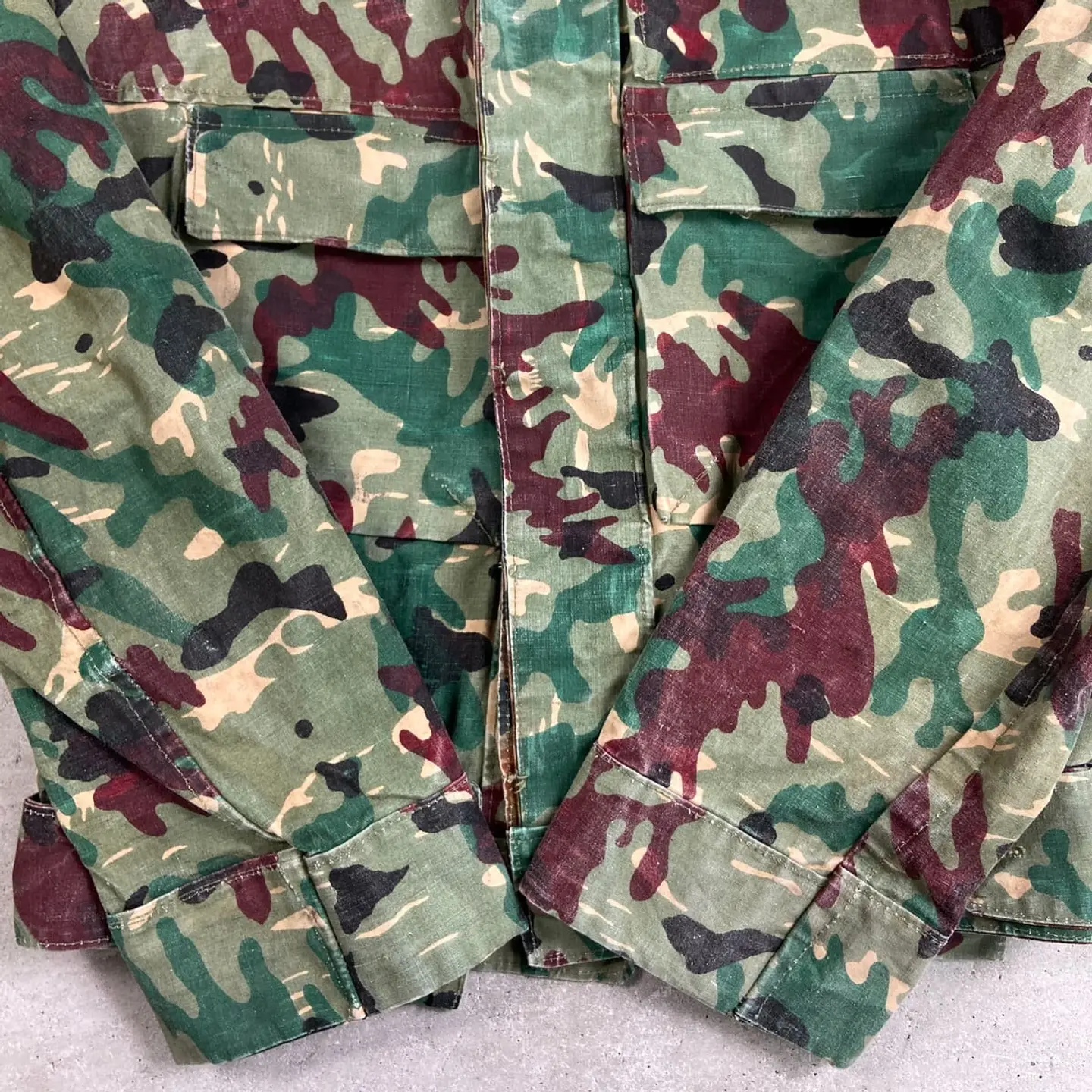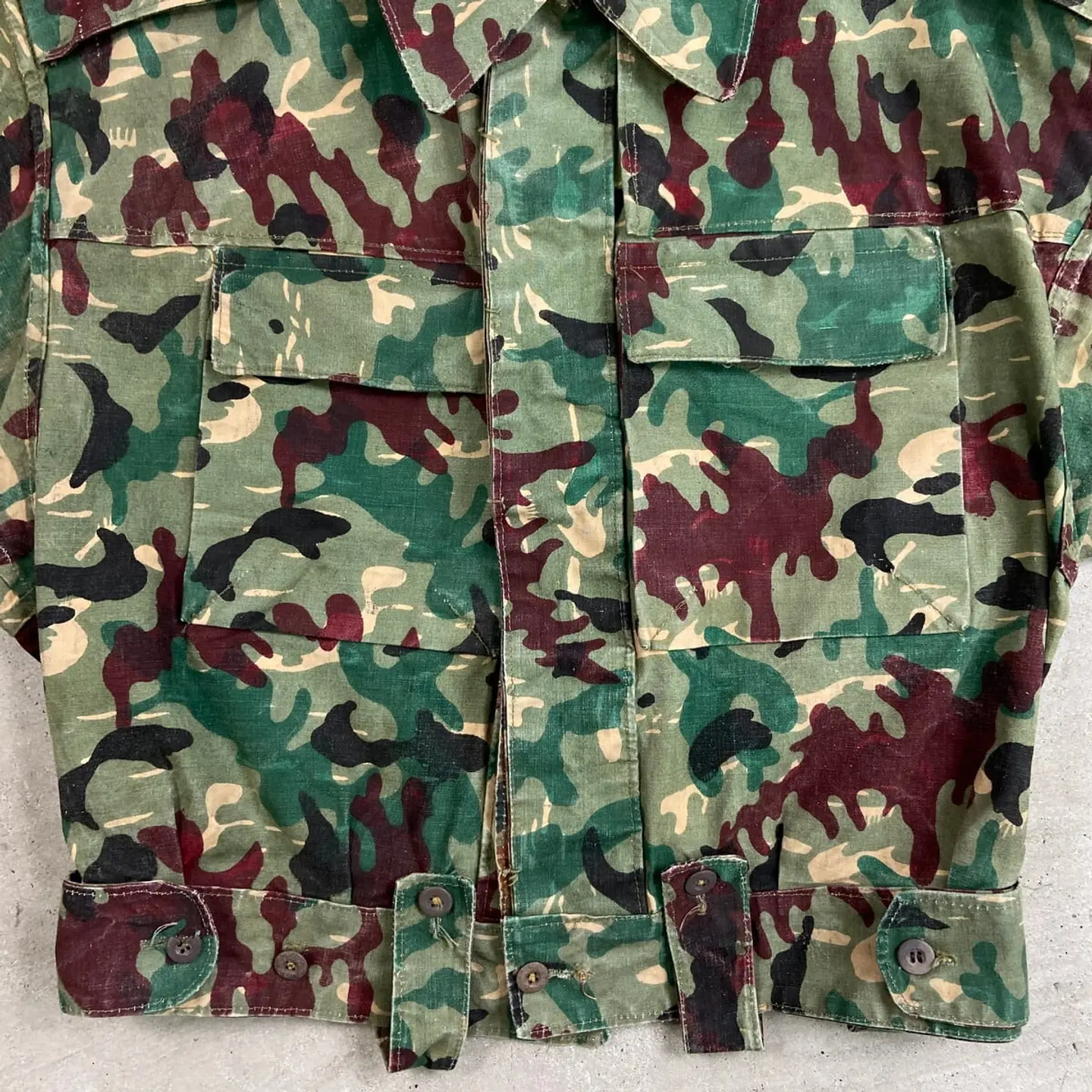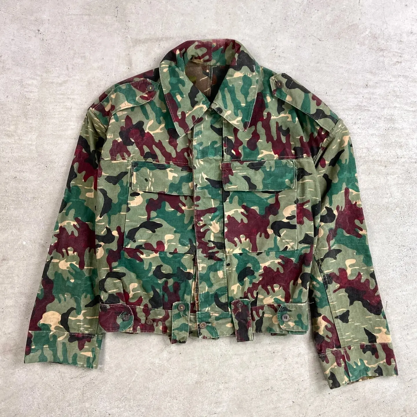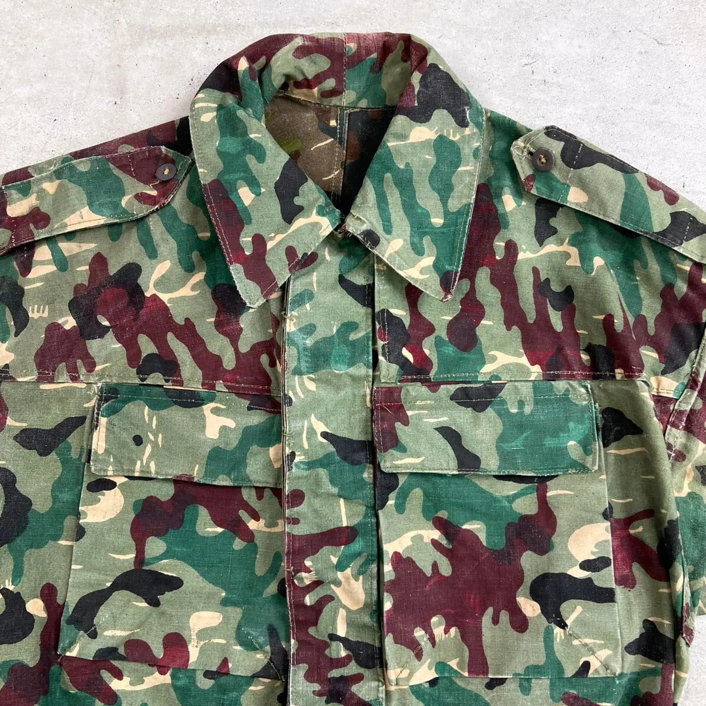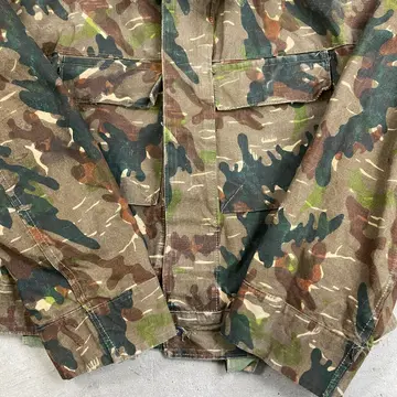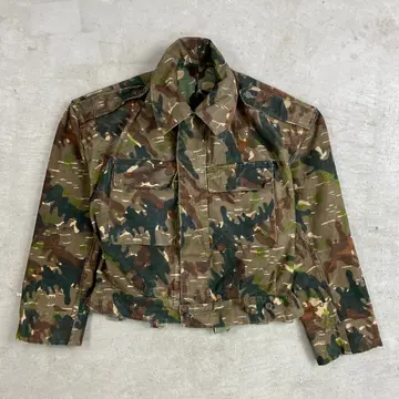 ■50~60年代 スペイン軍 アメーバカモ リバーシブル フィールドジャケット メンズS~M相当 古着 50s 60s ヴィンテージ VINTAGE ユーロミリタリー グリーン カーキグリーン ブラウン 緑 茶色【ミリタリージャケット】/マルチカラー ◎こちらは日本市場ではなかなか流通のない、スペイン軍の激レアジャケットになります。 しかもその中でもかなり希少なリバーシブルタイプになり、パンツもございますのでセットアップにてコレクション可能です。 おそらくスペイン陸軍の特殊作戦中隊 (COE) や空挺部隊 (パラカイディスタ)のエリート隊員のみが着用していたものかと思われます。 スペイン軍にミリタリーアイテムを支給していたE.C.I.VESTUARIO社製のものになります。 市場に出回らないスーパーレアアイテムになりますのでお探しだった方はお早めにどうぞ。 【ブランド】E.C.I.VESTUARIO社製 【サイズ】表記 5(着用感メンズS~M相当) ※計測値をご確認ください。 着丈…55.5 身幅…48.5 肩幅…50 袖丈…49.5 【生産国】不明 【素材】不明 おそらくコットンかと思われます。 【状態】 裾付近のボタン割れ、ブラウンカモの面の第1・2ボタンの欠損(リバーシブルになりますので、グリーンカモの面のボタンにて開閉可能)などはございますが、 その他目立った汚れやダメージ等は無く綺麗な状態でまだまだ長くご愛用していただけます。 画像にてご確認ください。 【c260214024】 ※古着は洗濯、検品などのケアを行っております。(新品・デッドストックは洗濯していません。) ※モニターの発色により実物と異なる場合がございます。予めご了承ください。 ※ 海外直輸入USED品になります。