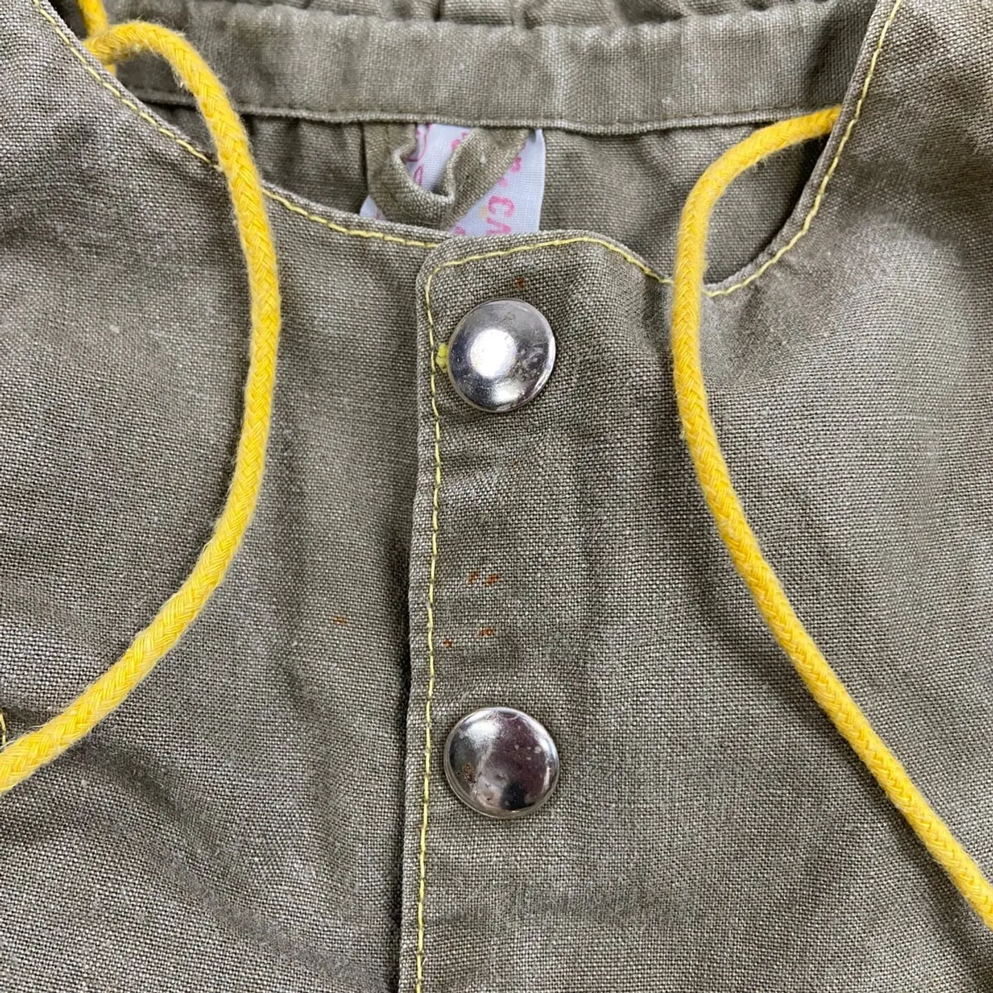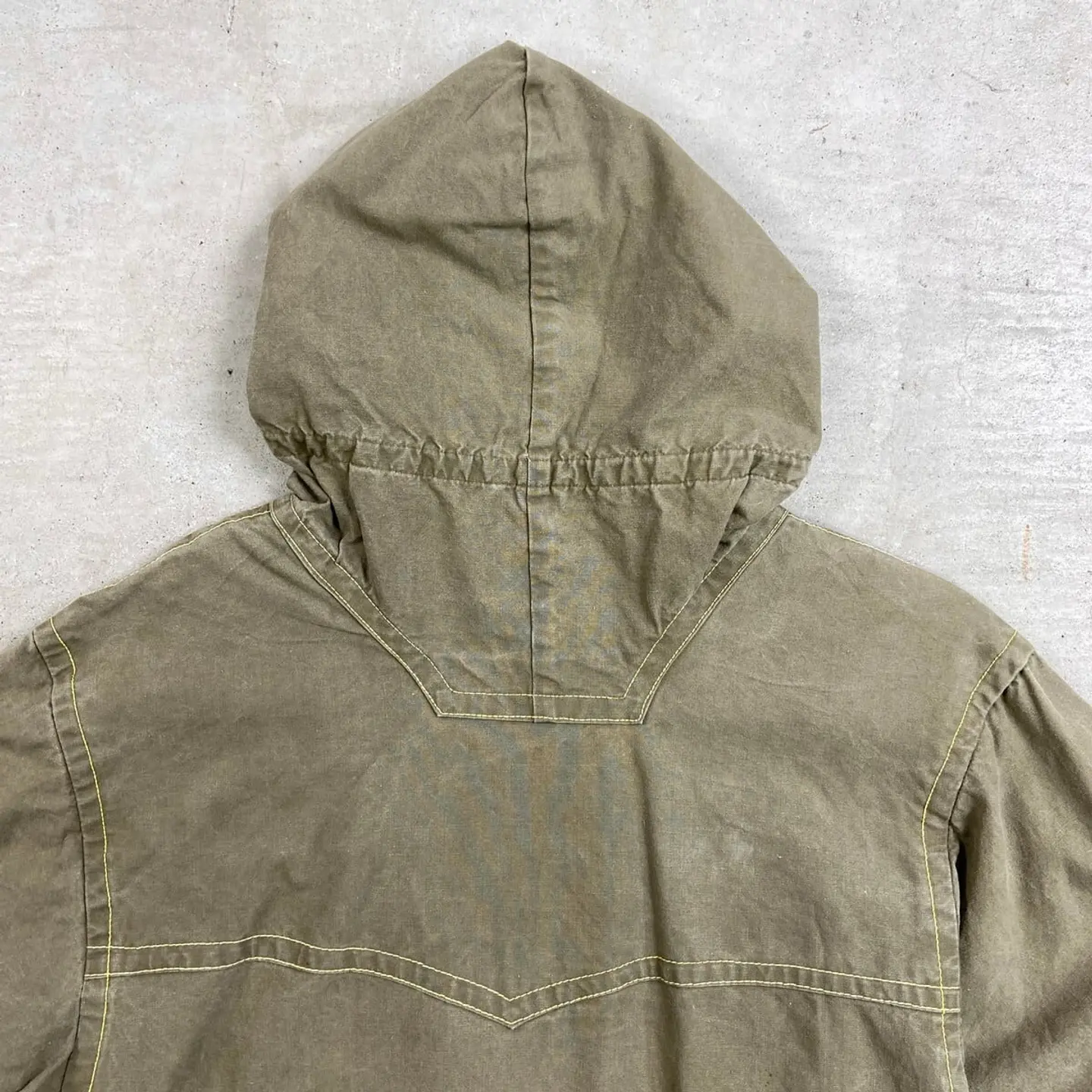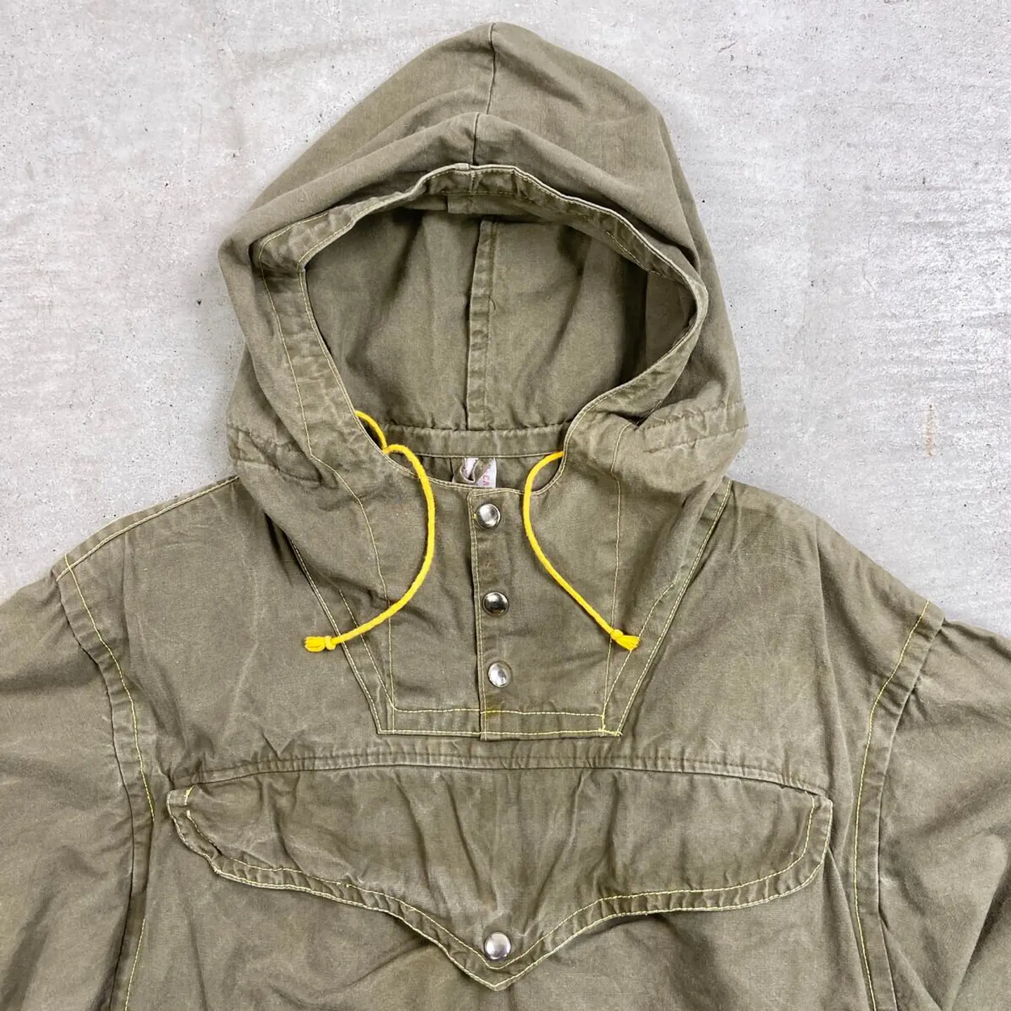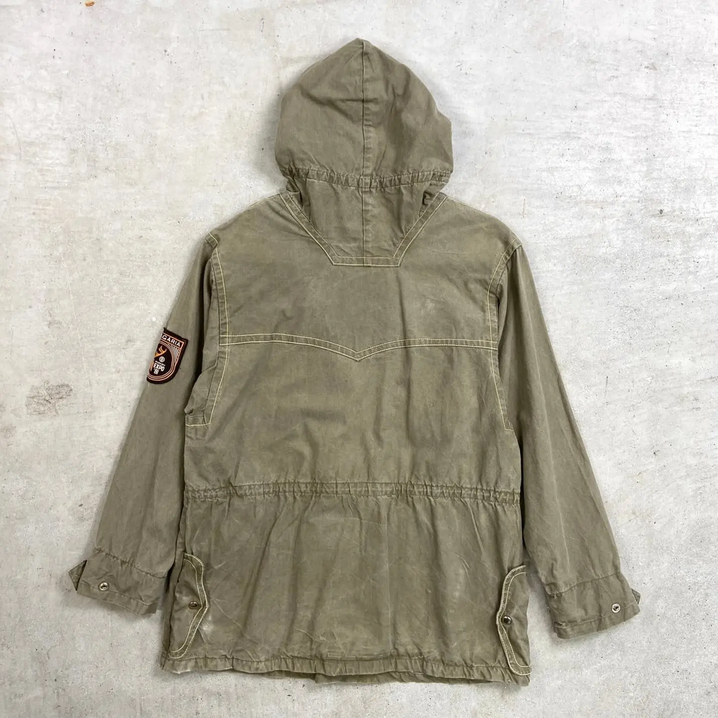 ■60年代 ブルガリア軍 コットンアノラックパーカー メンズM~L相当 古着 60s ヴィンテージ VINTAGE ユーロミリタリー スモックパーカー オリーブグリーン【ミリタリージャケット】/カーキグリーン ◎81年のWorld Hunting Exhibitionのパッチ付きですが、ボディは60年代頃のものかと思われます。 【サイズ】表記 182 96(着用感メンズM~L相当) ※計測値をご確認ください。 着丈…76.5 身幅…56 肩幅…50 袖丈…59.5 【生産国】不明 【素材】不明 おそらくコットンかと思われます。 【状態】 フロントに薄汚れやバックポケット左スナップの開閉不可など多少の使用感はございますが、 その他目立った汚れやダメージ等は無くまだまだ長くご愛用していただけます。 画像にてご確認ください。 【c260214023】 ※古着は洗濯、検品などのケアを行っております。(新品・デッドストックは洗濯していません。) ※モニターの発色により実物と異なる場合がございます。予めご了承ください。 ※ 海外直輸入USED品になります。
