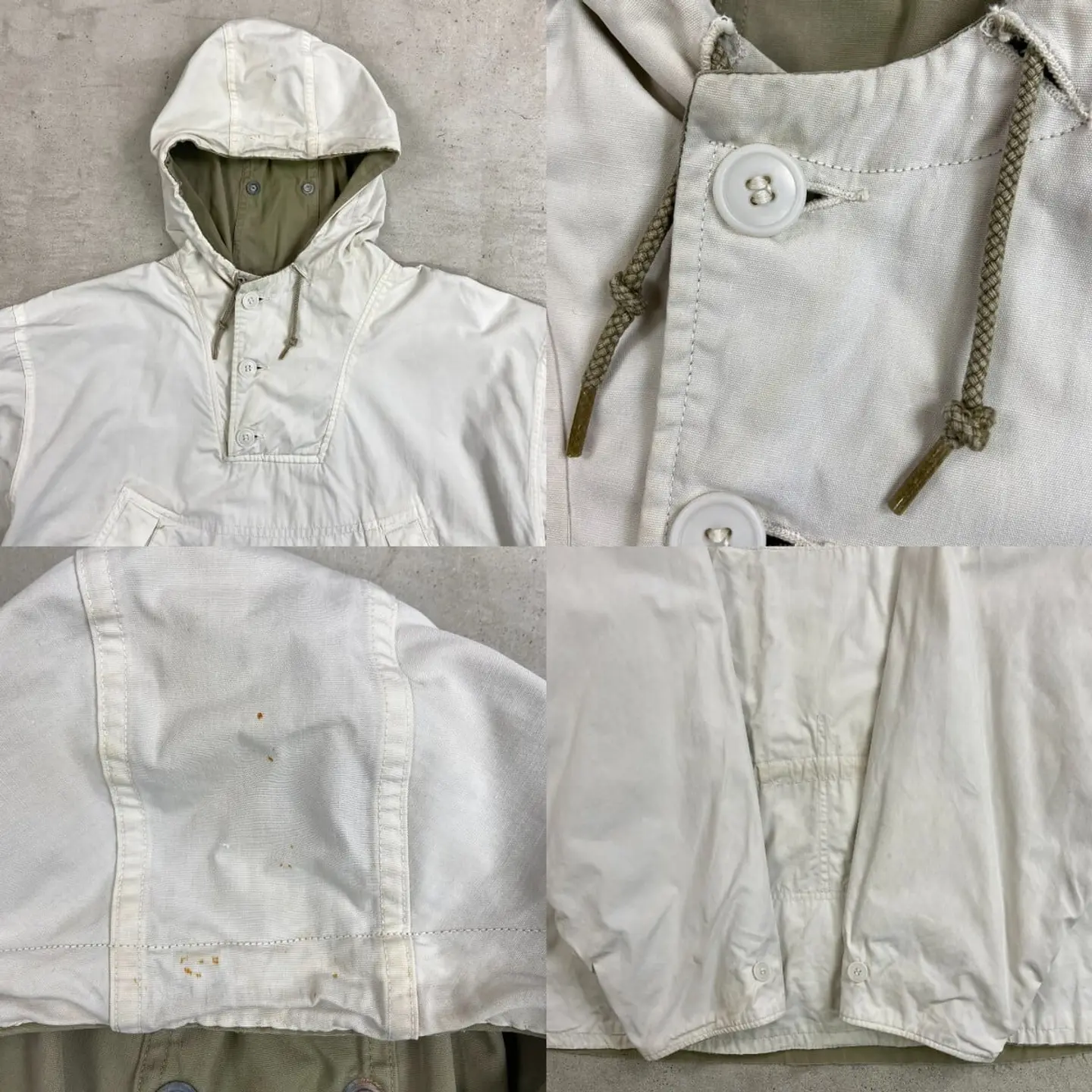 ■40年代 U.S.ARMY 米軍実品 M-43 山岳部隊 リバーシブル フィールドパーカー メンズXL相当 古着 大戦 WW2 40s ヴィンテージ VINTAGE スノーパーカー スキーパーカー ホワイト 白【ミリタリージャケット】/カーキグリーン 【サイズ】表記 不明(実寸メンズXL相当) ※計測値をご確認ください。 着丈…84.5 身幅…66 肩幅…59 袖丈…60.5 【生産国】不明 【素材】不明 おそらくコットンかと思われます。 【状態】 数か所に汚れ、裾のステッチ抜けなどリアルなヴィンテージミリタリーウェアならではな使用感のある雰囲気の良いコンディションです。 画像にてご確認ください。 【c260214020】 ※古着は洗濯、検品などのケアを行っております。(新品・デッドストックは洗濯していません。) ※モニターの発色により実物と異なる場合がございます。予めご了承ください。 ※ 海外直輸入USED品になります。