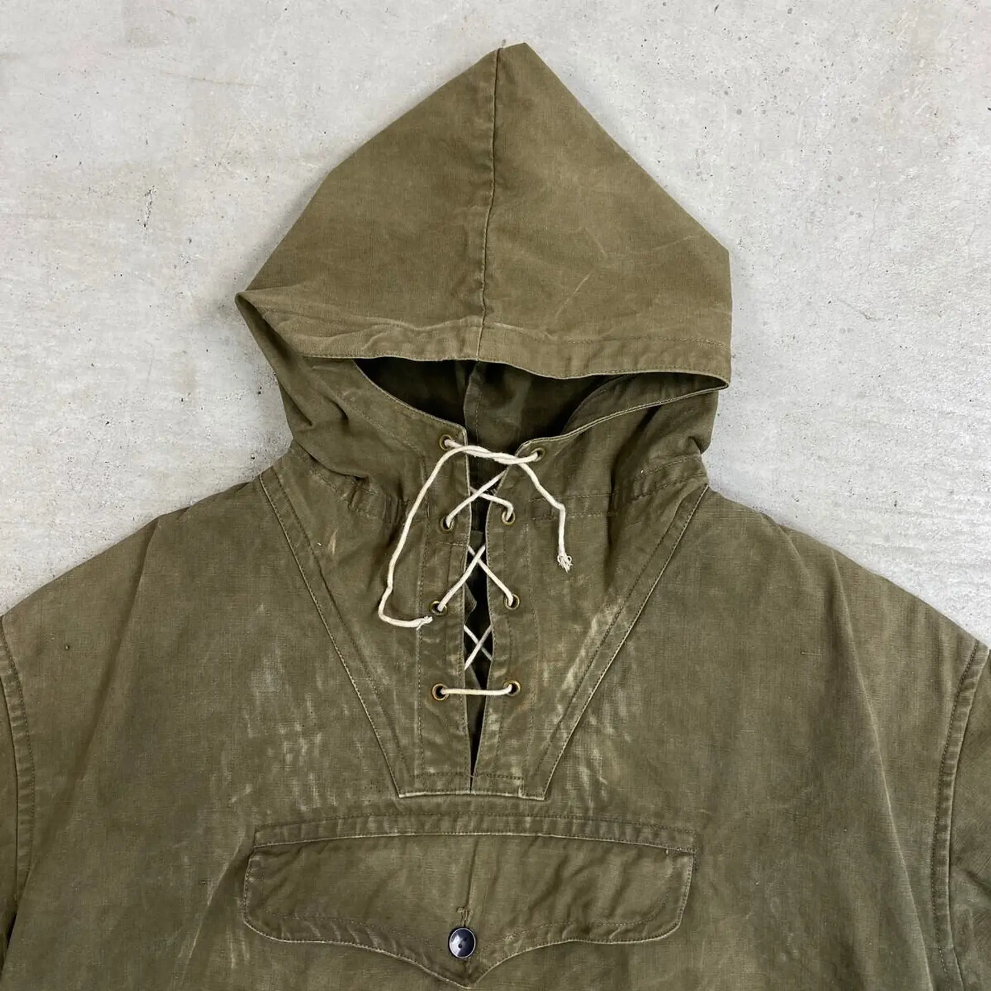 ■50年代 ブルガリア軍 コットンアノラックパーカー メンズL相当 古着 50s ヴィンテージ VINTAGE ユーロミリタリー スモックパーカー 山岳部隊 オリーブグリーン【ミリタリージャケット】/カーキグリーン 【サイズ】表記 48 Ⅳ(計測値メンズL相当) ※計測値をご確認ください。 着丈…68 身幅…59 肩幅…51 袖丈…61 【生産国】不明 【素材】不明 おそらくコットンかと思われます。 【状態】 全体的にアタリ、汚れ、ボタンチェンジなどリアルなヴィンテージミリタリーウェアならではな使用感のある雰囲気の良いコンディションです。 画像にてご確認ください。 【c260214018】 ※古着は洗濯、検品などのケアを行っております。(新品・デッドストックは洗濯していません。) ※モニターの発色により実物と異なる場合がございます。予めご了承ください。 ※ 海外直輸入USED品になります。