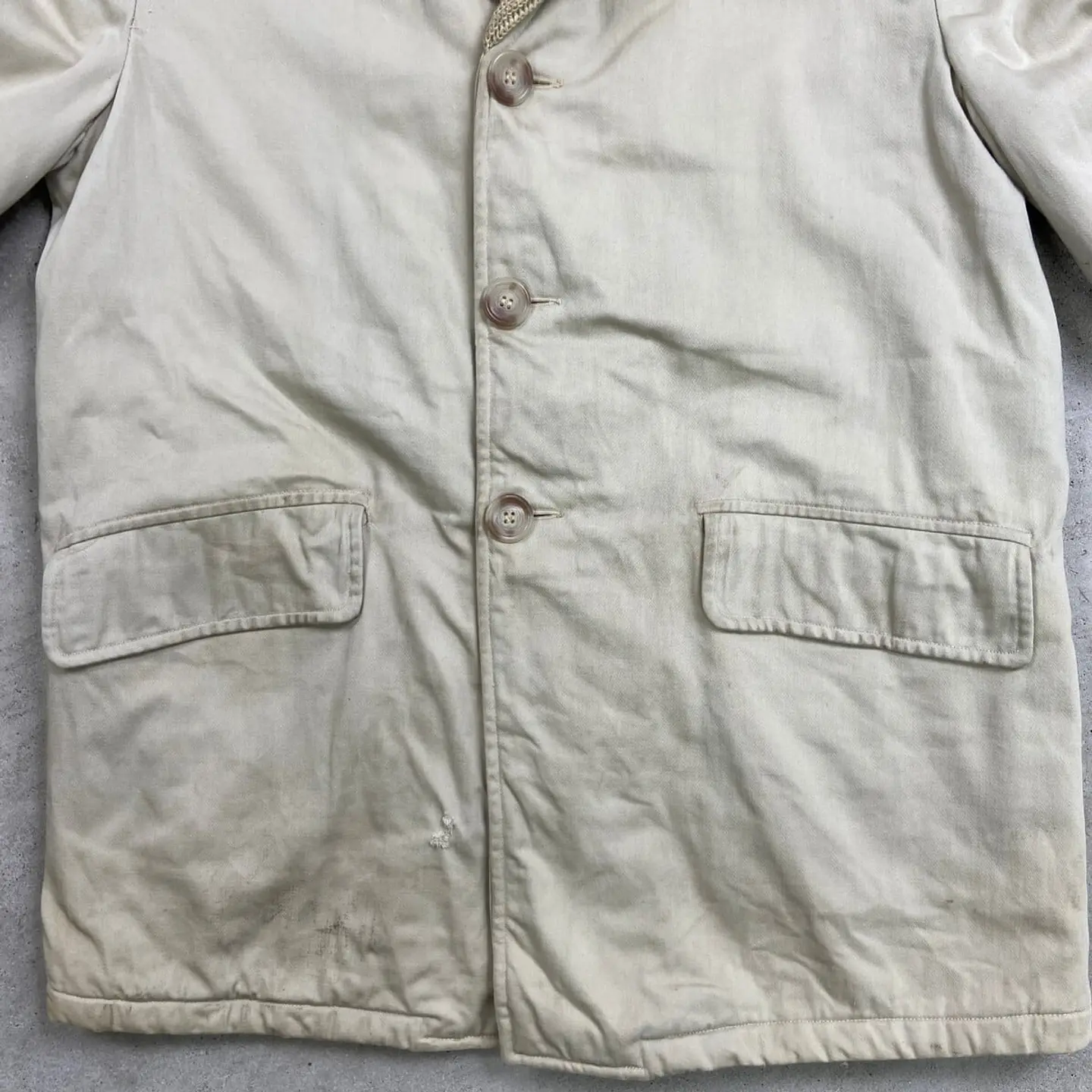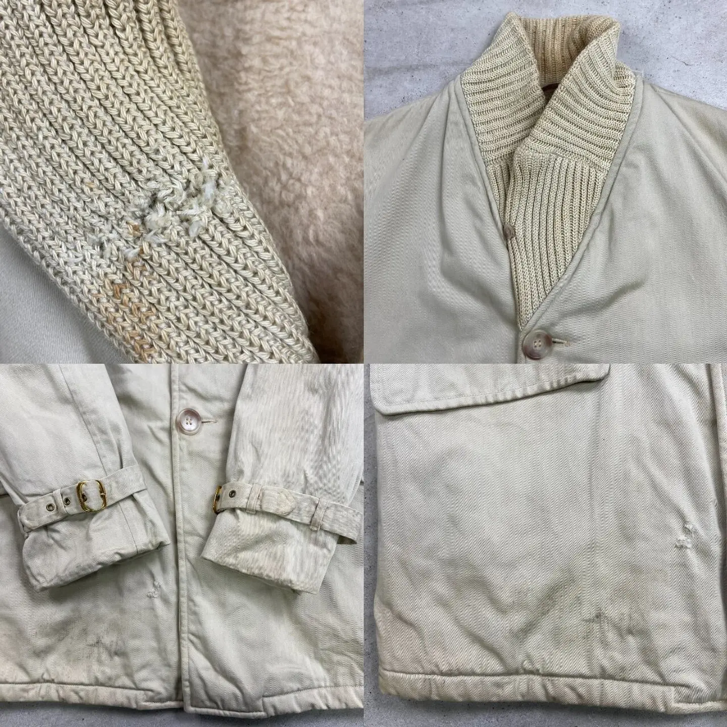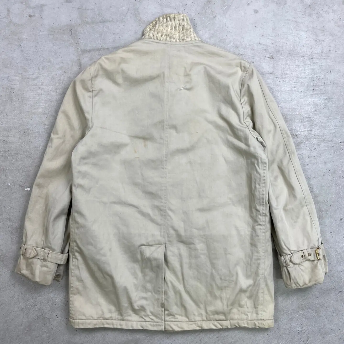 ■60年代 McGREGOR マクレガー Canadian Warm-up ファラオジャケット メンズM~L相当 古着 60s VINTAGE ヴィンテージ ファラオコート【ブルゾン・ジャケット】/ベージュ 【ブランド】McGREGOR マクレガー 【サイズ】表記 38(実寸メンズM~L相当) ※計測値をご確認ください。 着丈…81 身幅…60 肩幅…45.5 袖丈…62.5 【生産国】表記不明 【素材】表記不明(おそらくコットン) 【状態】 汚れ:袖・バックサイド中心付近・裾に薄汚れあり ダメージ:フロントのニット部分・右ポケット下 バックサイド上部にリペア跡痕あり 画像にてご確認ください 【c260207118】 ※古着は洗濯、検品などのケアを行っております。(新品・デッドストックは洗濯していません。) ※モニターの発色により実物と異なる場合がございます。予めご了承ください。 ※ 海外直輸入USED品になります。