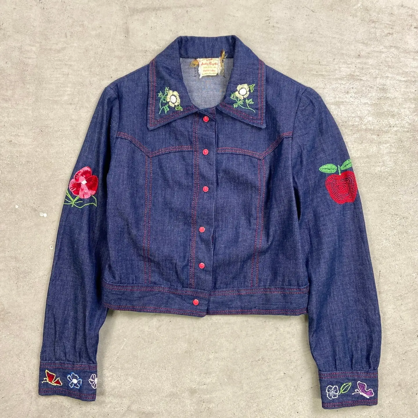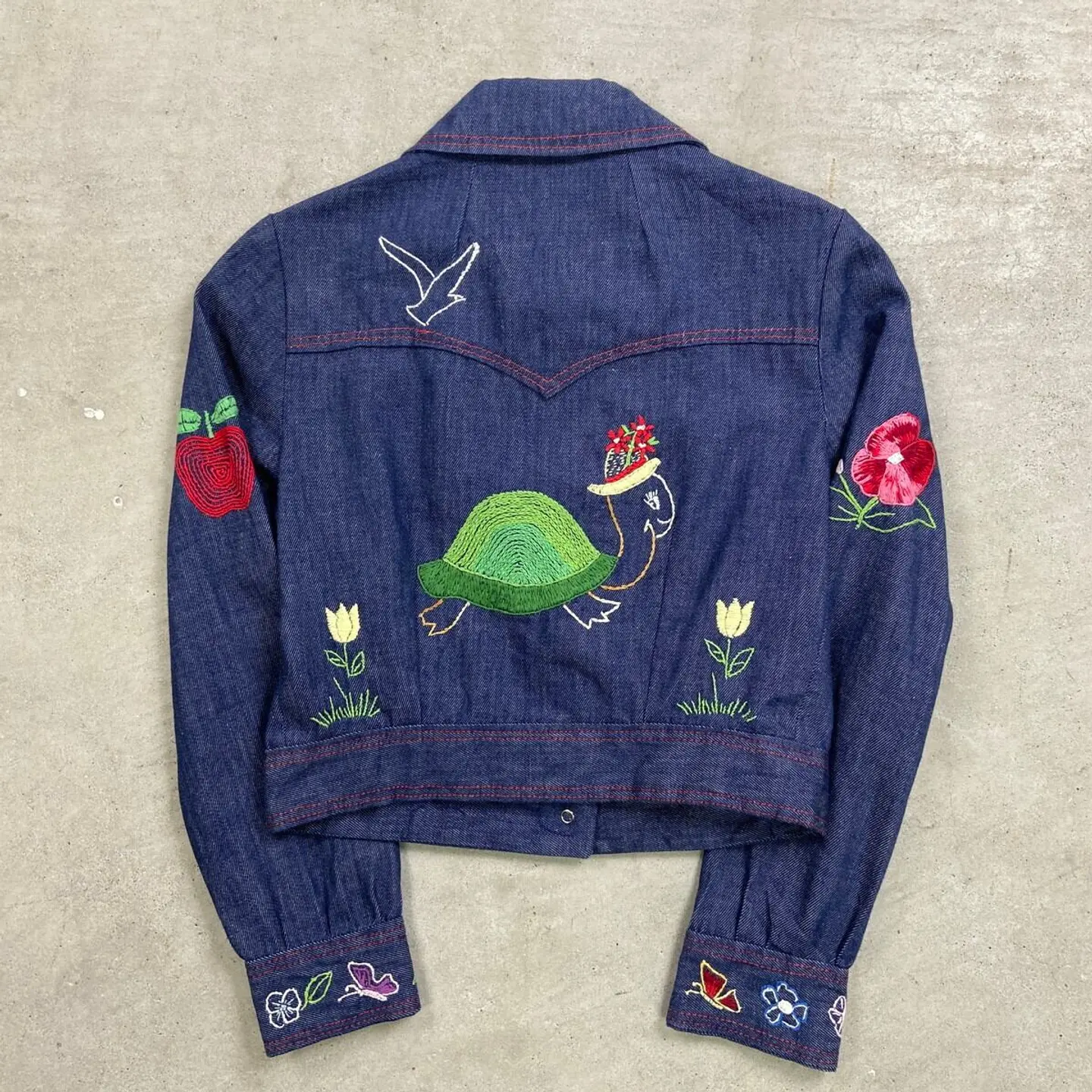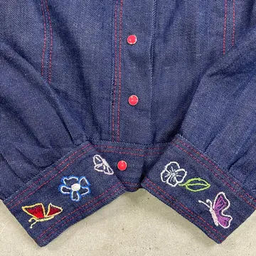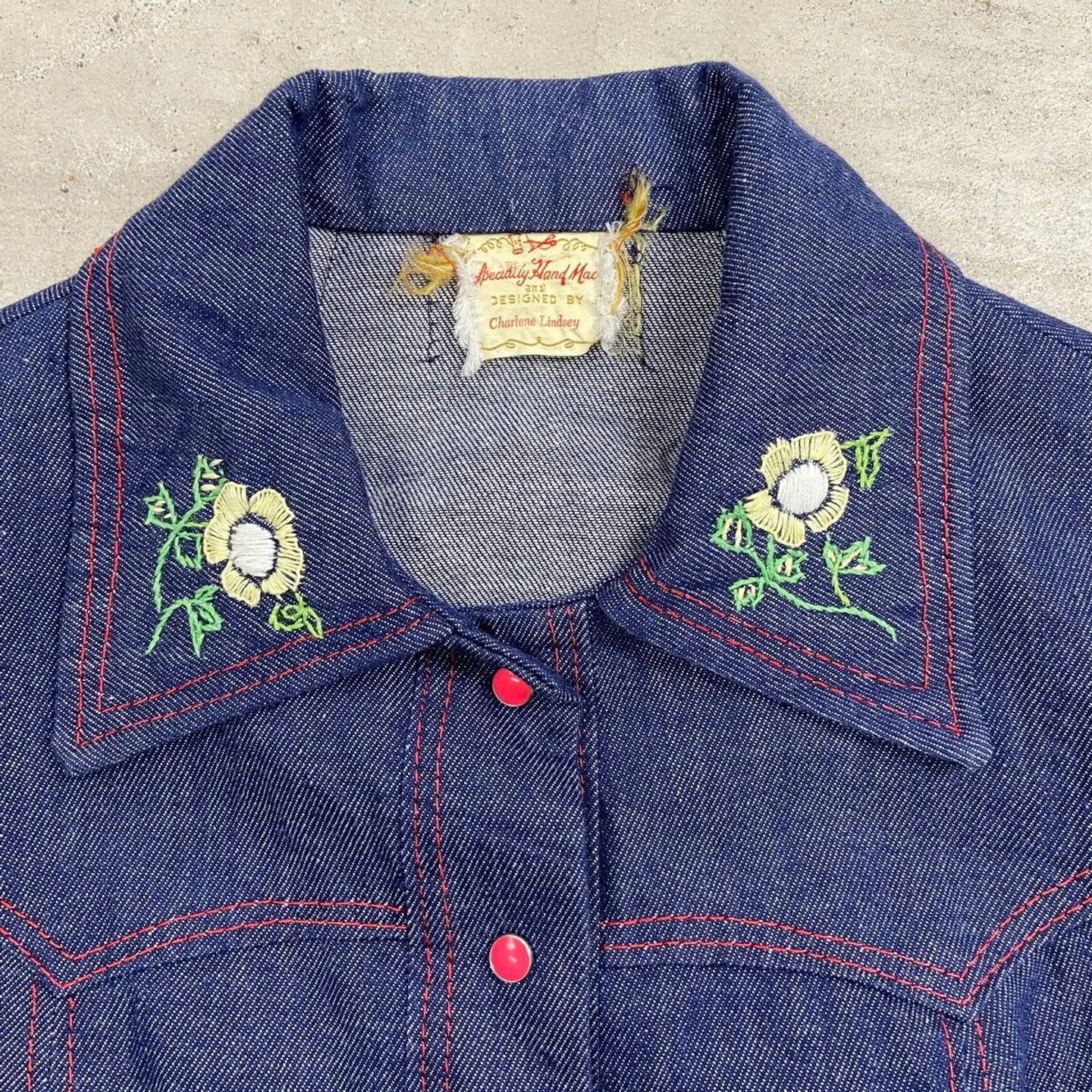 ■70年代 Charlene Lindsey 花柄刺繍 デニムジャケット レディースXS相当 古着 70s VINTAGE ヴィンテージ アメカジ スナップボタン フラワー カメ 青色【デニムジャケット】/ブルー 【ブランド】Charlene Lindsey 【サイズ】表記不明 (実寸レディースXS相当) ※計測値をご確認ください。 着丈…47 身幅…50.5 肩幅...48 袖丈…40.5 【生産国】不明 【素材】不明(おそらくコットンかと思われます) 【状態】全体的に使用感はありますが、目立ったダメージや汚れはございません。 画像にてご確認ください。 【c260207108】 ※古着は洗濯、検品などのケアを行っております。(新品・デッドストックは洗濯していません。)