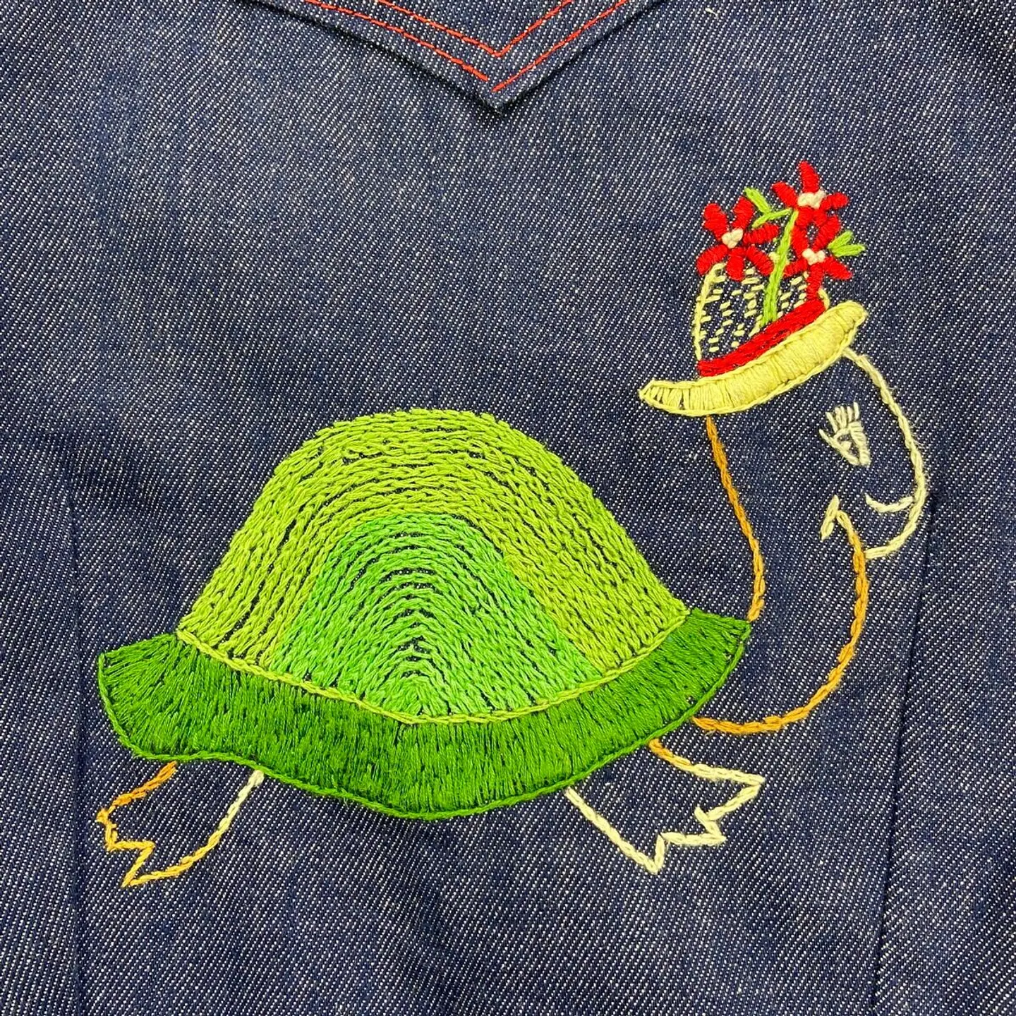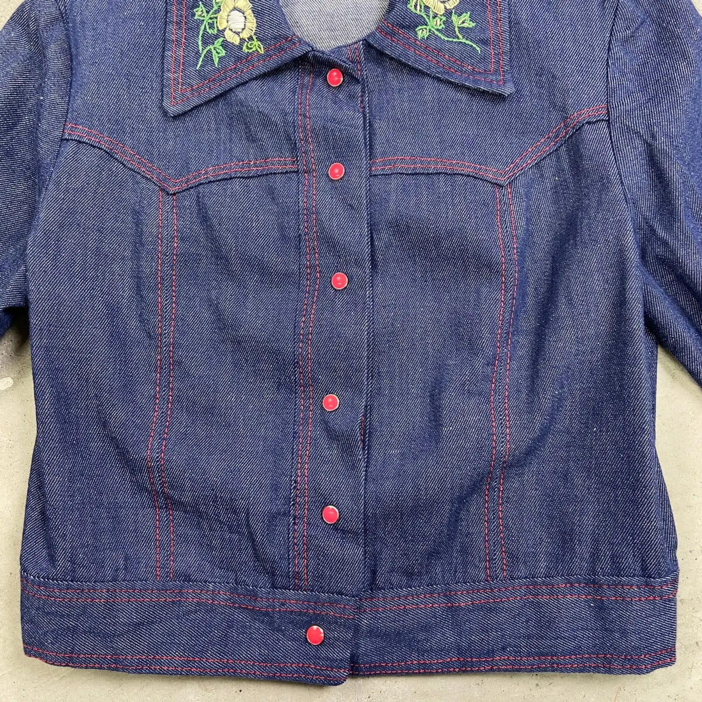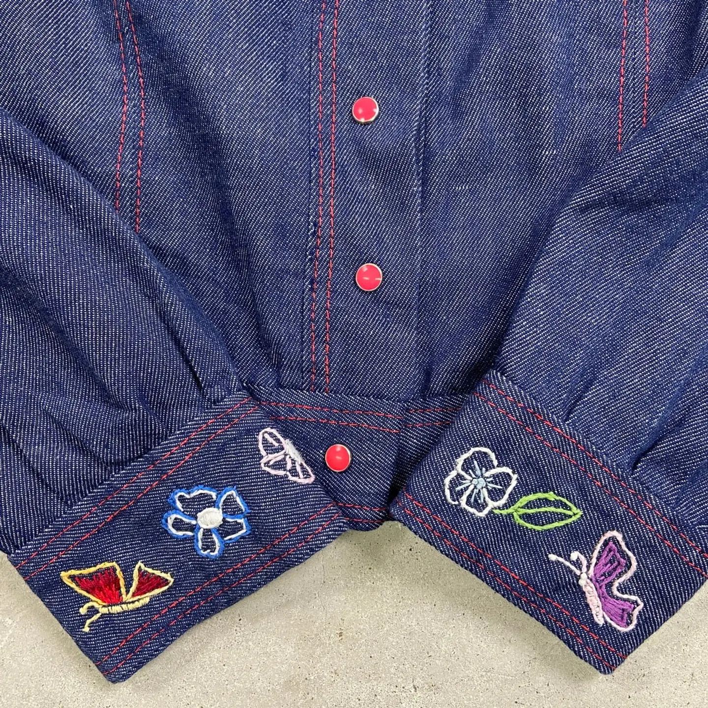 ■70年代 Charlene Lindsey 花柄刺繍 デニムジャケット レディースXS相当 古着 70s VINTAGE ヴィンテージ アメカジ スナップボタン フラワー カメ 青色【デニムジャケット】/ブルー 【ブランド】Charlene Lindsey 【サイズ】表記不明 (実寸レディースXS相当) ※計測値をご確認ください。 着丈…47 身幅…50.5 肩幅...48 袖丈…40.5 【生産国】不明 【素材】不明(おそらくコットンかと思われます) 【状態】全体的に使用感はありますが、目立ったダメージや汚れはございません。 画像にてご確認ください。 【c260207108】 ※古着は洗濯、検品などのケアを行っております。(新品・デッドストックは洗濯していません。)