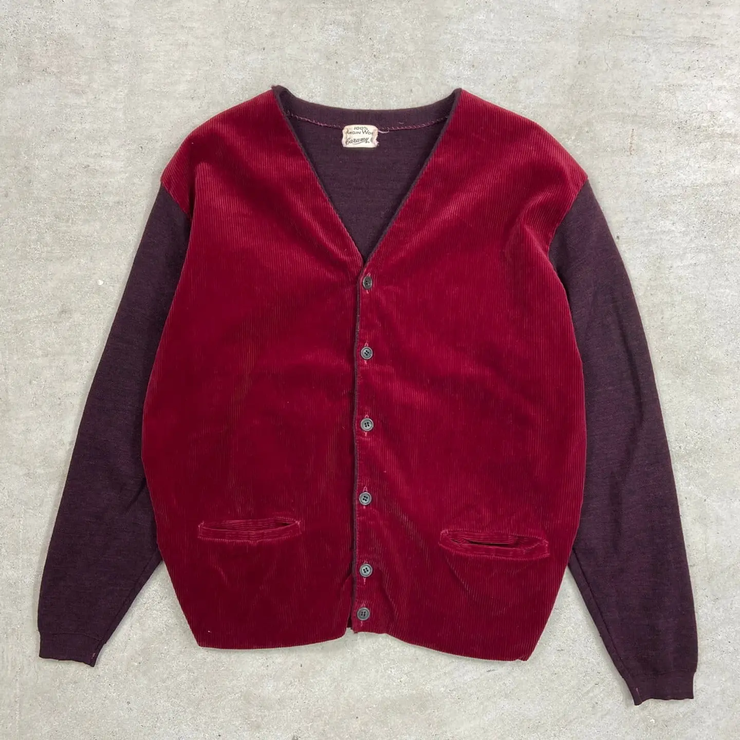 ■60年代 コーデュロイ×ウールニットカーディガン メンズM 古着 60s ヴィンテージ VINTAGE ボルドー バーガンディ【ニットセーター】/ワインレッド 【サイズ】表記 M ※計測値をご確認ください。 着丈…52 身幅…50 肩幅…47 袖丈…55 【生産国】不明 【素材】ヴァージンウール100% 【状態】 多少の使用感はございますが、 目立った汚れやダメージ等は無くまだまだ長くご愛用していただけます。 画像にてご確認ください。 【c260207017】 ※古着は洗濯、検品などのケアを行っております。(新品・デッドストックは洗濯していません。) ※モニターの発色により実物と異なる場合がございます。予めご了承ください。 ※ 海外直輸入USED品になります。