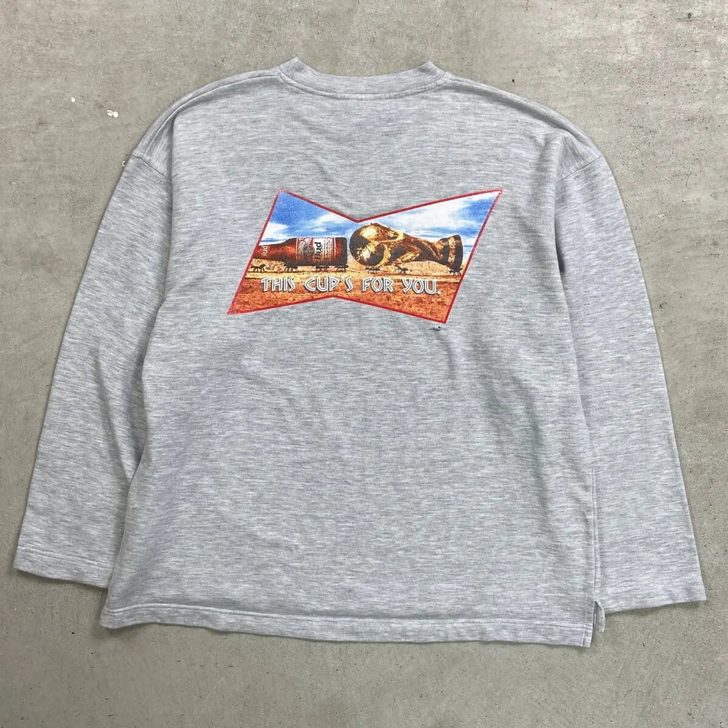 ■90年代 BUDWEISER バドワイザー 企業ロゴプリント スウェットシャツ メンズXL相当 古着 90s VINTAGE ヴィンテージ アメカジ KING OF BEERS ビール バックプリント 裏起毛 灰色【スウェット】/グレー 【ブランド】KAILUA 【サイズ】表記不明 (実寸メンズXL相当) ※計測値をご確認ください。 着丈…73.5 身幅…64.5 肩幅…65.5 袖丈…61 【生産国】不明 【素材】コットン70%、ポリエステル30% 【状態】フロントのプリント付近に薄いシミ汚れがあります。 ダメージはございません。 画像にてご確認ください。 【c260127108】 ※古着は洗濯、検品などのケアを行っております。(新品・デッドストックは洗濯していません。) ※モニターの発色により実物と異なる場合がございます。予めご了承ください。 ※ 海外直輸入USED品になります。