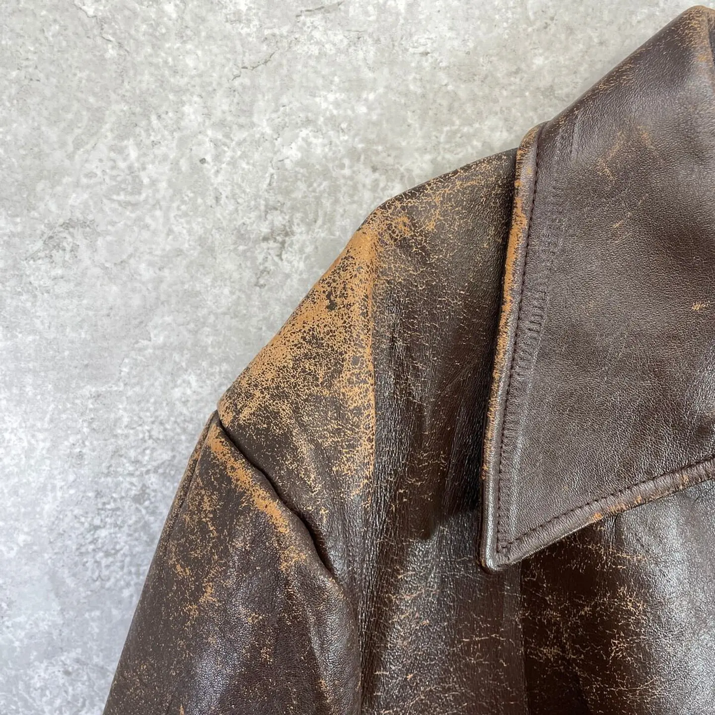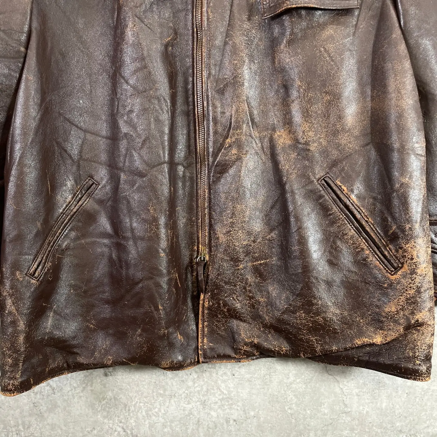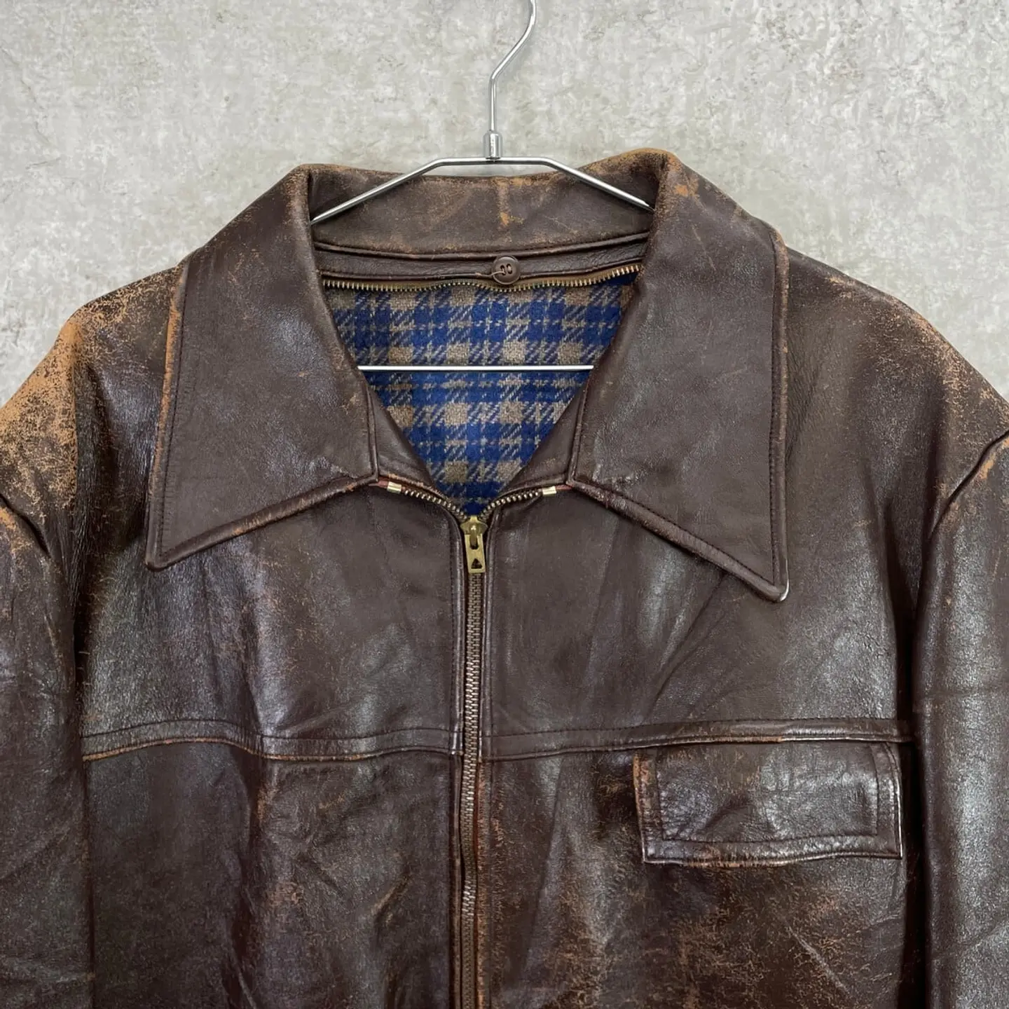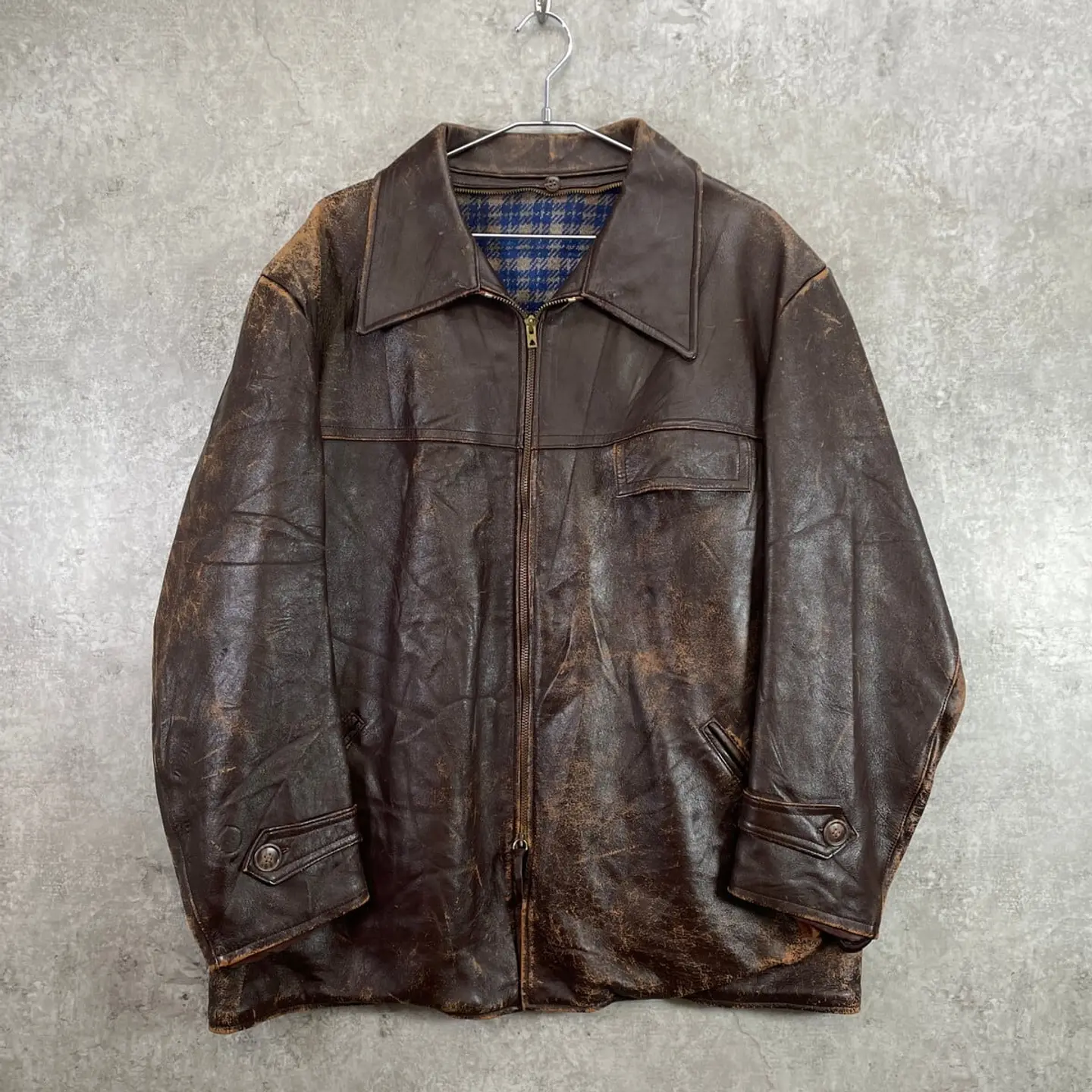 ■50~60年代 フランス レザー カーコート メンズXL相当 古着 50s 60s VINTAGE ヴィンテージ ハーフコート ECLAIRジッパー ユーロ 茶色【レザージャケット】/ブラウン 【サイズ】表記 不明(着用感メンズXL相当) 計測値をご確認ください。 着丈…76 身幅…65 肩幅…55 袖丈…59 【素材】本革 【生産国】不明 【状態】全体的に擦れ、裏地に薄汚れ、襟パーツ用ボタンの割れなど使用感がございます。 着用に支障のあるダメージ等は無くまだまだ長く愛用していただけます。 ライナーと襟パーツが欠損しております。 画像にてご確認ください。 【c260123005】 ※古着は洗濯、検品などのケアを行っております。(新品・デッドストックは洗濯していません。) ※モニターの発色により実物と異なる場合がございます。予めご了承ください。 ※ 海外直輸入USED品になります。