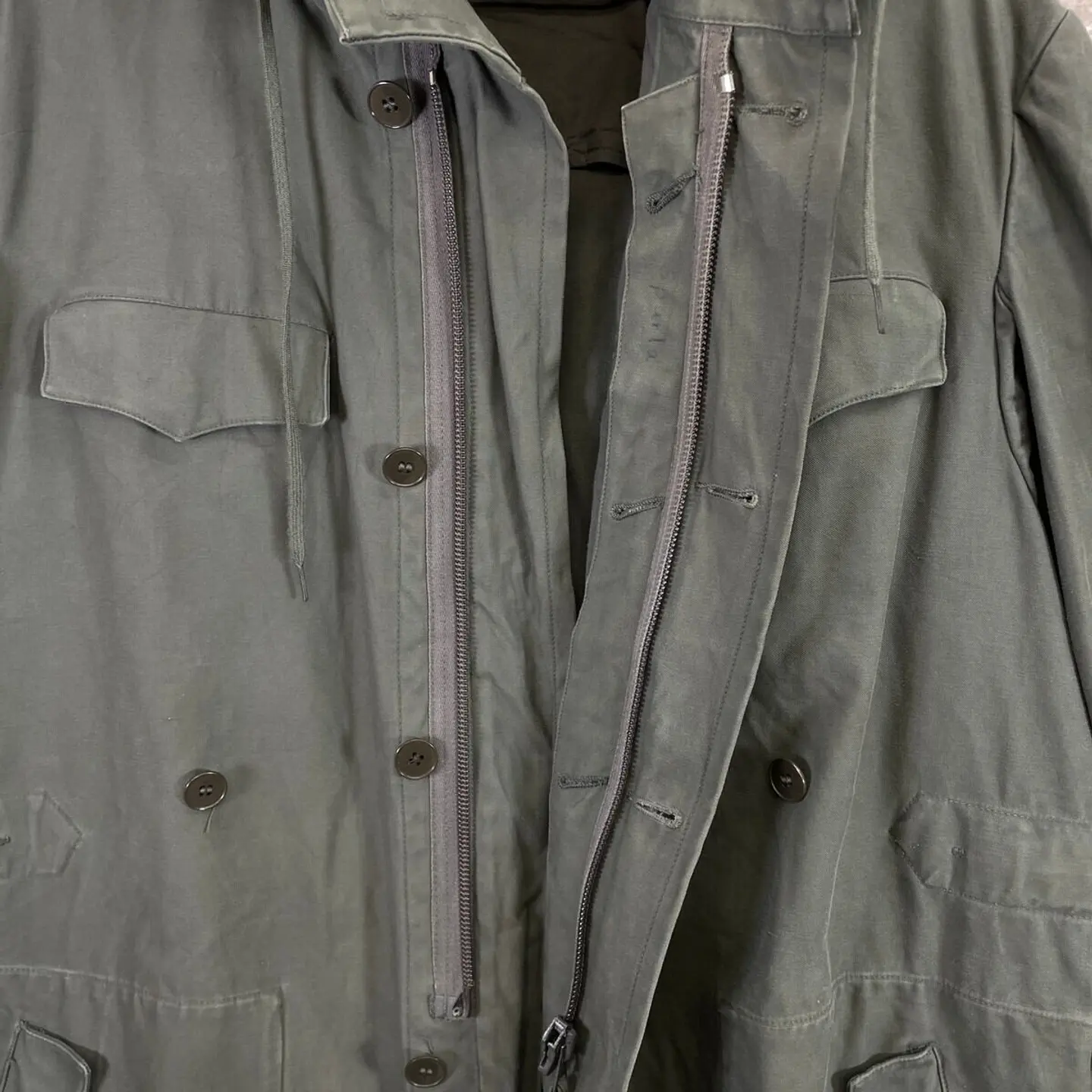■74年納品 ドイツ軍実品 フィールドパーカー モッズコート メンズXL相当 古着 70s 70年代 VINTAGE ヴィンテージ ユーロミリタリー オリーブグリーン【ミリタリージャケット】/カーキグリーン 【サイズ】表記 46(着用感メンズXL相当) ※計測値をご確認ください。 着丈…84 身幅…62 肩幅…50.5 袖丈…63.5 【生産国】ドイツ製 【素材】不明 おそらくコットンかと思われます。 【状態】 ライナー欠品しております。 右袖口ボタン欠けや擦れなどの使用感ございますが、その他大きなダメージなくまだまだ愛用していただけます。 画像にてご確認ください。 【c260123001】 ※古着は洗濯、検品などのケアを行っております。(新品・デッドストックは洗濯していません。) ※モニターの発色により実物と異なる場合がございます。予めご了承ください。 ※ 海外直輸入USED品になります。