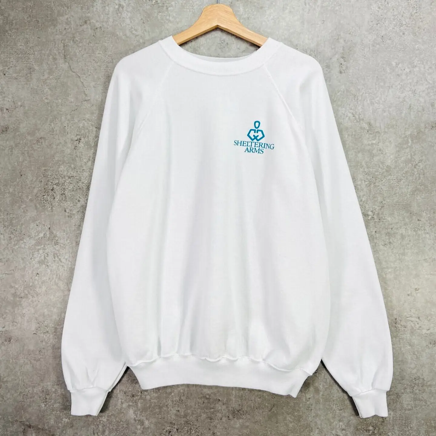 ■80年代 SHELTERING ARMS 企業ロゴプリント メンズL相当 古着 80s VINTAGE ヴィンテージ ラグランスリーブ トレーナー 白色【スウェット】/ホワイト 【ブランド】HANES 【サイズ】表記 XL(実寸メンズL相当) ※計測値をご確認ください。 着丈…67.5 身幅…60.5 裄丈…83.5 袖丈(脇下計測)…60.5 【生産国】ジャマイカ製 【素材】コットン50%、ポリエステル50% 【状態】全体的に使用感による若干の毛羽立ちがございます。 バックサイド右袖に薄汚れがあります。(写真8) 画像にてご確認ください。 【c260117104】 ※古着は洗濯、検品などのケアを行っております。(新品・デッドストックは洗濯していません。) ※モニターの発色により実物と異なる場合がございます。予めご了承ください。 ※ 海外直輸入USED品になります。