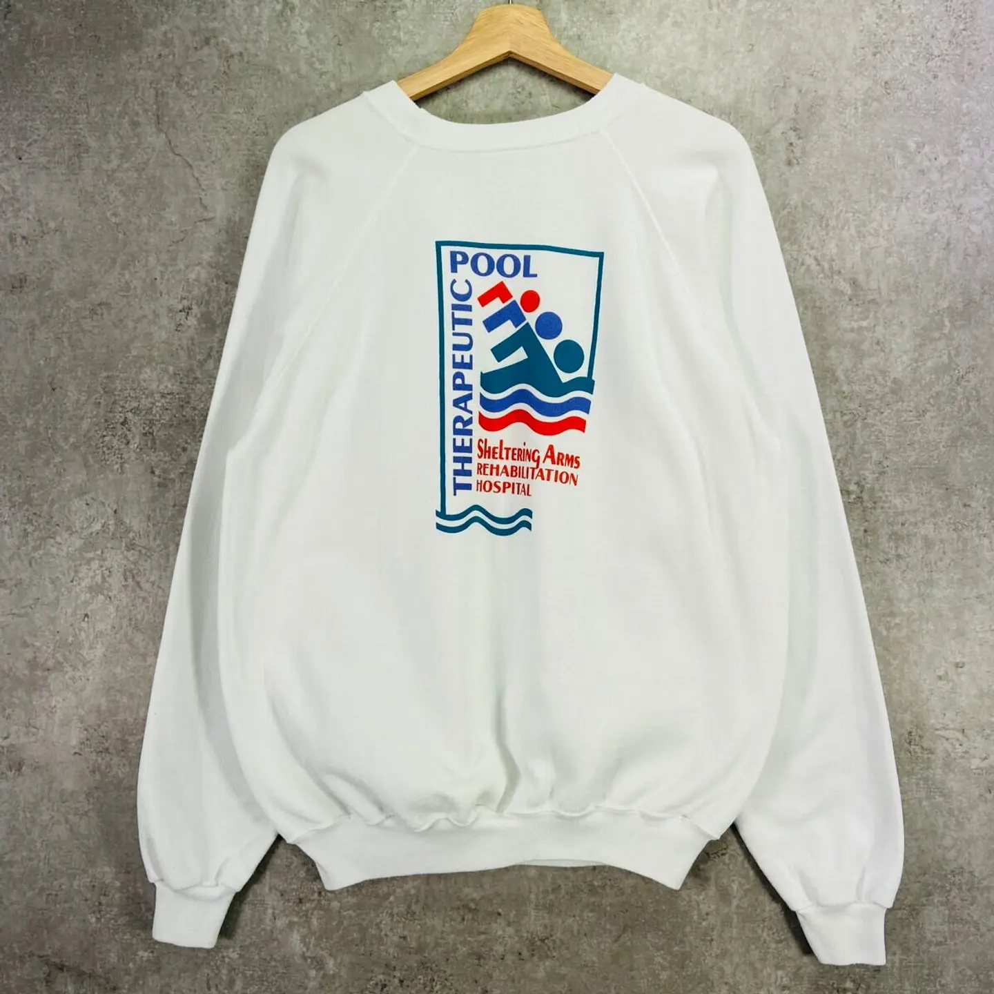 90年代 Oklahoma Blood Institute ワンポイント企業ロゴプリント スウェットシャツ メンズXL 古着 90s VINTAGE ヴィンテージ オクラホマ 袖プリント トレーナー 紺色