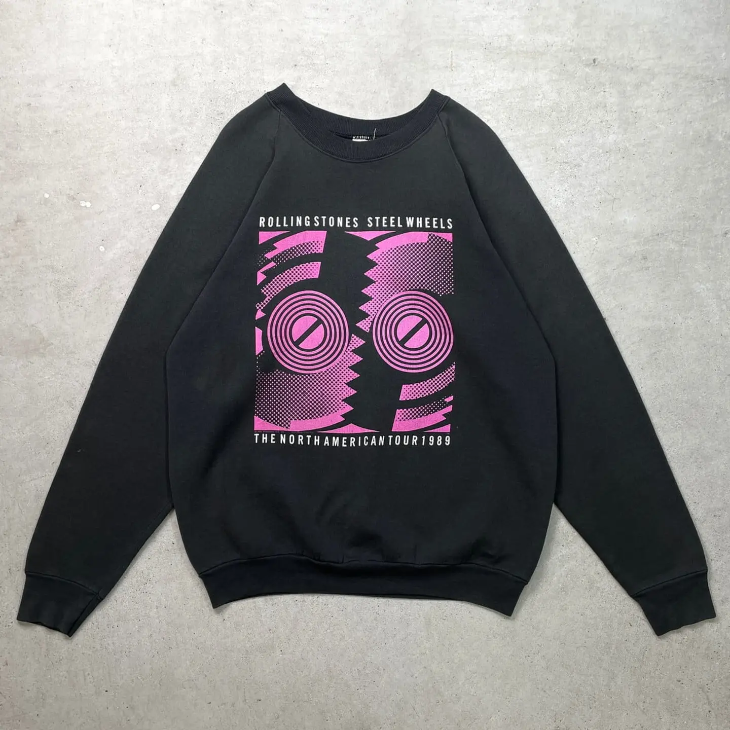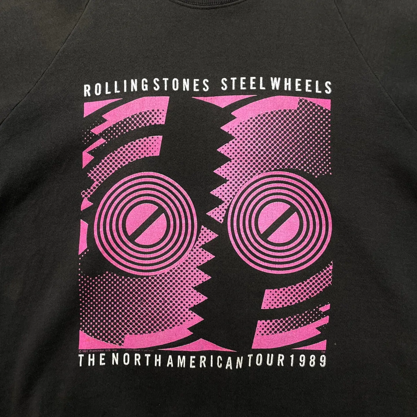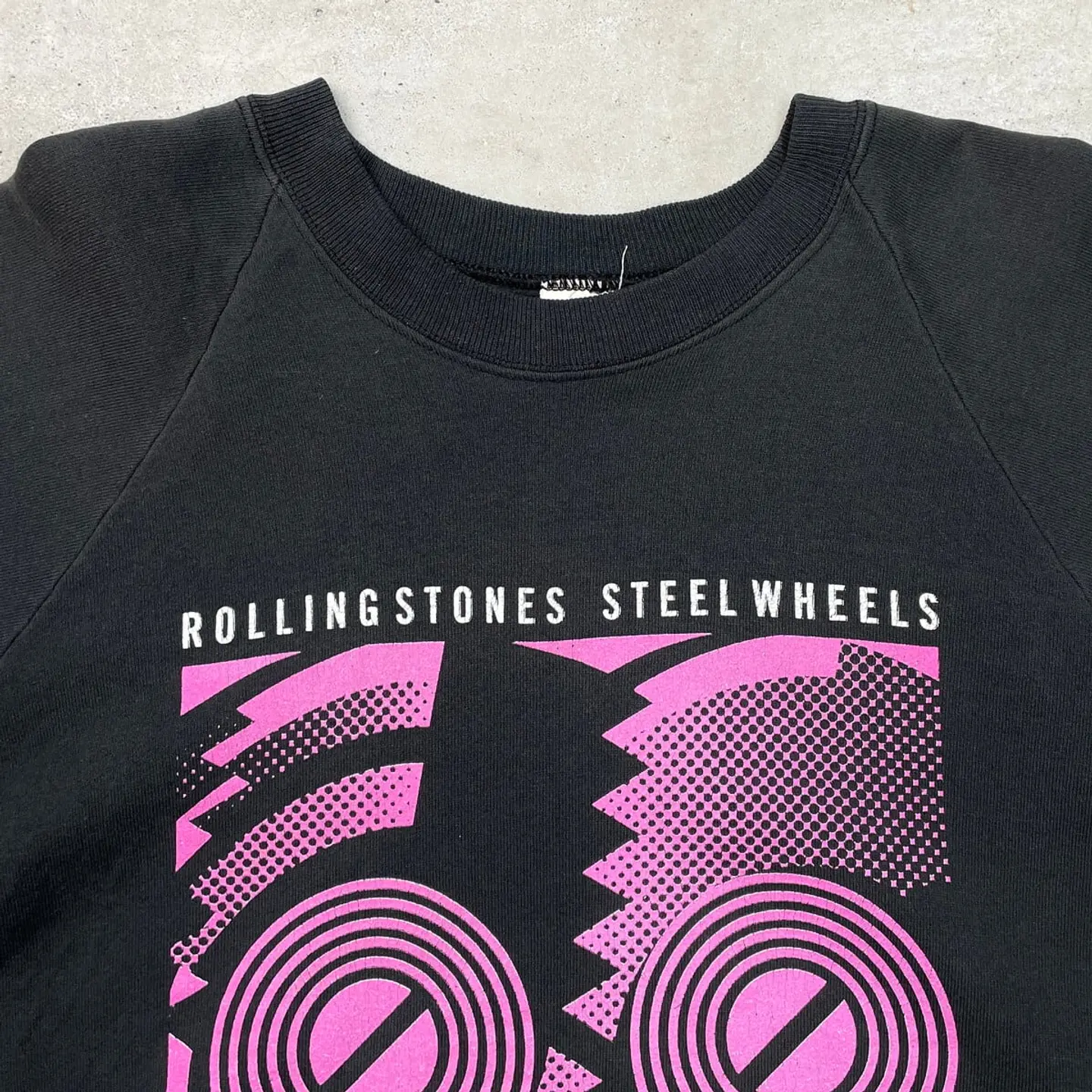 ■80年代 USA製 ROLLING STONES STEEL WHEELS ローリングストーンズ バンドT バンT スウェットシャツ メンズL 古着 80s VINTAGE ヴィンテージ アメカジ 音モノ THE NORTH AMERICAN TOUR 1989 ラグランスリーブ トレーナー 黒色【スウェット】/ブラック ◎1989年のコピーライト入り ROLLING STONES STEEL WHEELS、 1989年のノースアメリカンツアー時のプリントスウェット。 【ブランド】FRUIT OF THE LOOM 【サイズ】表記 XL (着用感メンズL相当) ※計測値をご確認ください。 着丈…67 身幅…59 裄丈…81.5 袖丈(脇下計測)…61 【生産国】USA製 【素材】コットン50%、ポリエステル50% 【状態】袖に汚れ、袖口に若干のほつれがございます。 フロント下部に穴は空いていませんが、ダメージがあります。 画像にてご確認ください。 【c260102114】 ※古着は洗濯、検品などのケアを行っております。(新品・デッドストックは洗濯していません。) ※モニターの発色により実物と異なる場合がございます。予めご了承ください。 ※ 海外直輸入USED品になります。