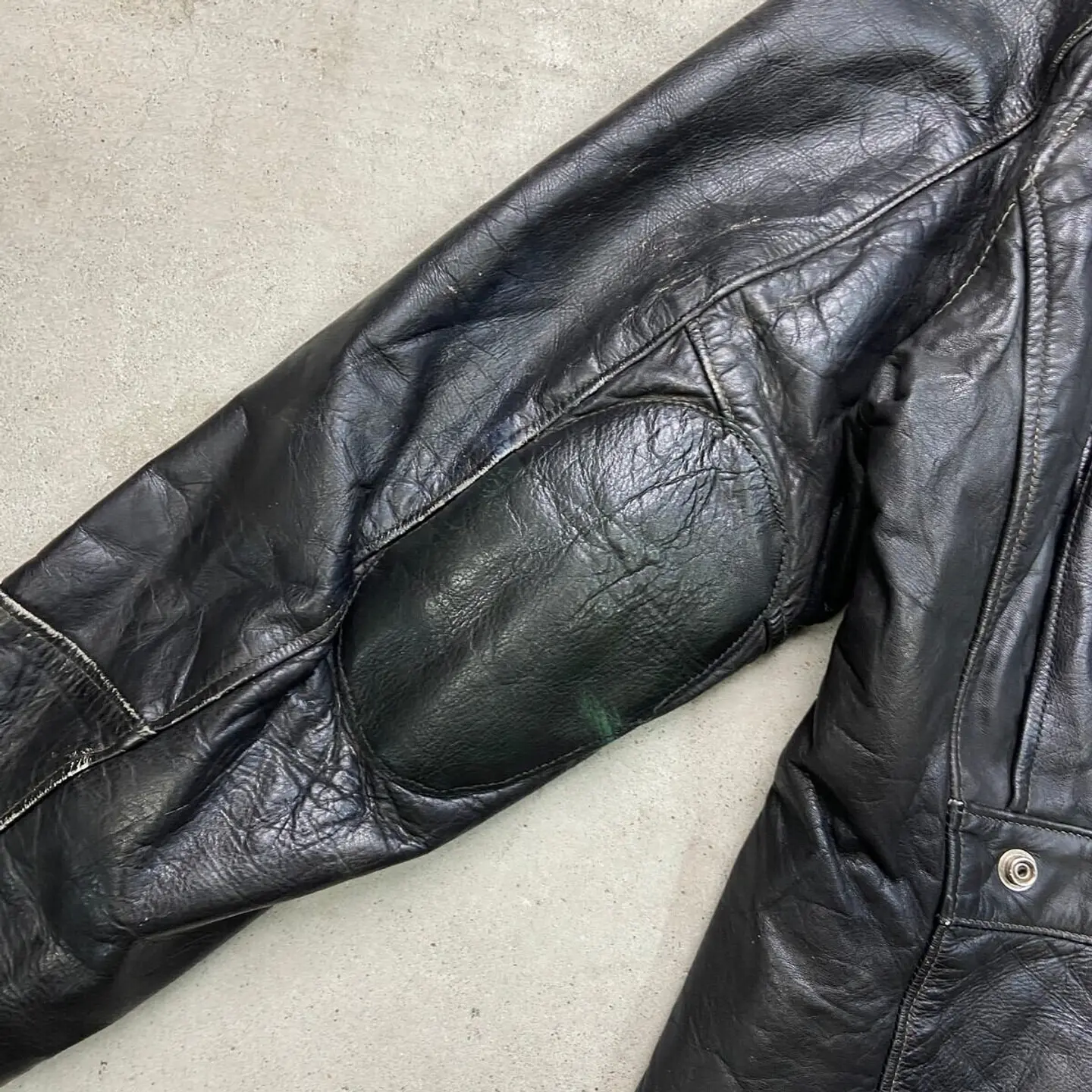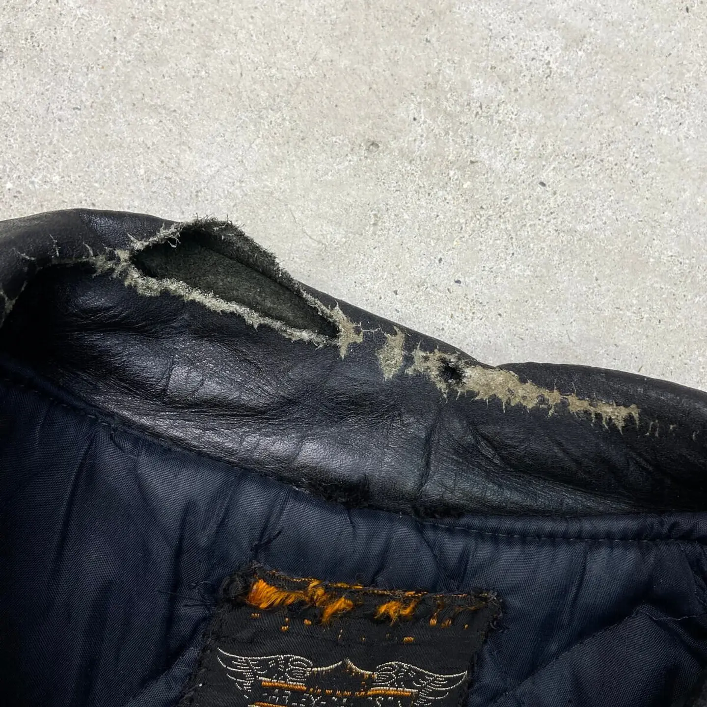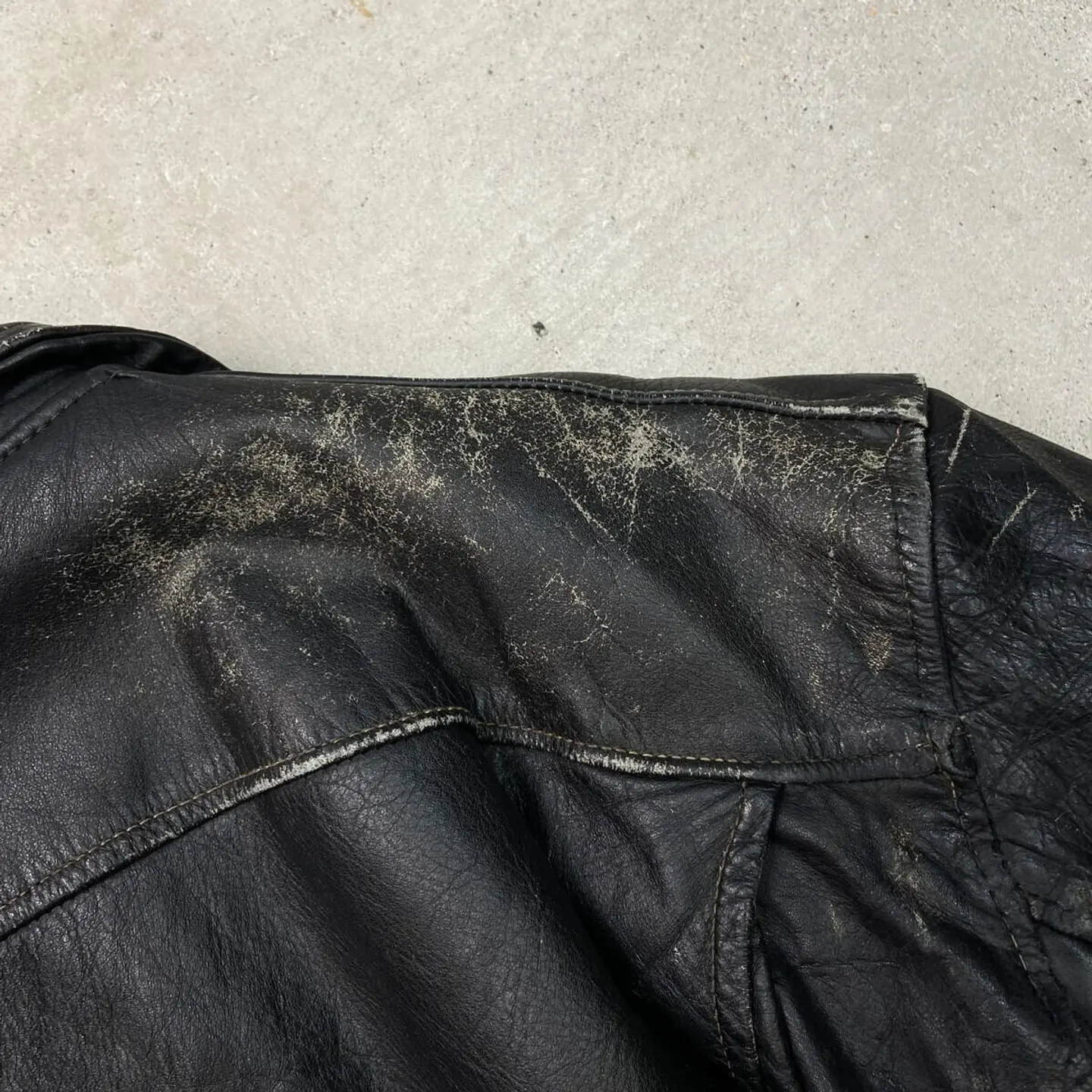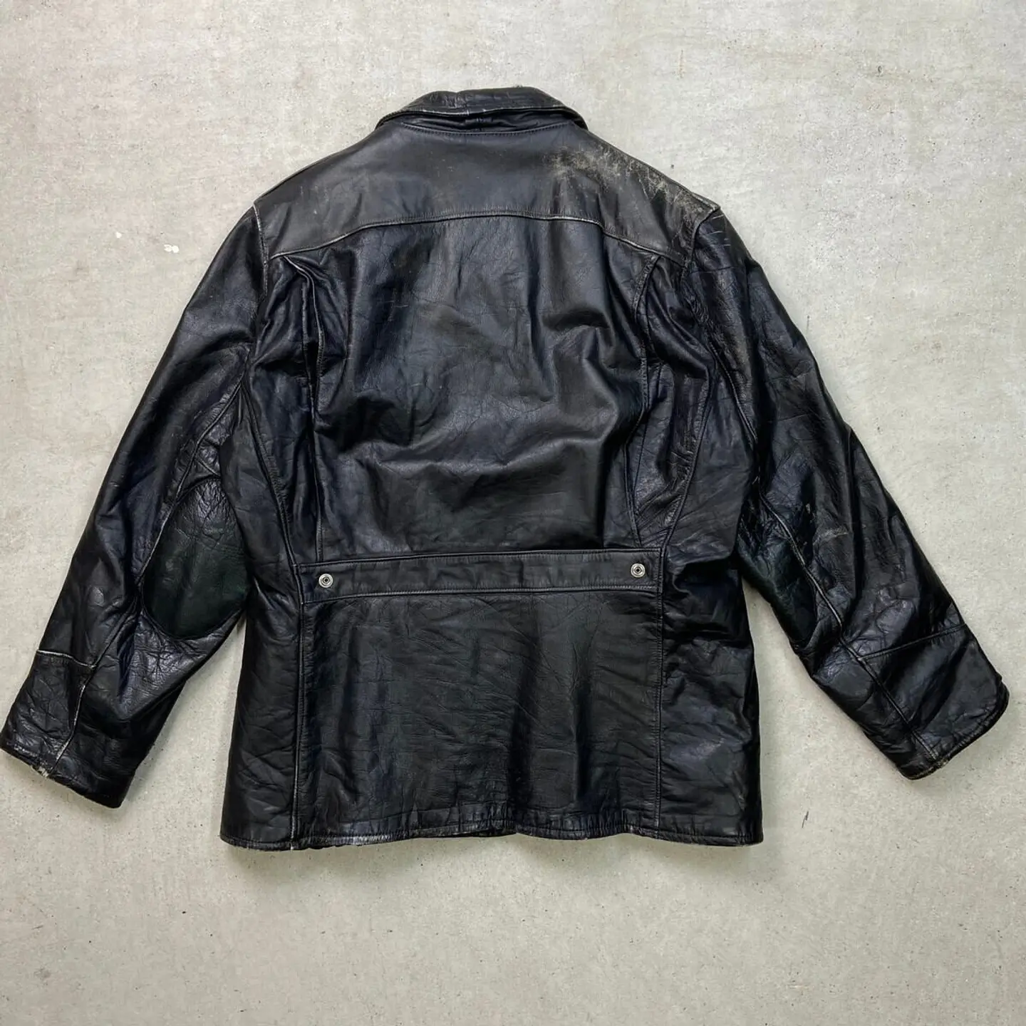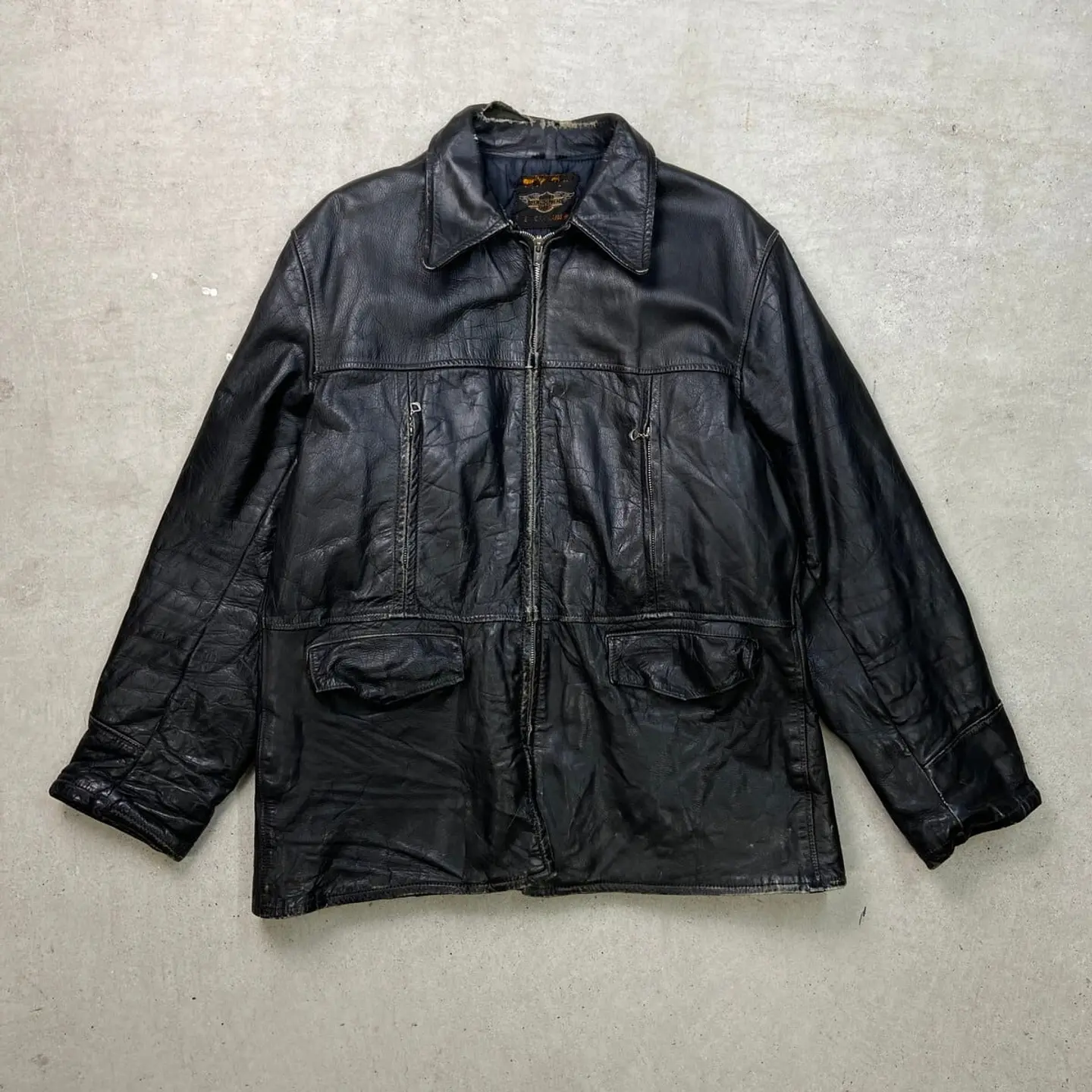 ■50年代 ウイングタグ HARLEY DAVIDSON ハーレーダビッドソン TOWNS MAN タウンズマン カーコート メンズXL相当 古着 50s VINTAGE ヴィンテージ レザージャケット 革ジャン ホースハイド IDEALジッパー 黒【ブルゾン・ジャケット】/ブラック 【ブランド】 HARLEY DAVIDSON ハーレーダビッドソン 【サイズ】表記 44(着用感メンズXL相当) 計測値をご確認ください。 着丈…72 身幅…59 肩幅…47 袖丈…60.5 【生産国】USA製 【素材】ホースハイド 【状態】 襟折れ部分に破れがございますが、 その他目立った汚れやダメージ等は無くまだまだ長くご愛用していただけます。 画像にてご確認ください。 【c260102028】 ※古着は洗濯、検品などのケアを行っております。(新品・デッドストックは洗濯していません。) ※モニターの発色により実物と異なる場合がございます。予めご了承ください。 ※ 海外直輸入USED品になります。
