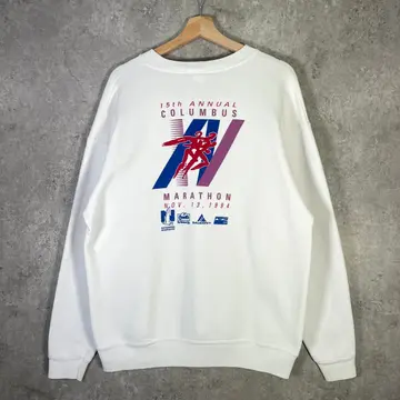 90年代 Oklahoma Blood Institute ワンポイント企業ロゴプリント スウェットシャツ メンズXL 古着 90s VINTAGE ヴィンテージ オクラホマ 袖プリント トレーナー 紺色