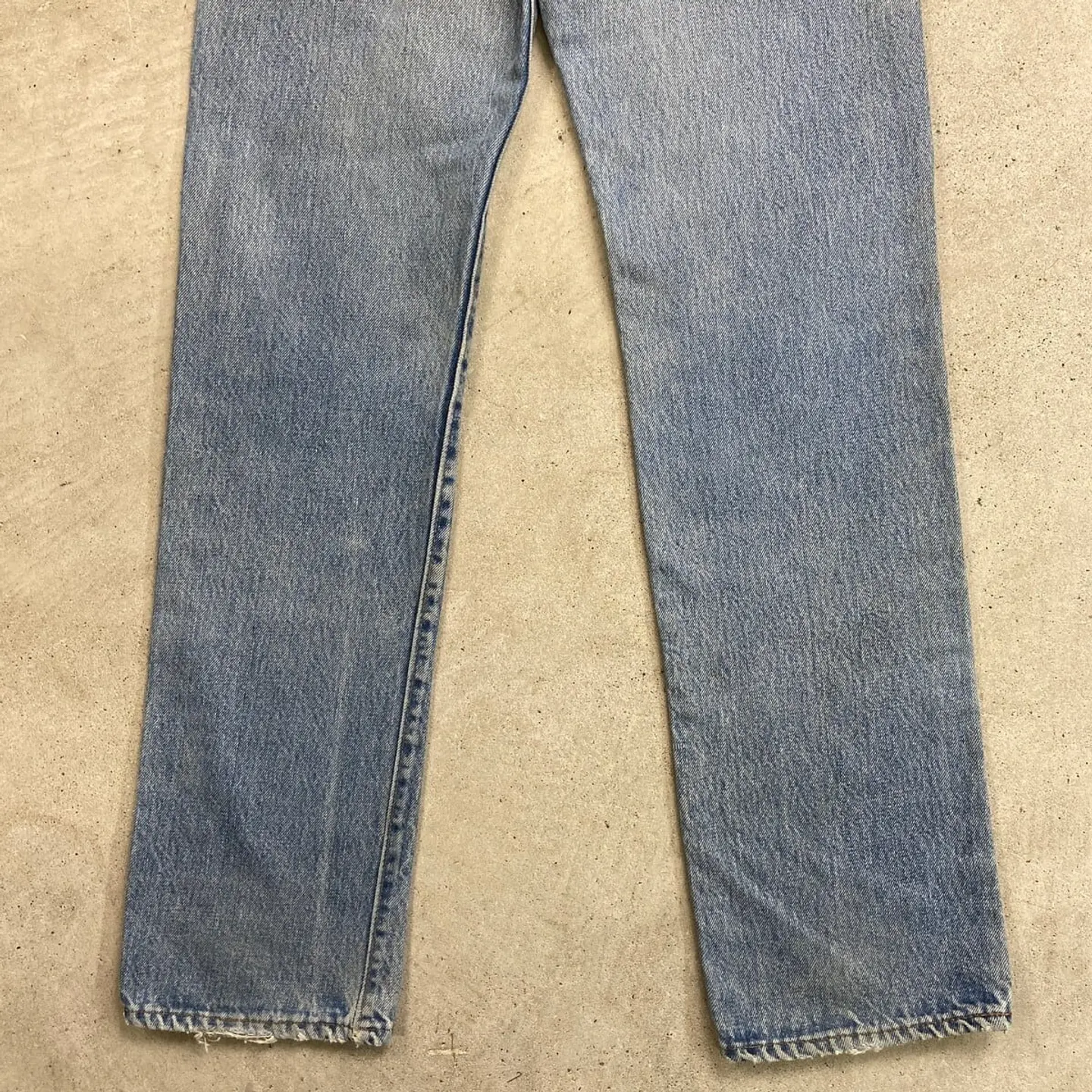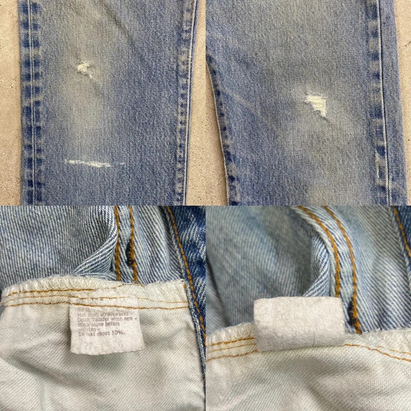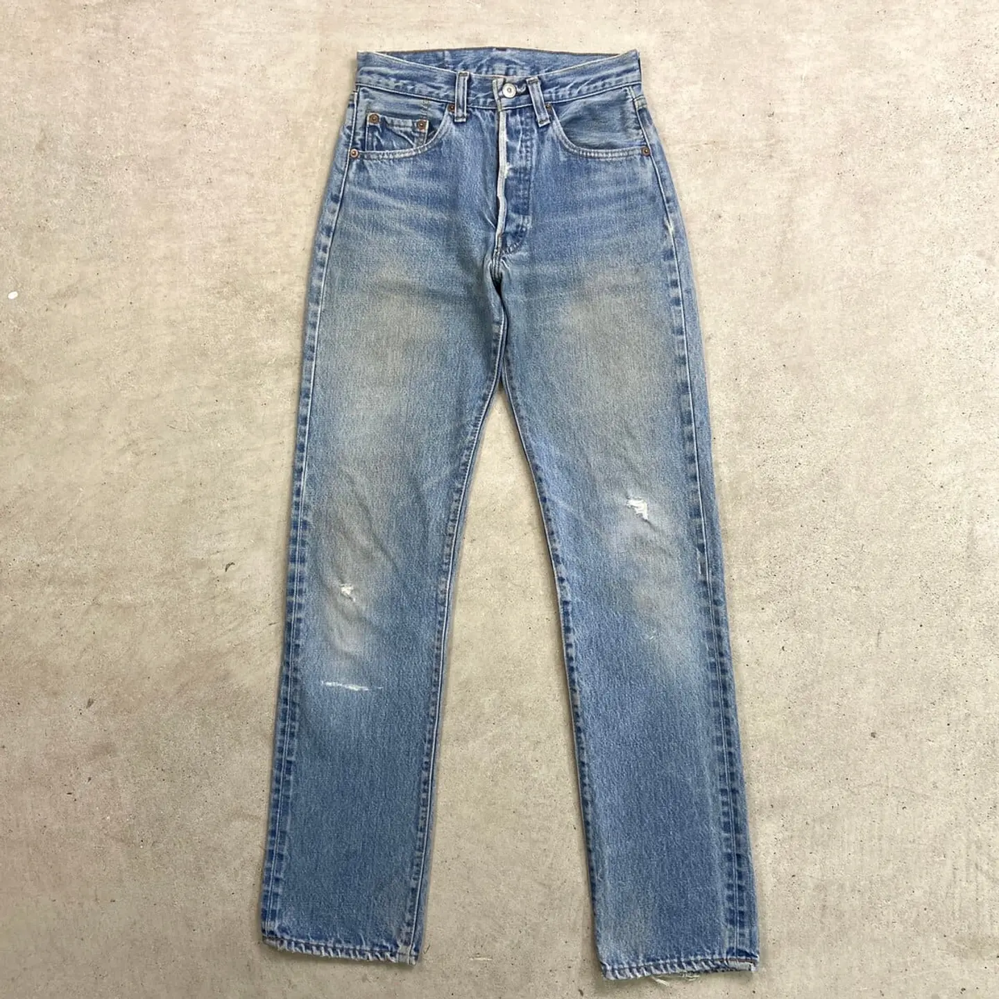 ■80年代 USA製 Levi's リーバイス 501 66後期 赤耳 移行期 ストレートデニムパンツ メンズW25相当 レディース 古着 80s ヴィンテージ VINTAGE アメカジ ジーンズ RED LINE レッドライン ポケット裏チェーンステッチ 黒カンヌキ アタリ ヒゲ 青色【デニムパンツ】/ブルー ◎こちらは1980年製のリーバイス501で、 工場番号が6番、ケアタグの収縮率が10%であることから、66後期から赤耳モデルになる過渡期になった個体です。 【ブランド】Levi's リーバイス ・トップボタン裏刻印 6 【サイズ】表記 W27 L36(実寸約W25 L32) ※裾上げされております ウエスト(平置き計測?2)…64 ワタリ幅...27 股上…26.5 股下…82 裾幅…18 【生産国】USA製 【素材】コットン100% 【状態】全体的に使用感による色あせがあり、薄っすらとヒゲがあります。 フロントひざにダメージや裾擦れがございます。 画像にてご確認ください。 【c260228127】 ※古着は洗濯、検品などのケアを行っております。(新品・デッドストックは洗濯していません。)