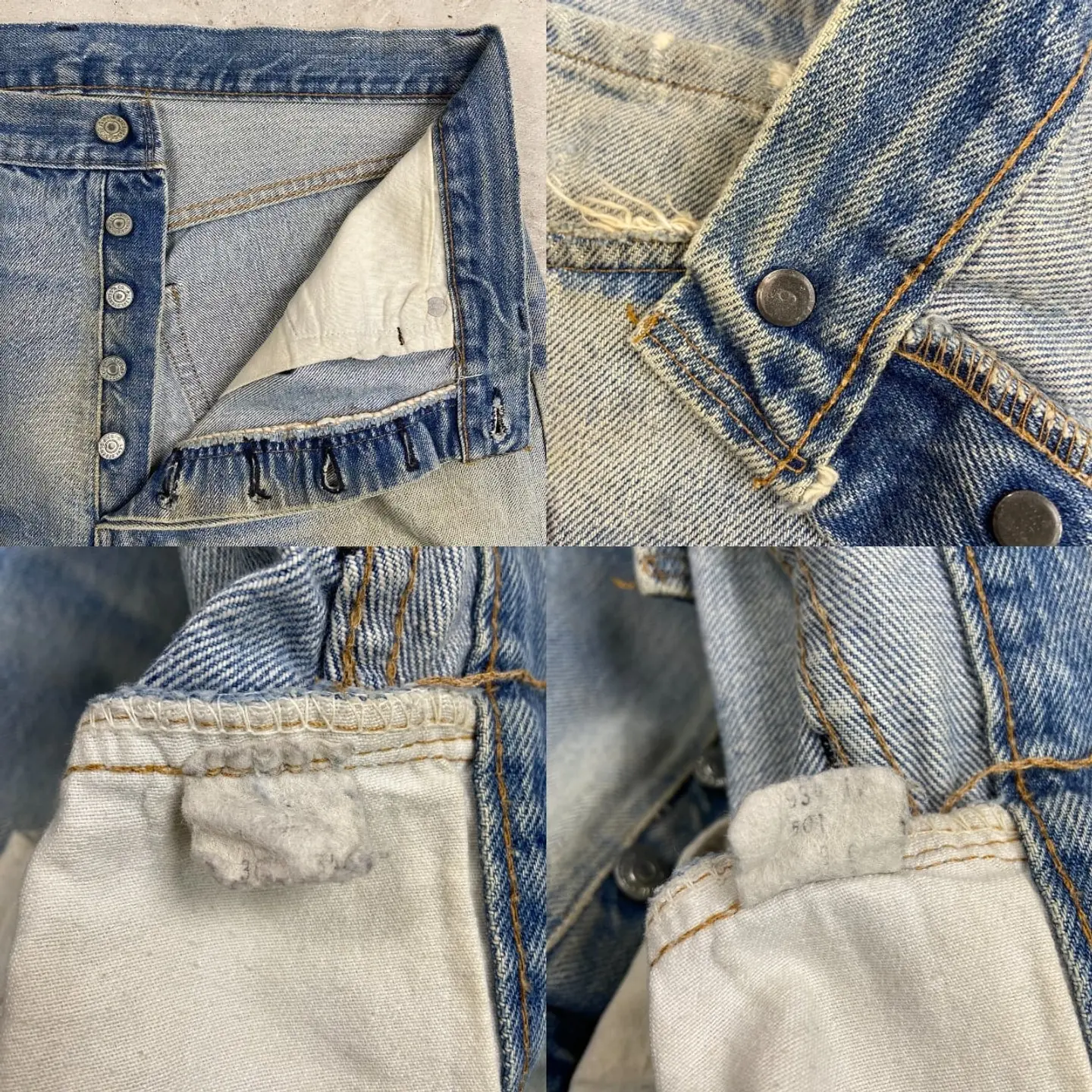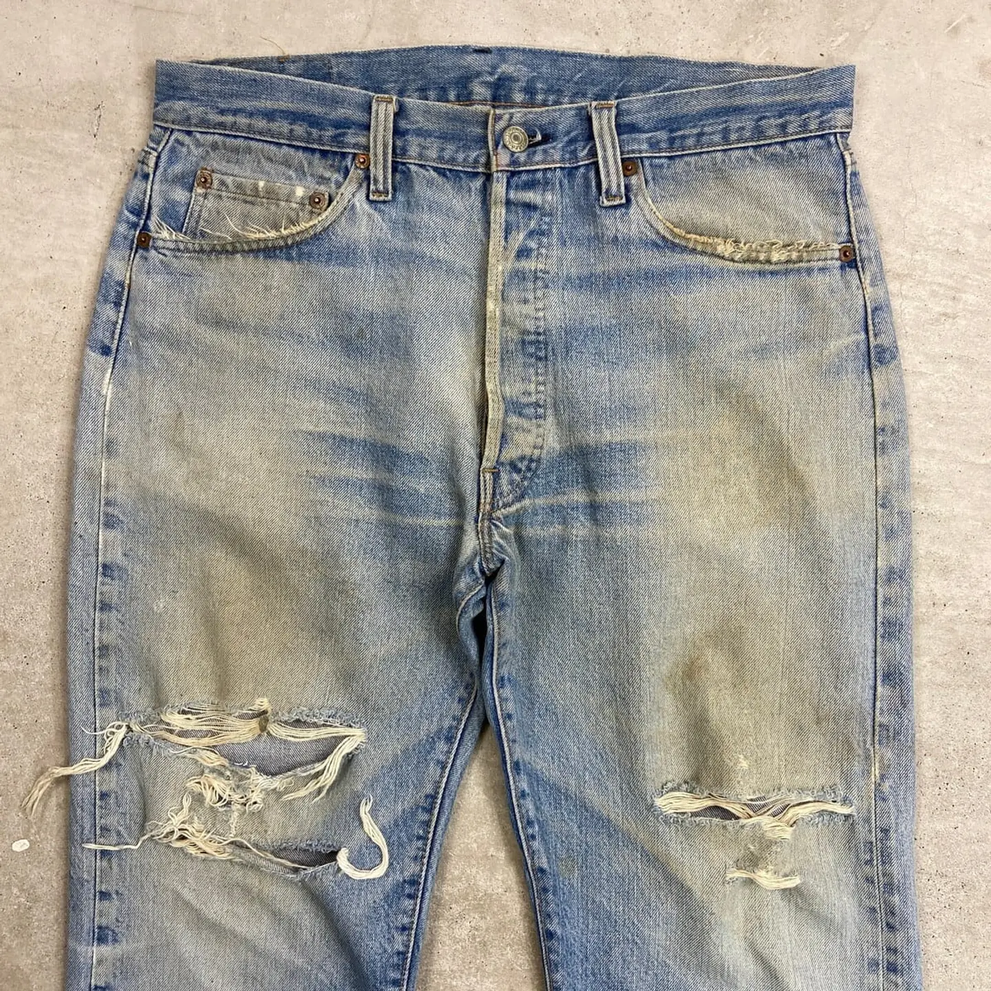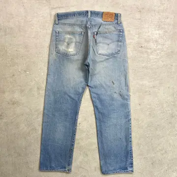 ■70年代 USA製 Levi's リーバイス 501 66後期 ストレート クラッシュデニムパンツ メンズW33相当 古着 70s ヴィンテージ VINTAGE アメカジ ジーンズ ポケット裏チェーンステッチ 黒カンヌキ アタリ ヒゲ 青色【デニムパンツ】/ブルー ◎こちらは1979年製のリーバイス501の66後期モデルになります。 【ブランド】Levi's リーバイス ・トップボタン裏刻印 6 【サイズ】表記 W36 L32(実寸約W33 L30) ウエスト(平置き計測?2)…83 ワタリ幅...33.5 股上…30.5 股下…75.5 裾幅…21 【生産国】USA製 【素材】コットン100% 【状態】全体的な色あせと膝のクラッシュがあり、 グランジスタイルを思わせるような雰囲気のある1本です。 バックサイドにもダメージや汚れがあります。 画像にてご確認ください。 【c260228126】 ※古着は洗濯、検品などのケアを行っております。(新品・デッドストックは洗濯していません。)
