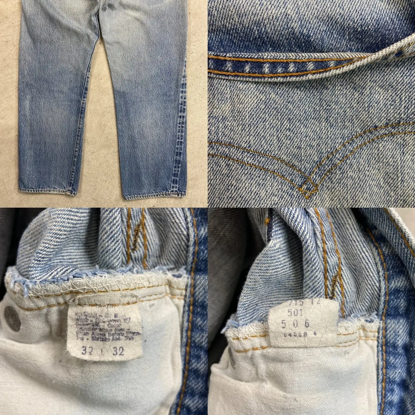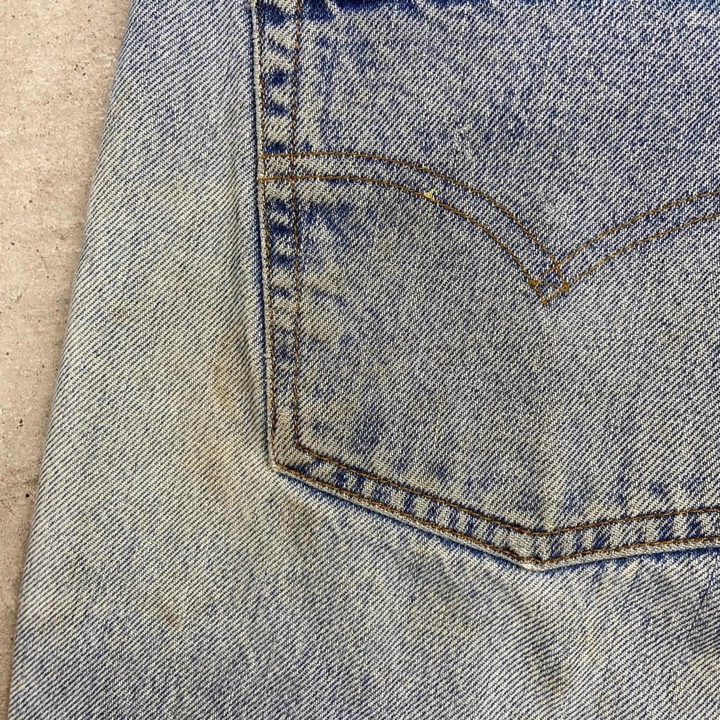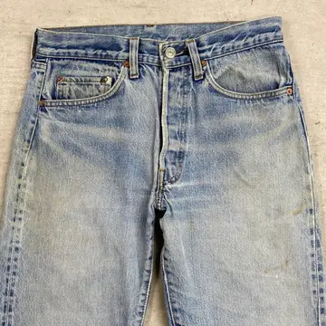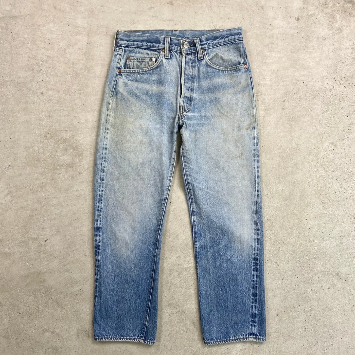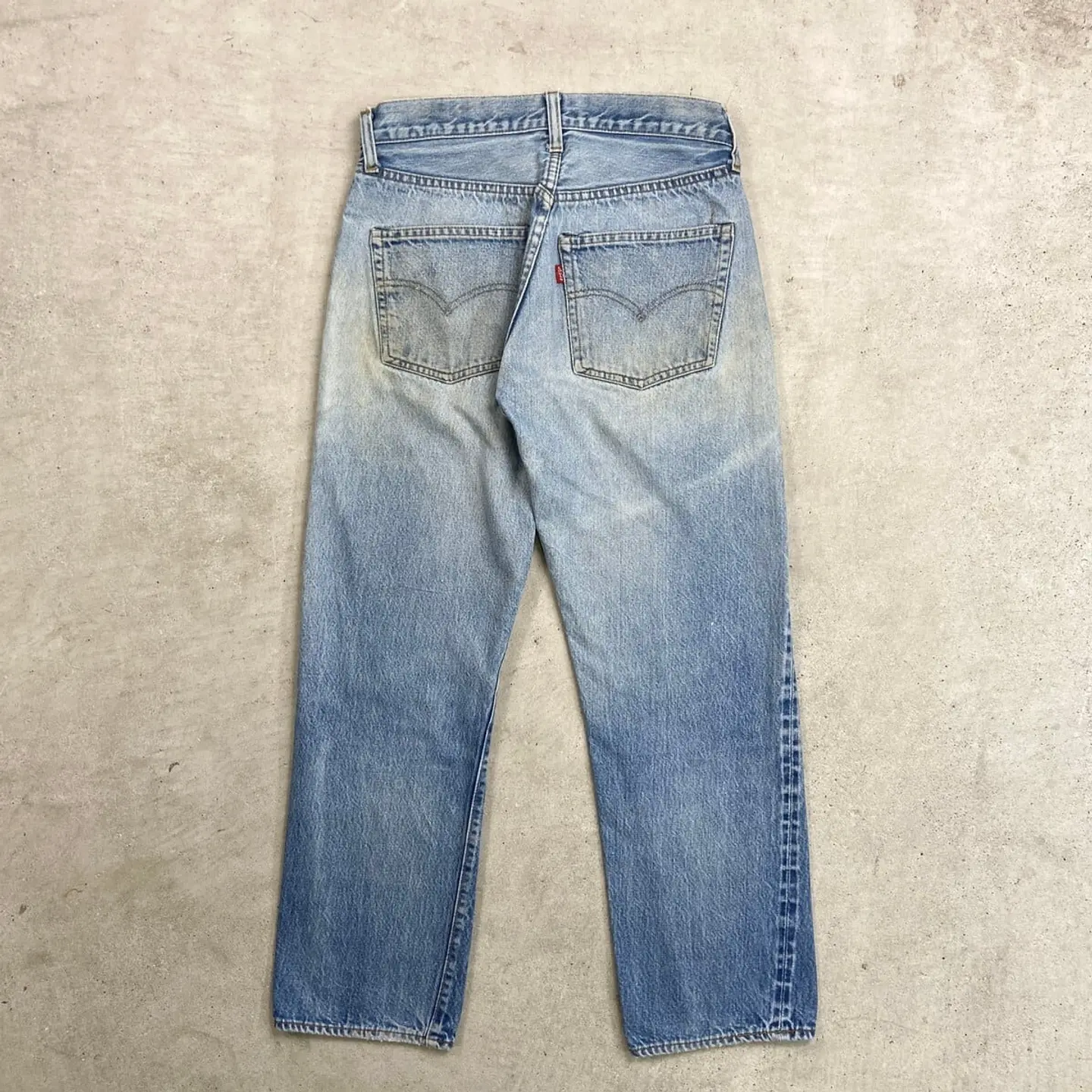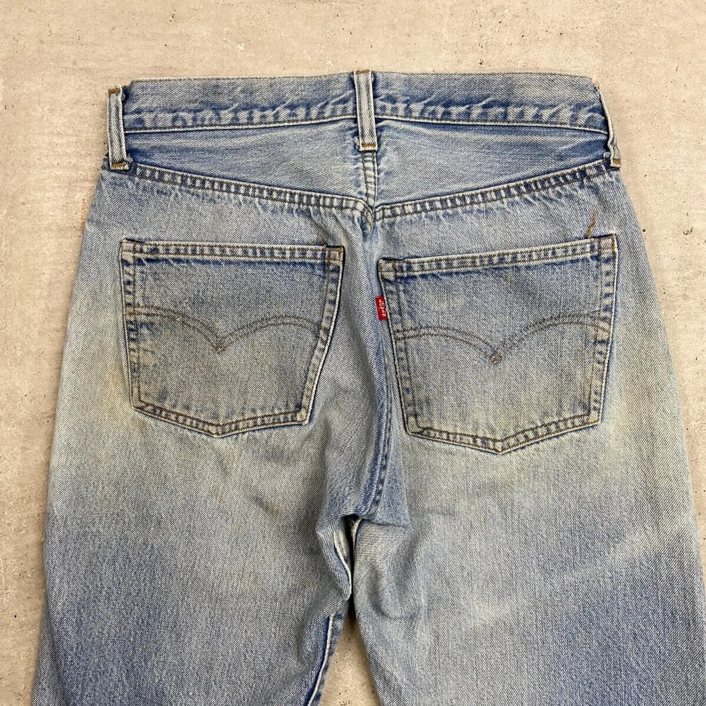 ■80年代 USA製 Levi's リーバイス 501 66後期 ストレート デニムパンツ メンズW29相当 古着 80s ヴィンテージ VINTAGE アメカジ ジーンズ ポケット裏チェーンステッチ 黒カンヌキ 青色【デニムパンツ】/ブルー ◎こちらは1980年製のリーバイス501の66後期モデルになります。 【ブランド】Levi's リーバイス ・トップボタン裏刻印 6 【サイズ】表記 W32 L32(実寸約W29 L28) ウエスト(平置き計測?2)…73 ワタリ幅...30.5 股上…27.5 股下…72 裾幅…19.5 【生産国】USA製 【素材】コットン100% 【状態】 全体的に使用感による色落ちや擦れがございます。 フロントもも付近やバックサイド左ポケット付近に 汚れがあります。 画像にてご確認ください。 【c260228125】 ※古着は洗濯、検品などのケアを行っております。(新品・デッドストックは洗濯していません。)