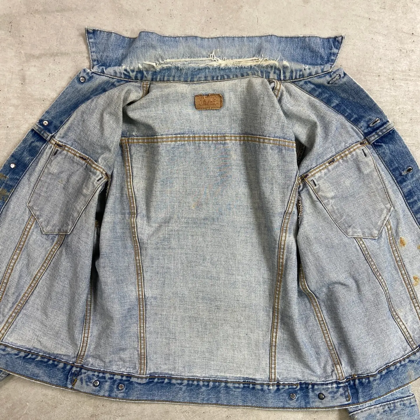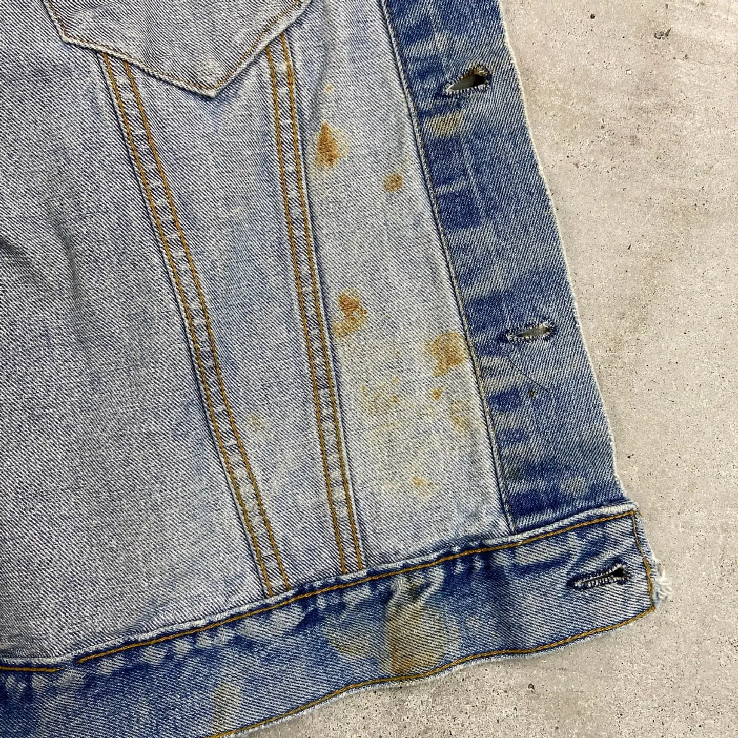 ■80年代 USA製 Lee リー 101-J デニムジャケット メンズL相当 古着 80s ヴィンテージ VINTAGE アメカジ 濃紺【デニムジャケット】/ネイビー 【ブランド】 Levi's リーバイス 【サイズ】表記不明(実寸メンズL相当) ※計測値をご確認ください。 着丈…61 身幅…58.5 肩幅…48.5 袖丈…63 【生産国】不明 【素材】コットン100% 【状態】全体的に使用感による色あせや擦れがございます。 フロントにシミ汚れがあります。 襟や袖口等にダメージがあります。 画像にてご確認ください。 【c260228115】 ※古着は洗濯、検品などのケアを行っております。(新品・デッドストックは洗濯していません。) ※モニターの発色により実物と異なる場合がございます。予めご了承ください。 ※ 海外直輸入USED品になります。