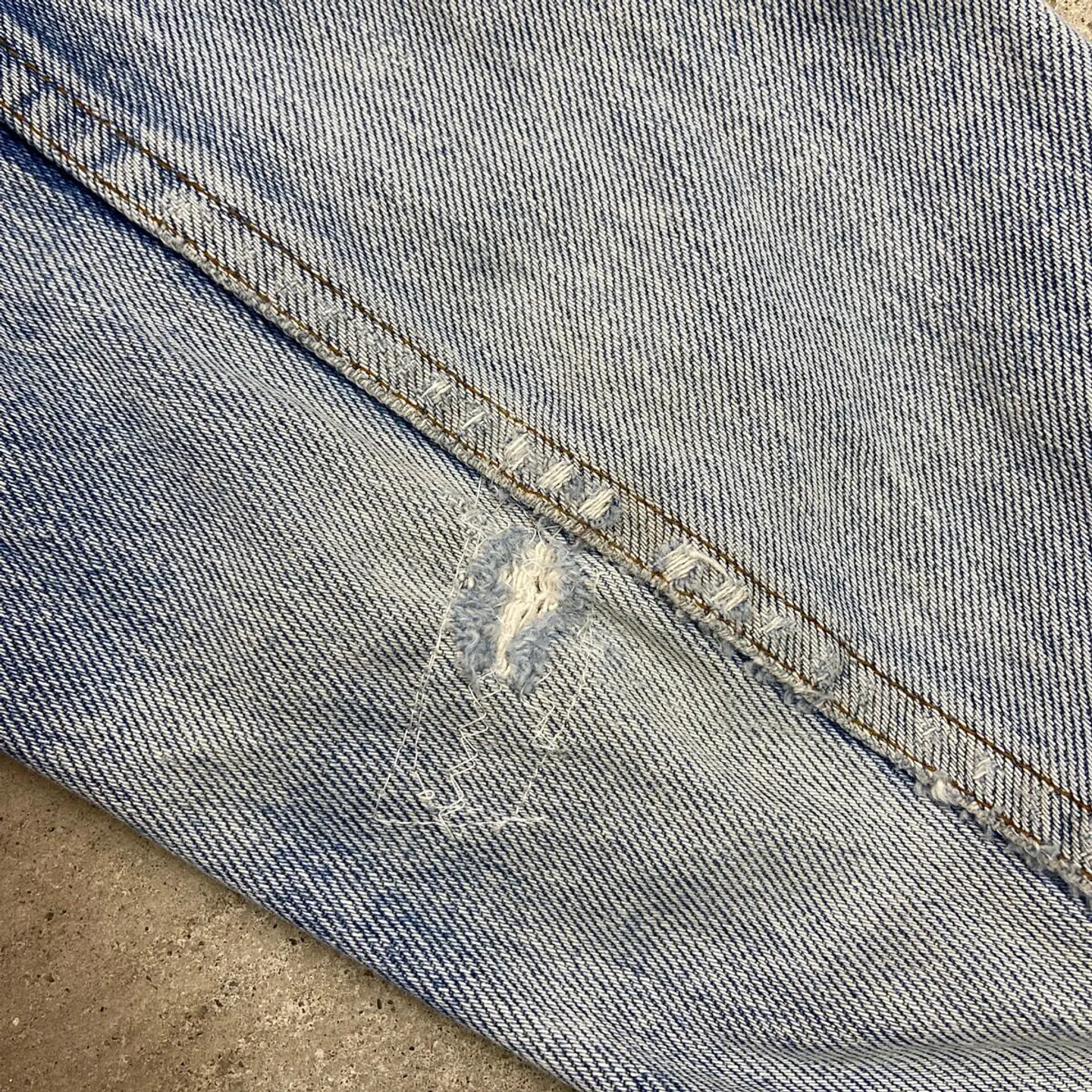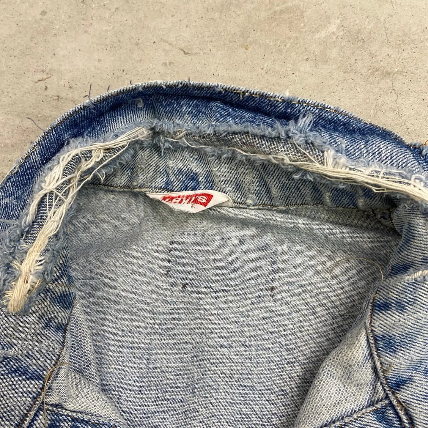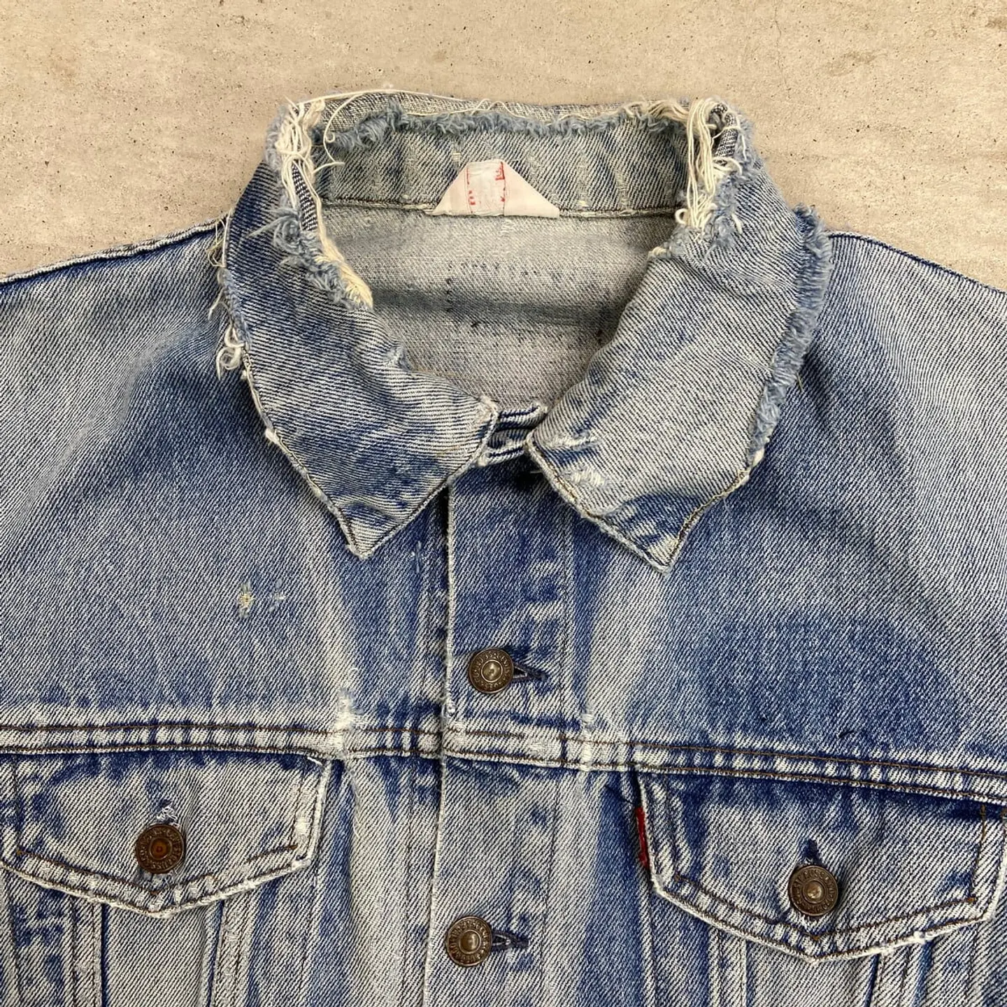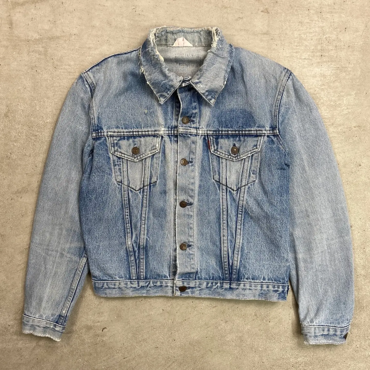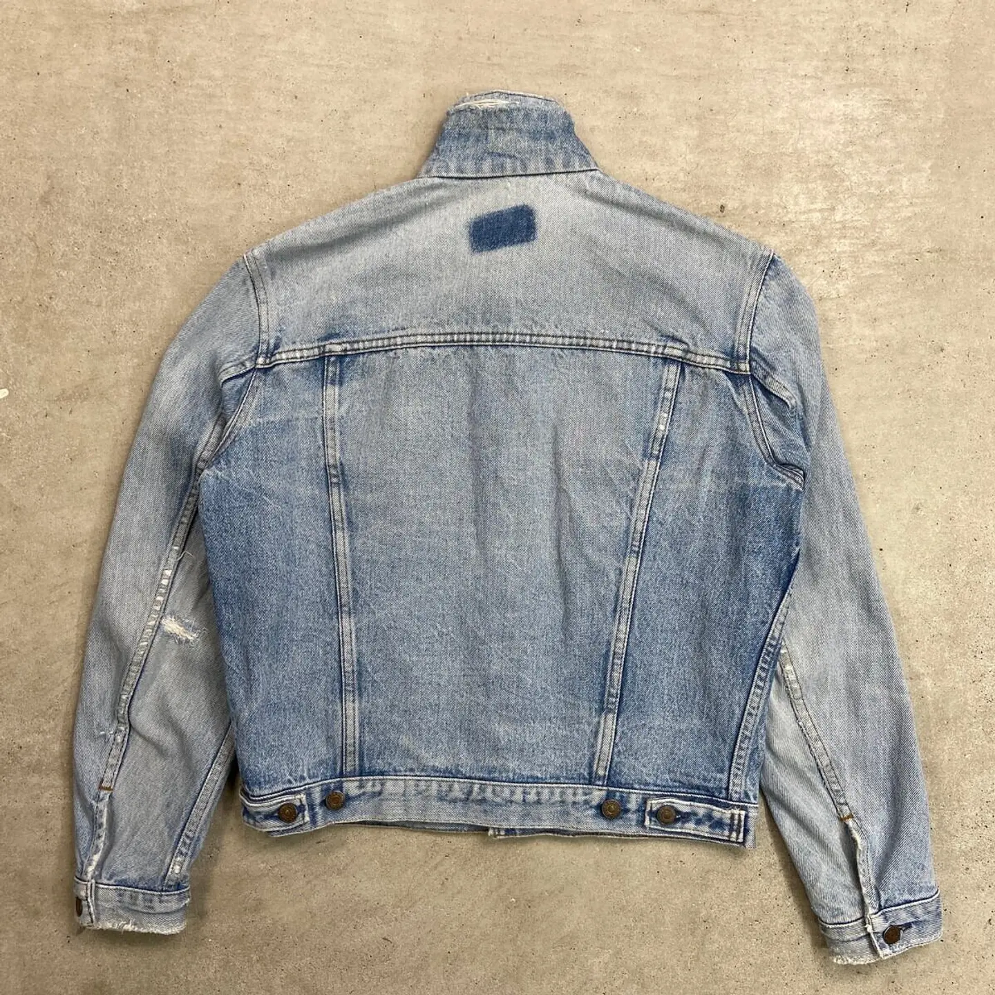 ■80年代 Levi's ユーロリーバイス 70500 クラッシュデニムジャケット メンズM~L相当 古着 80s ヴィンテージ VINTAGE アメカジ 三角タグ トラッカージャケット 青色【デニムジャケット】/ブルー 【ブランド】Levi's リーバイス 刻印ボタン: 273 【サイズ】表記不明(実寸メンズM~L相当) ※計測値をご確認ください。 着丈…57 身幅…56.5 肩幅…45 袖丈…60 【生産国】不明 【素材】コットン100% 【状態】全体的に使用感による色あせや擦れがございます。 ダメージ加工を施しており、ちょいボロ感を楽しめる 雰囲気のある一着です。 画像にてご確認ください。 【c260228109】 ※古着は洗濯、検品などのケアを行っております。(新品・デッドストックは洗濯していません。) ※モニターの発色により実物と異なる場合がございます。予めご了承ください。 ※ 海外直輸入USED品になります。