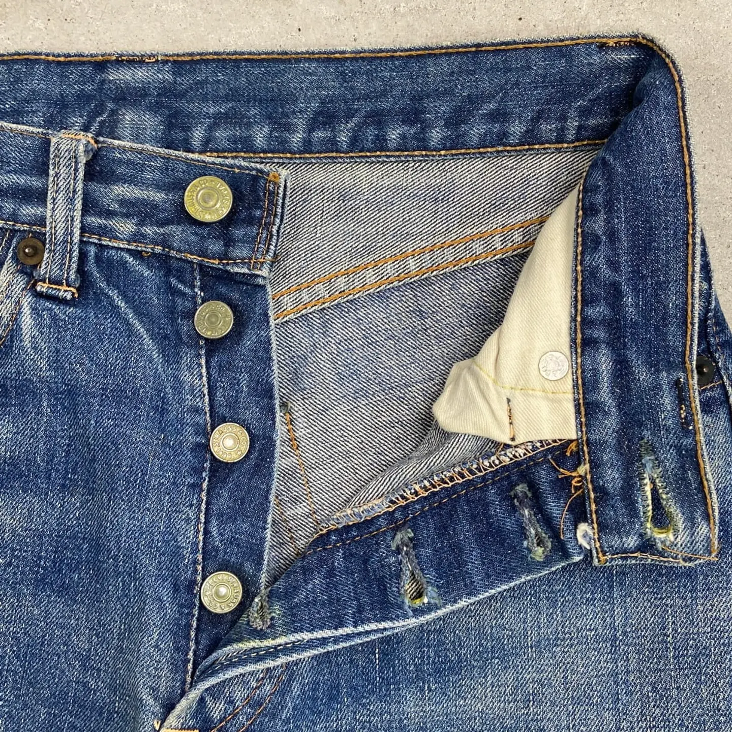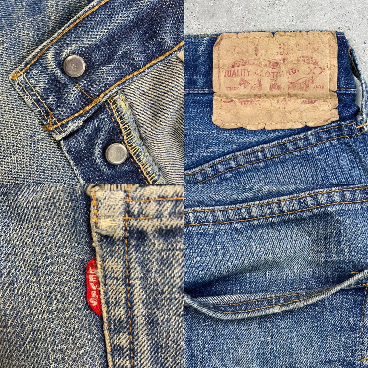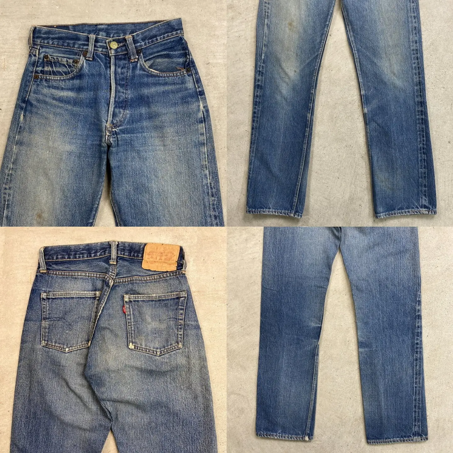 ■60年代 USA製 Levi's リーバイス 501 BIG E ストレート デニムパンツ メンズW26相当 レディース 古着 60s ヴィンテージ VINTAGE アメカジ ジーンズ 良色落ち 縦落ち ヒゲ 青色【デニムパンツ】/ブルー 【ブランド】Levi's リーバイス ・ボタン裏刻印 8 ・BIG Eタブ ・足長R ・不均等V ・セルビッチ ・ポケット裏シングルステッチ ・黒カンヌキ 【サイズ】表記 不明(実寸W26相当) ※計測値をご確認ください。 ウエスト(平置き計測?2)…66 ワタリ幅...26 股上…26 股下…80 裾幅…18 【生産国】USA製 【素材】コットン100% 【状態】 BIG Eらしい縦落ちやヒゲなど抜群にいい色落ちに加え、汚れ、ステッチ抜け等リアルなビンテージならではな使用感のある雰囲気の良いコンディションです。 画像にてご確認ください。 【c260228002】 ※古着は洗濯、検品などのケアを行っております。(新品・デッドストックは洗濯していません。) ※モニターの発色により実物と異なる場合がございます。予めご了承ください。 ※ 海外直輸入USED品になります。