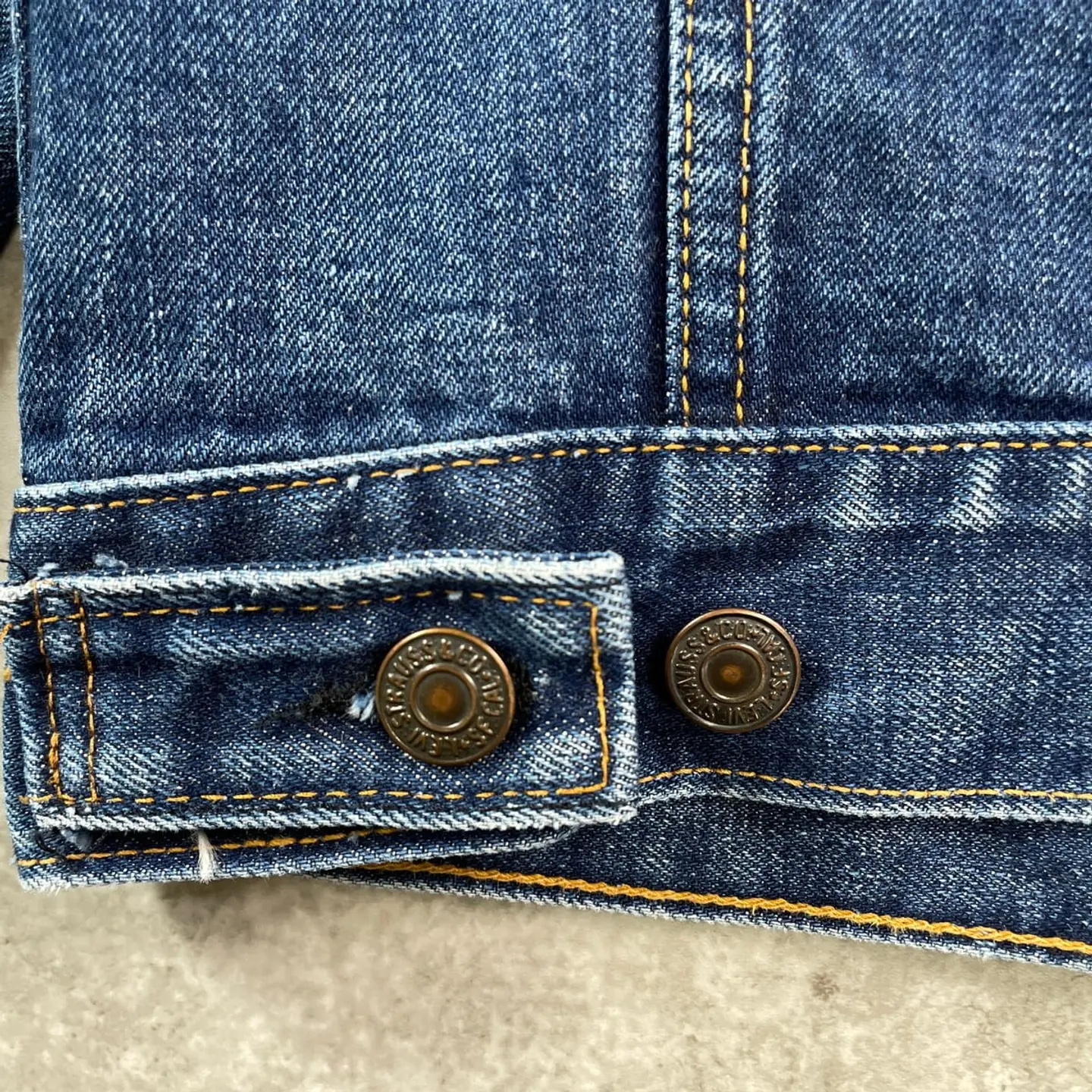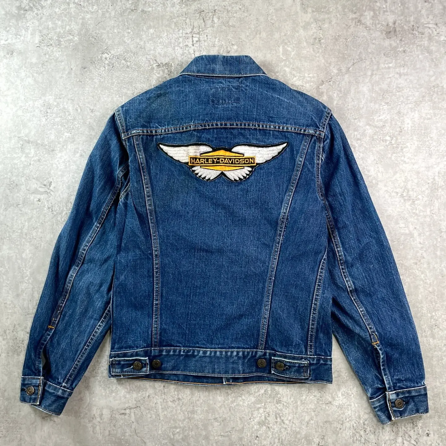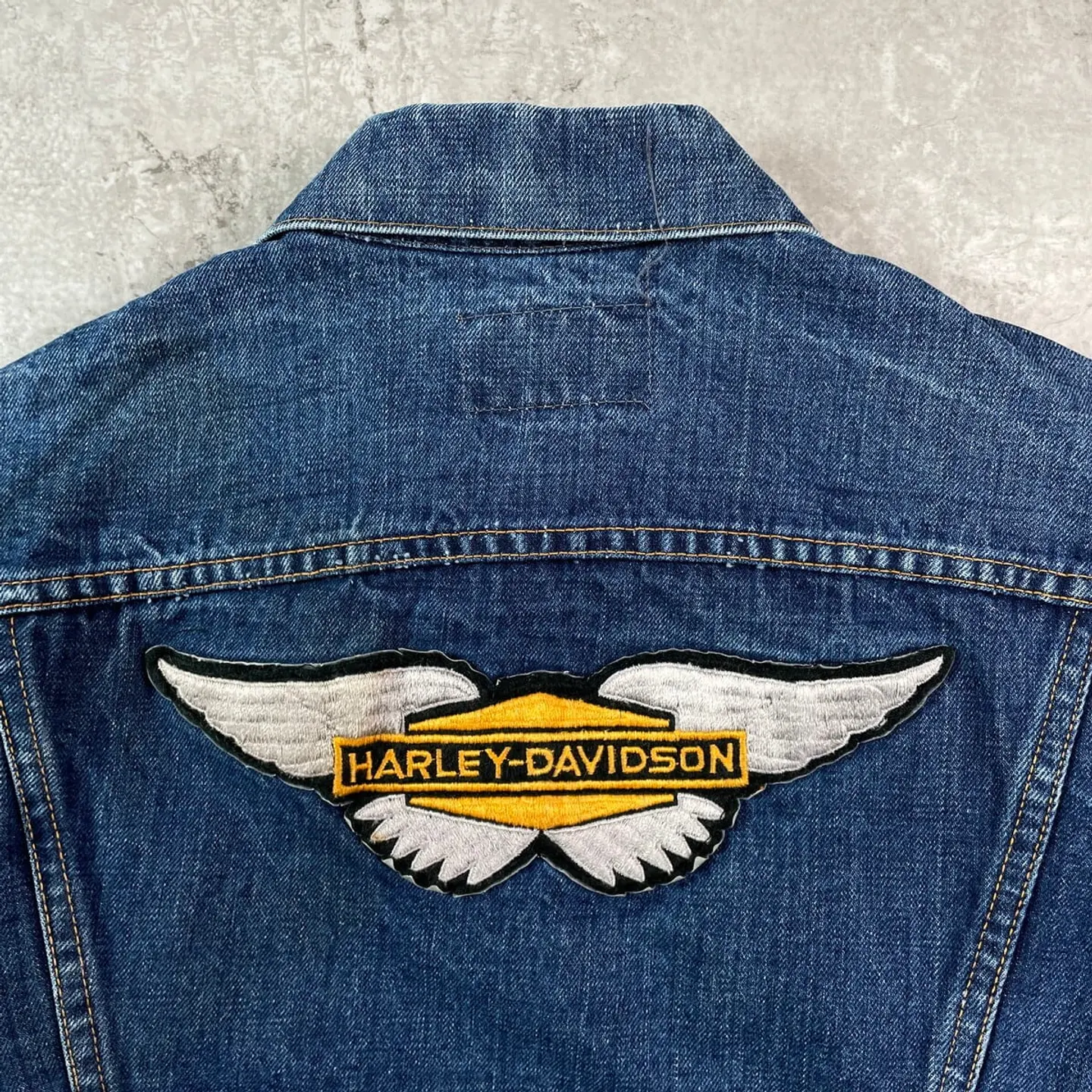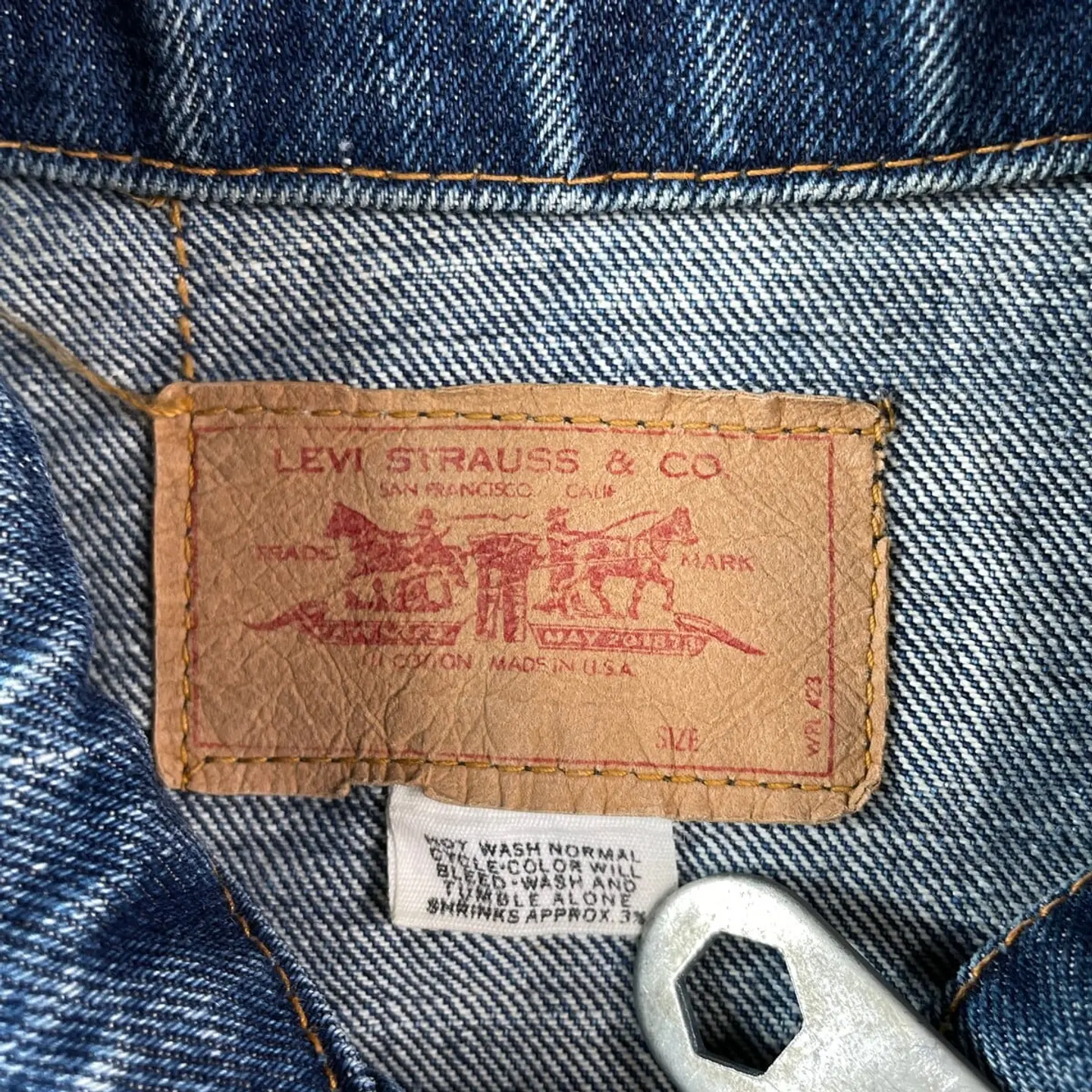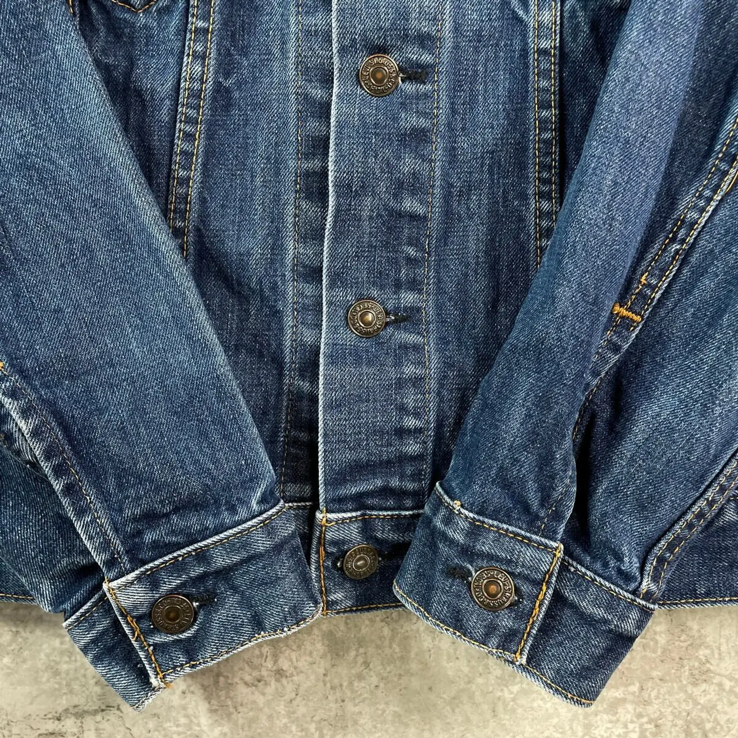 ■70~80年代 USA製 Levi's リーバイス カスタム HARLEY-DAVIDSON ワッペン付き トラッカーデニムジャケット メンズS相当 レディース 古着 70s 80s ヴィンテージ VINTAGE アメカジ ハーレーダビッドソン Gジャン 青色【デニムジャケット】/ブルー 【ブランド】Levi's リーバイス ボタン裏刻印:525 【サイズ】表記不明(実寸メンズS相当) ※計測値をご確認ください。 着丈…58.5 身幅…49.5 肩幅…44 袖丈…60.5 【生産国】USA製 【素材】不明(おそらくコットンかと思われます) 【状態】全体的に使用感による色あせがございますが、 目立ったダメージや汚れはありません。 画像にてご確認ください。 【c260102150】 ※古着は洗濯、検品などのケアを行っております。(新品・デッドストックは洗濯していません。) ※モニターの発色により実物と異なる場合がございます。予めご了承ください。 ※ 海外直輸入USED品になります。
