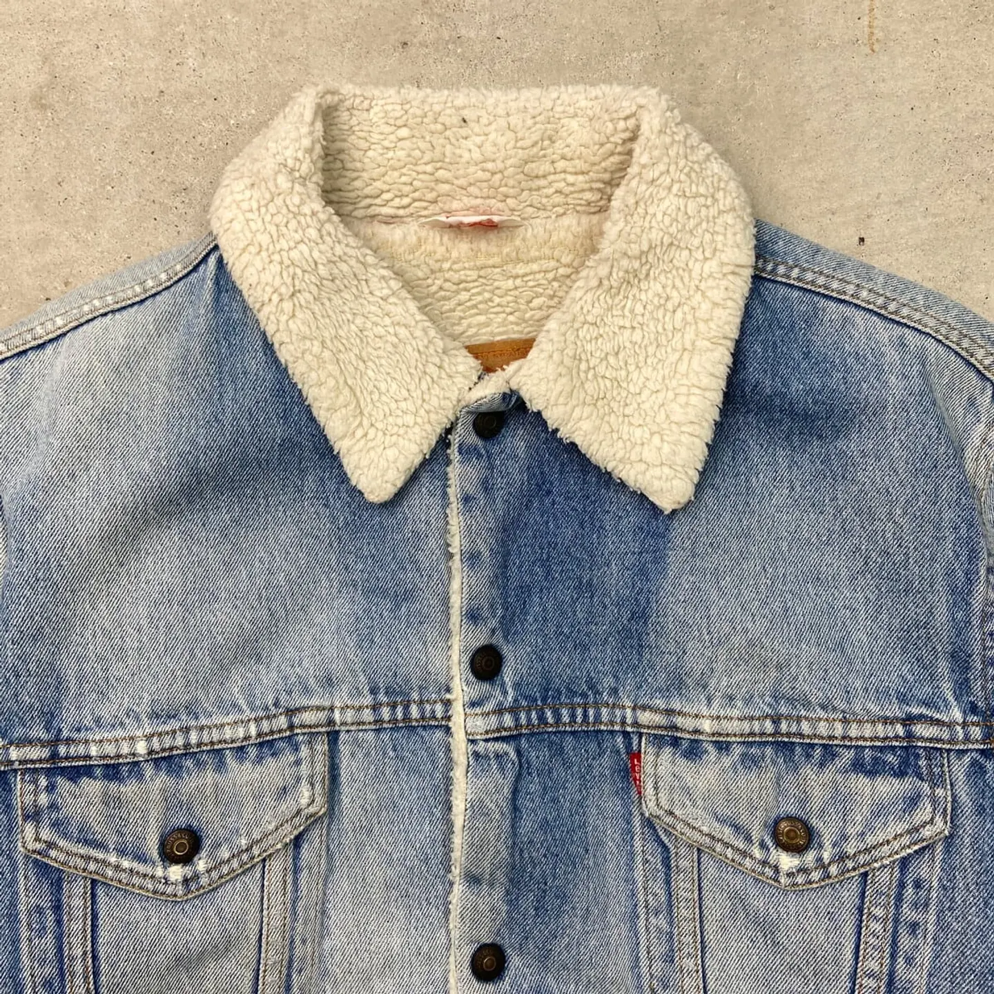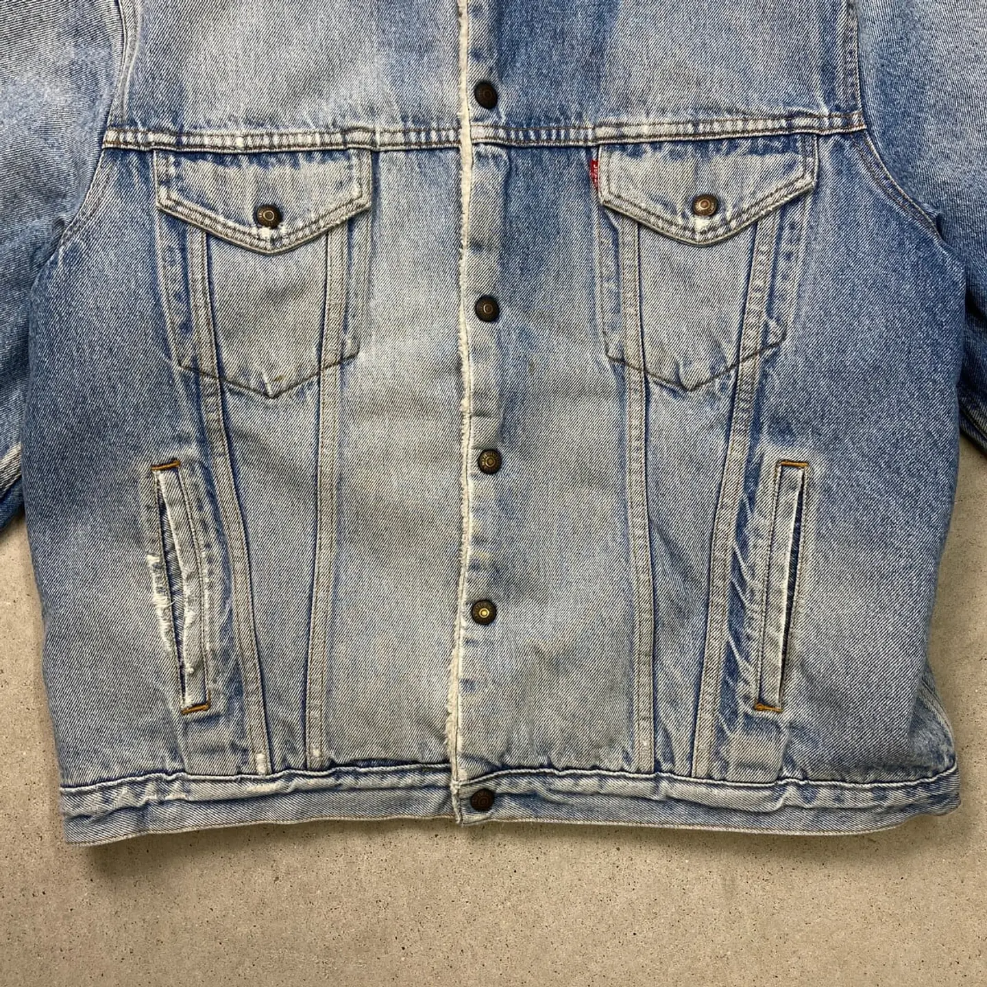■80年代 Levi's ユーロリーバイス 70608 0217 デニムボアジャケット メンズL 古着 80s ヴィンテージ VINTAGE アメカジ 三角タグ 青色【デニムジャケット】/ブルー 【ブランド】Levi's リーバイス 【サイズ】表記 L ※計測値をご確認ください。 着丈…66 身幅…62.5 肩幅…54 袖丈…64 【生産国】チュニジア製 【素材】コットン100% 【状態】全体的に使用感による色あせがございます。 数か所にダメージがあります。 右胸ポケットに汚れがあります。 画像にてご確認ください。 【c260102147】 ※古着は洗濯、検品などのケアを行っております。(新品・デッドストックは洗濯していません。) ※モニターの発色により実物と異なる場合がございます。予めご了承ください。 ※ 海外直輸入USED品になります。