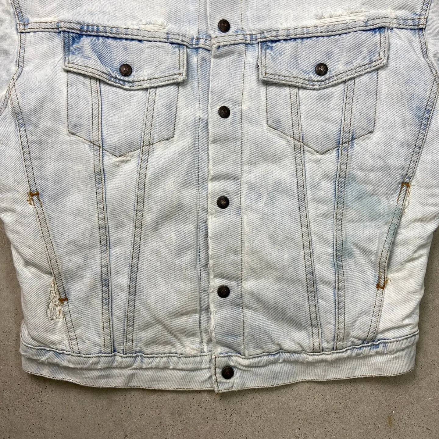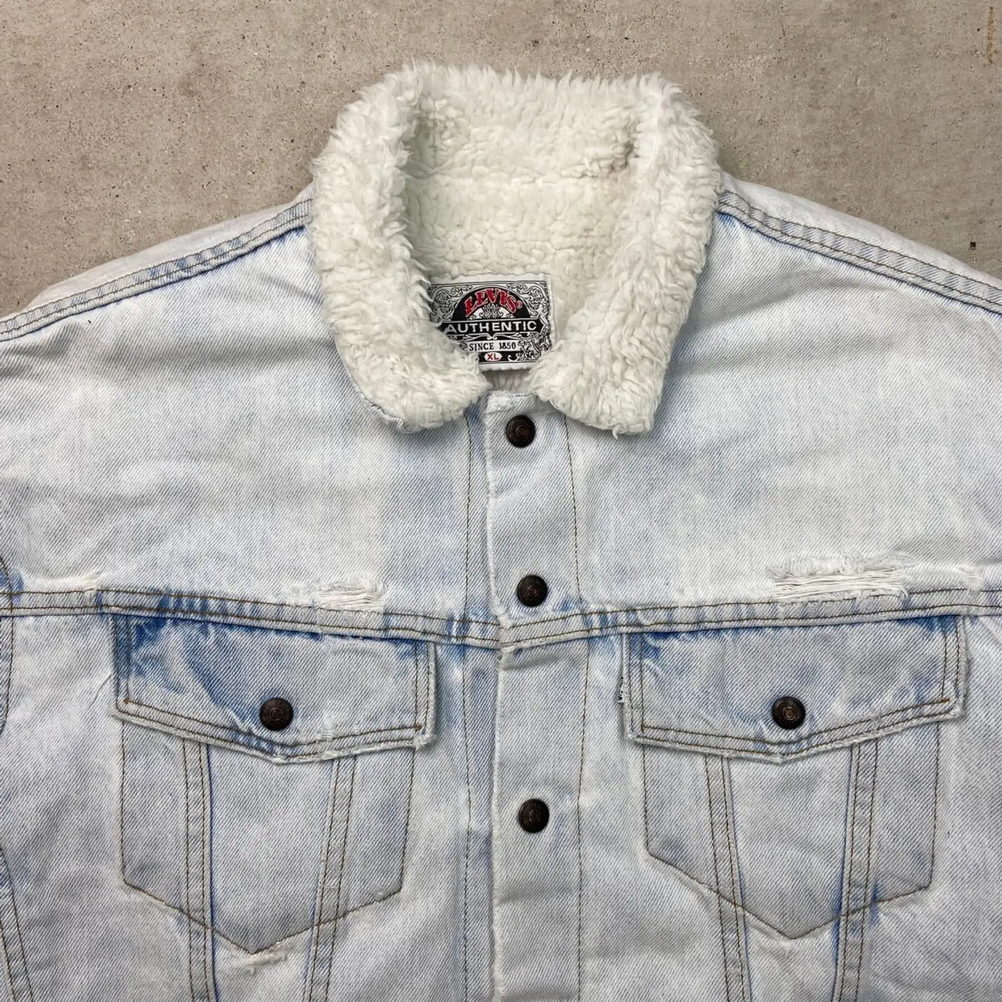 ■90年代 USA製 Levi's リーバイス デニムボアジャケット メンズXL 古着 90s ヴィンテージ VINTAGE アメカジ 白タブ ケミカル加工 スカイブルー【デニムジャケット】/ブルー 【ブランド】Levi's リーバイス ボタン裏刻印:527 【サイズ】表記 XL ※計測値をご確認ください。 着丈…57.5 身幅…62.5 肩幅…59 袖丈…56.5 【生産国】USA製 【素材】コットン100% 【状態】ブリーチによる変色がございます。 その他、リペア跡や胸ポケット付近にダメージがあります。 画像にてご確認ください。 【c260102146】 ※古着は洗濯、検品などのケアを行っております。(新品・デッドストックは洗濯していません。) ※モニターの発色により実物と異なる場合がございます。予めご了承ください。 ※ 海外直輸入USED品になります。